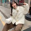 Abrigo de algodón cálido con cuello de diamante retro estilo americano, otoño e invierno, nueva chaqueta acolchada de algodón holgada, sencilla y combinable para parejas.