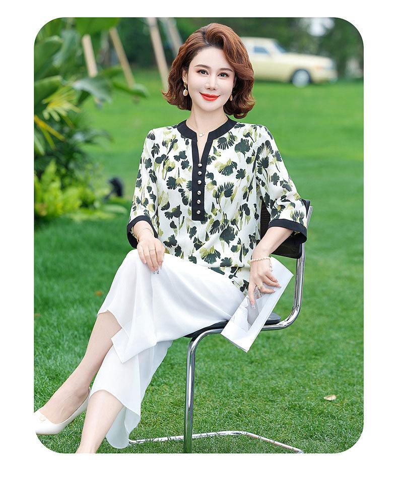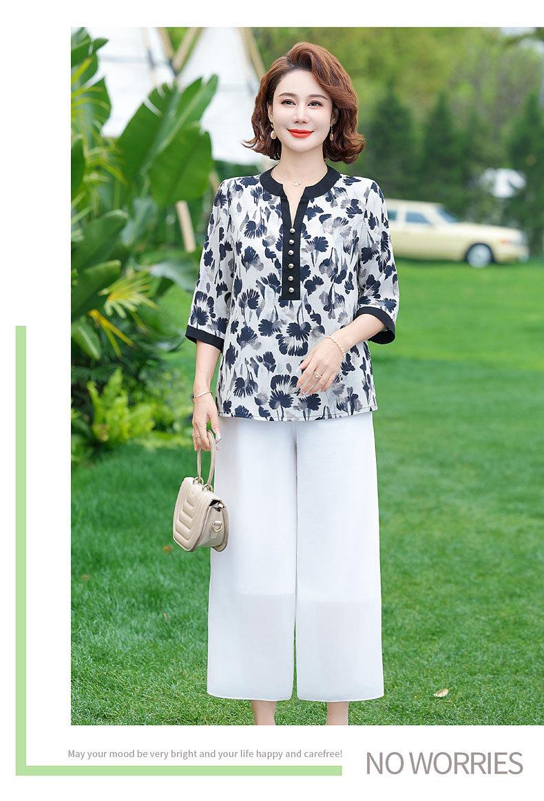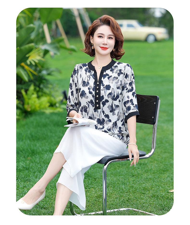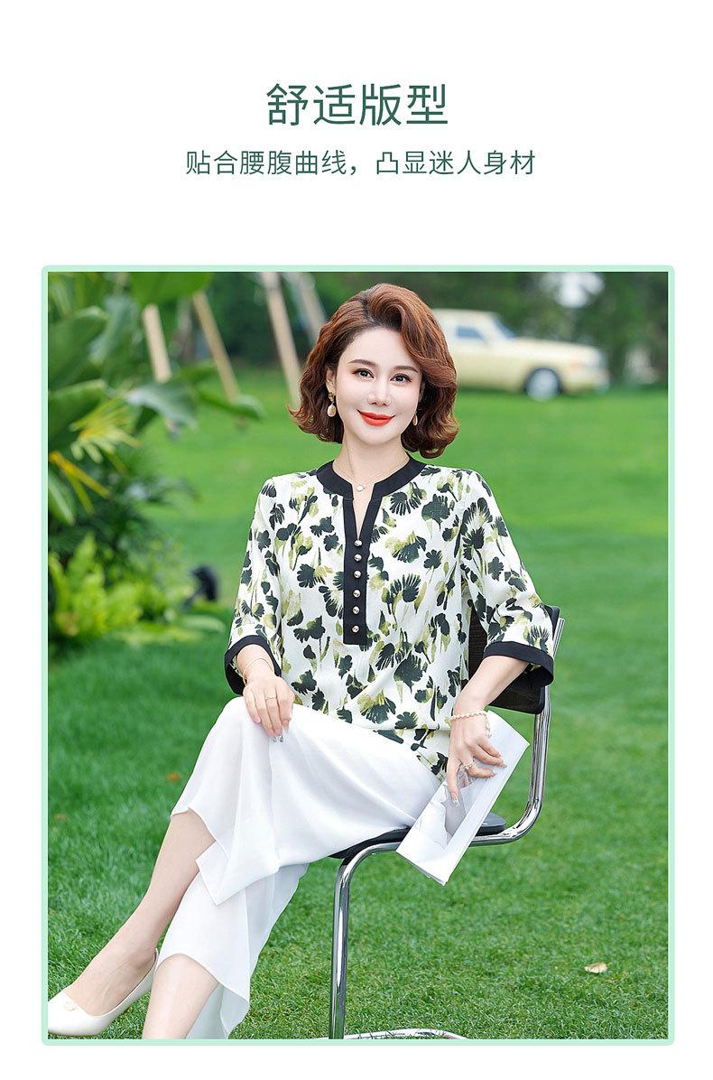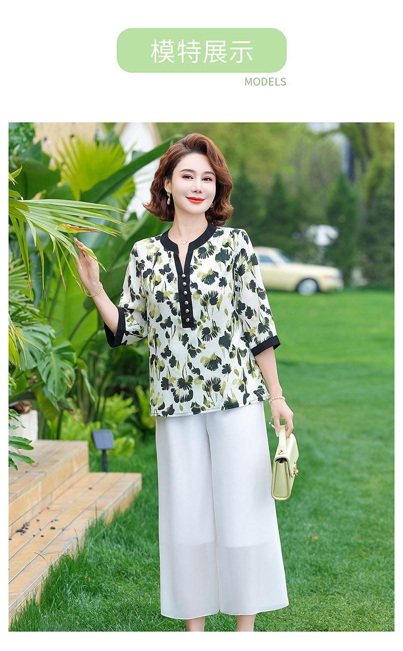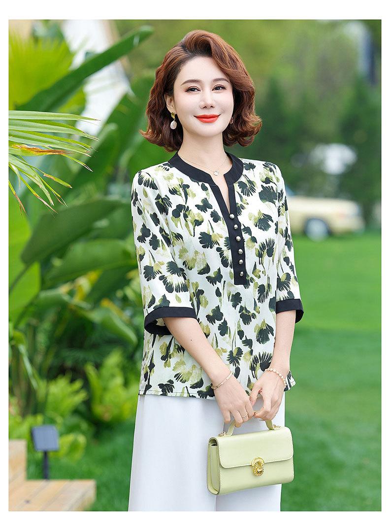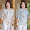 Camiseta de manga corta estilo occidental de verano para madres, novedad de 2024, camisa de gasa de manga corta de verano para mujeres de mediana edad y mayores, ropa de traje