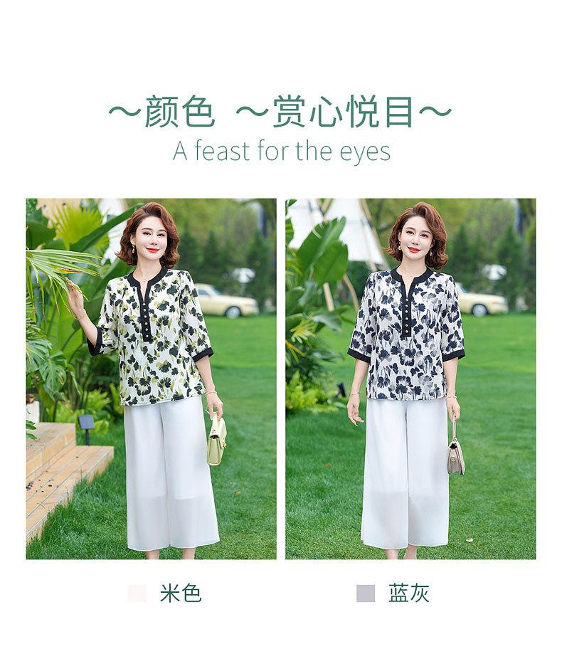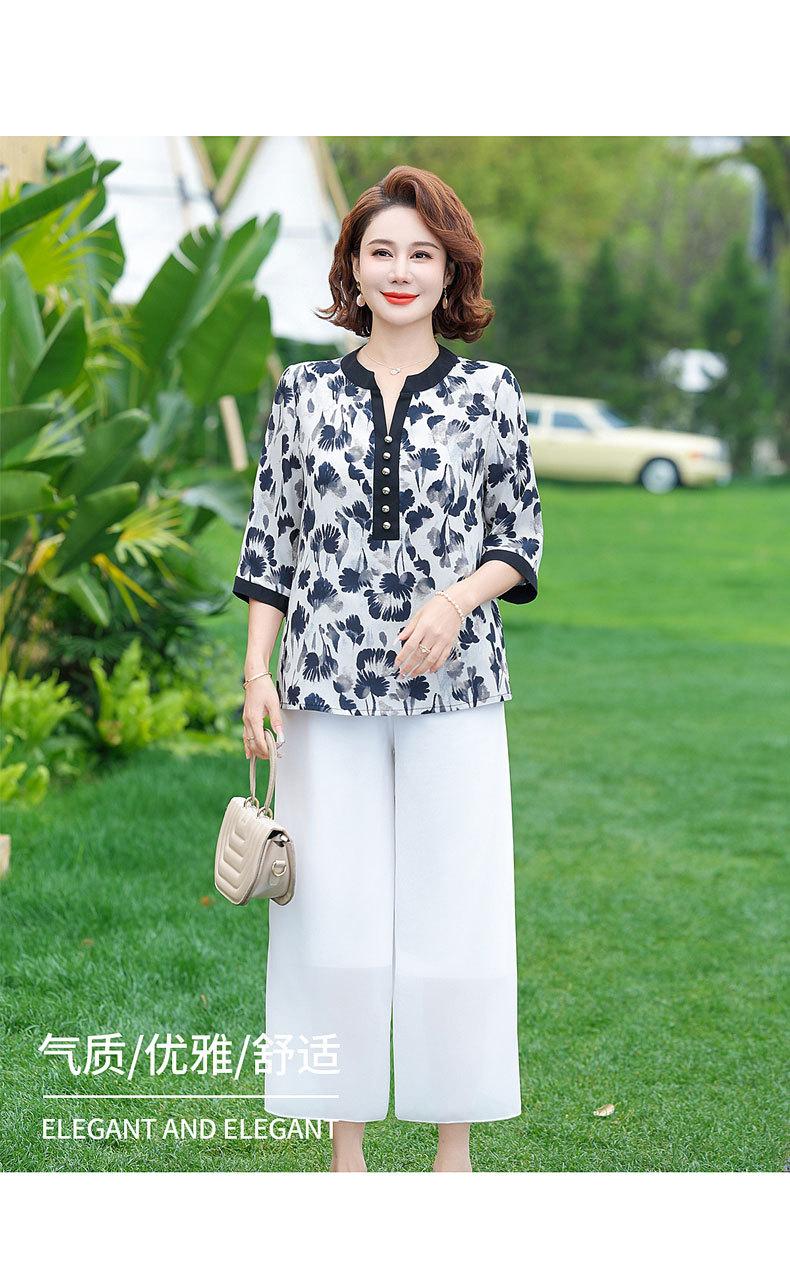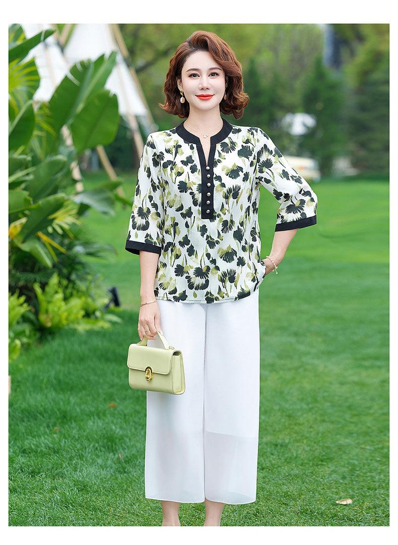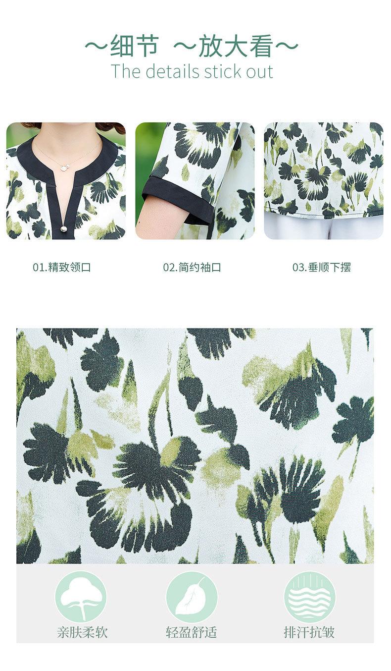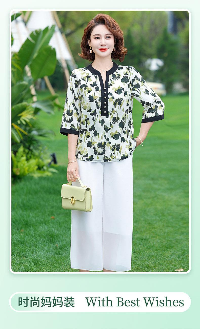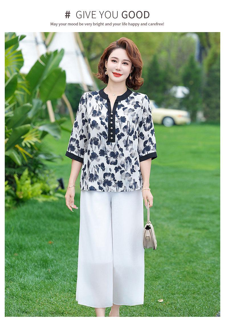 Camiseta de manga corta estilo occidental de verano para madres, novedad de 2024, camisa de gasa de manga corta de verano para mujeres de mediana edad y mayores, ropa de traje