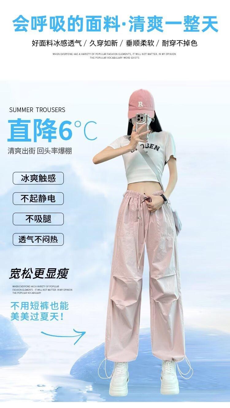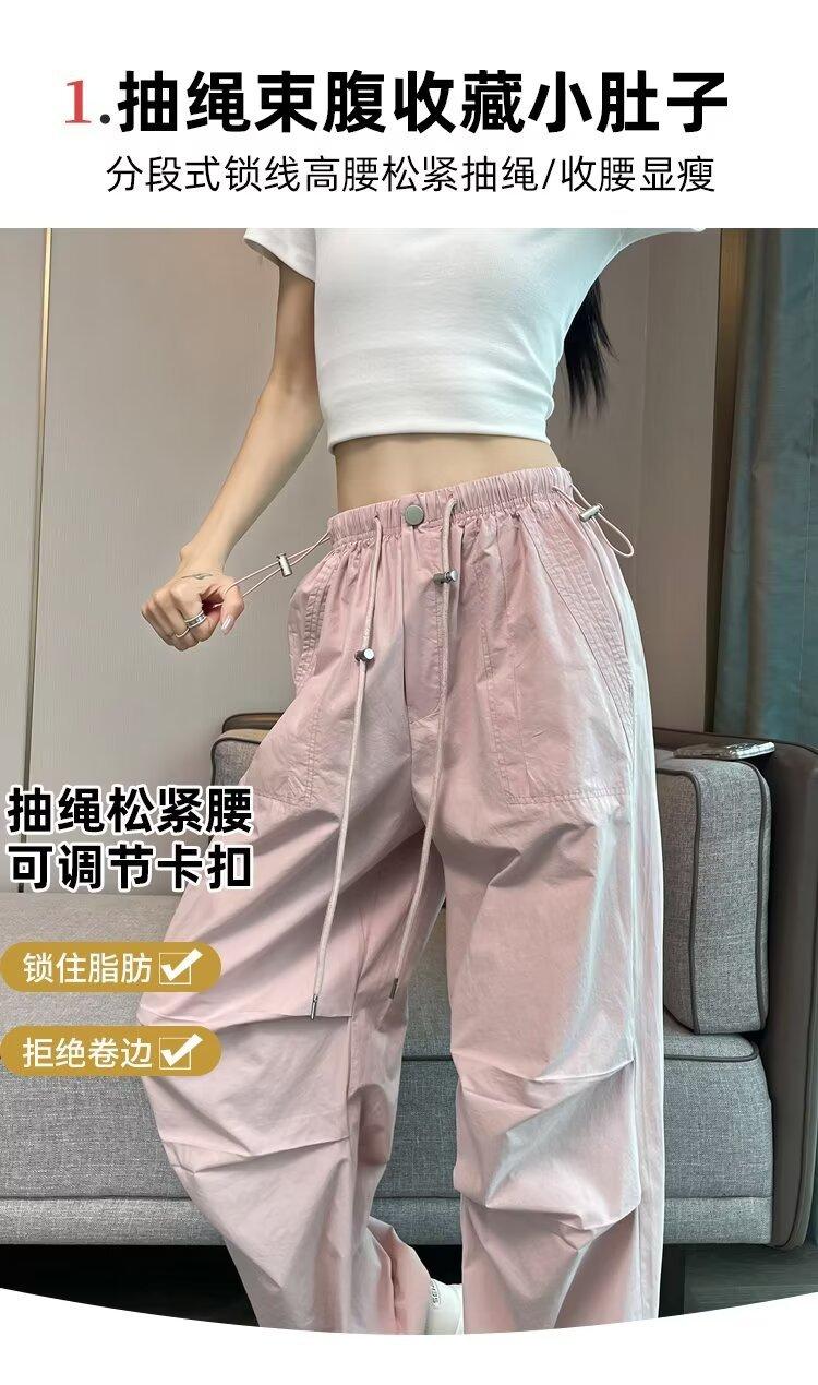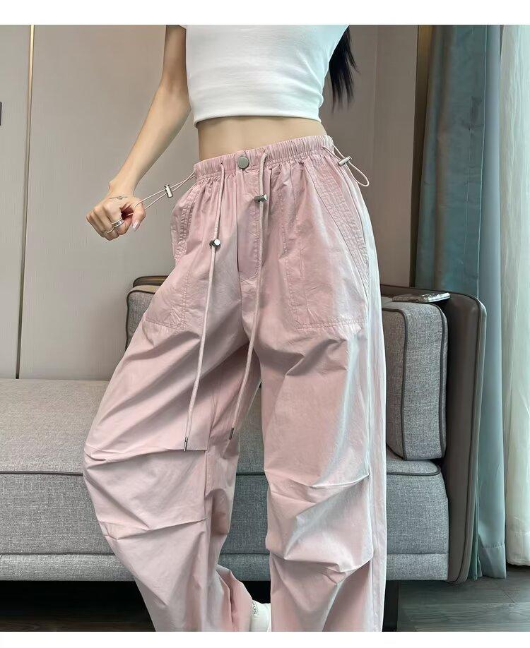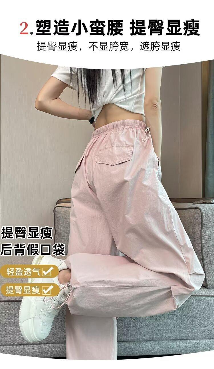 Monos de secado rápido estilo americano de color rosa para mujer, pantalones anchos informales de cintura alta, finos y adelgazantes, para primavera y verano