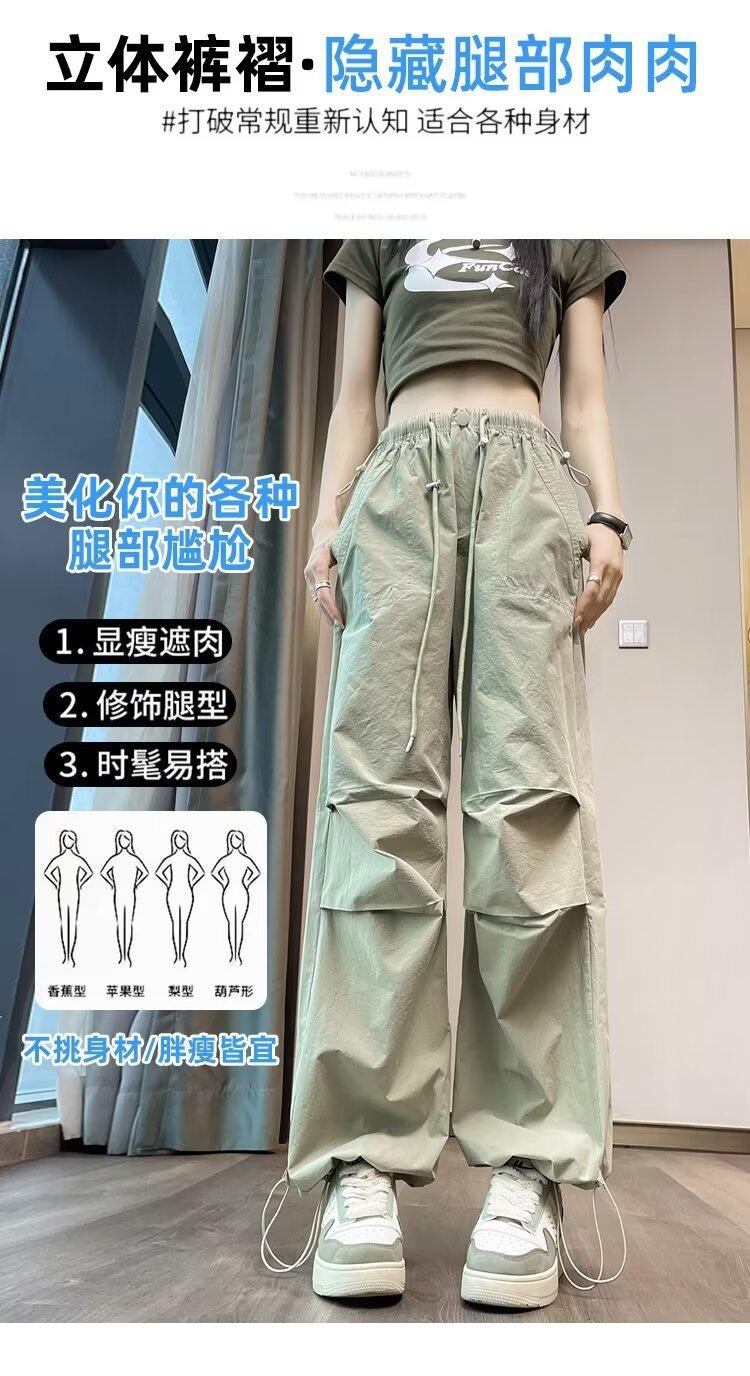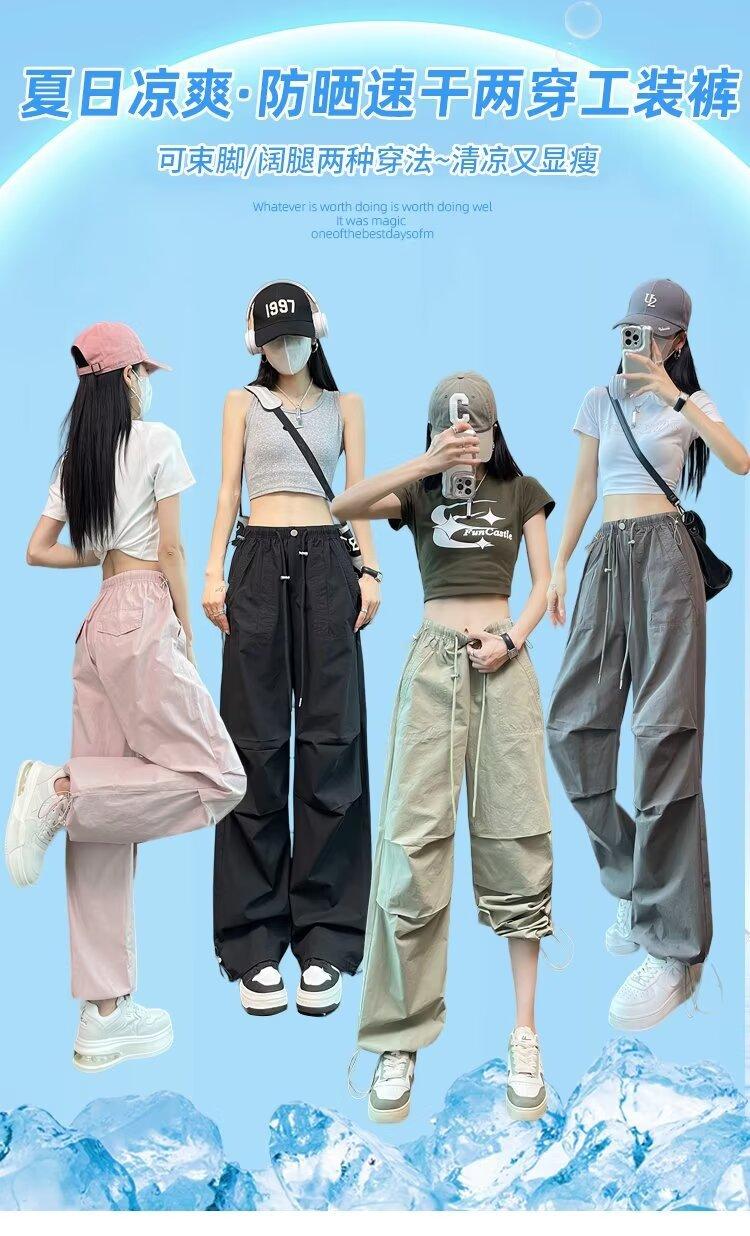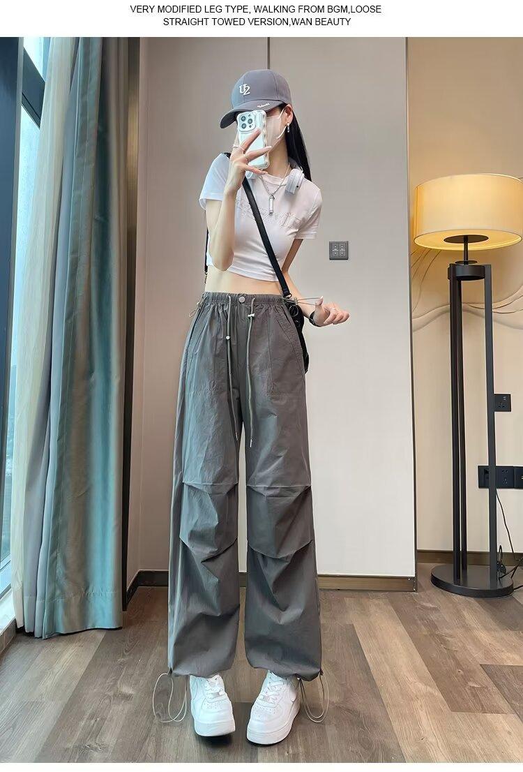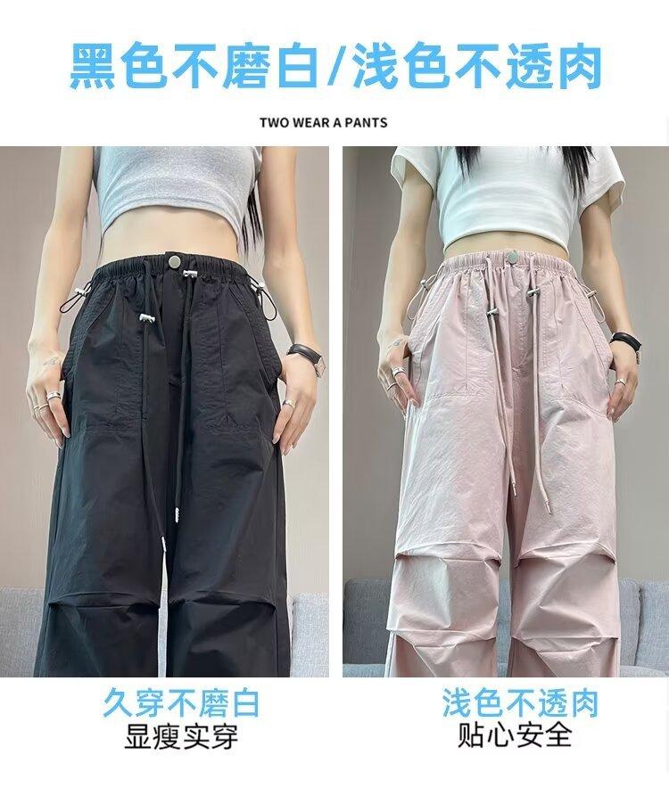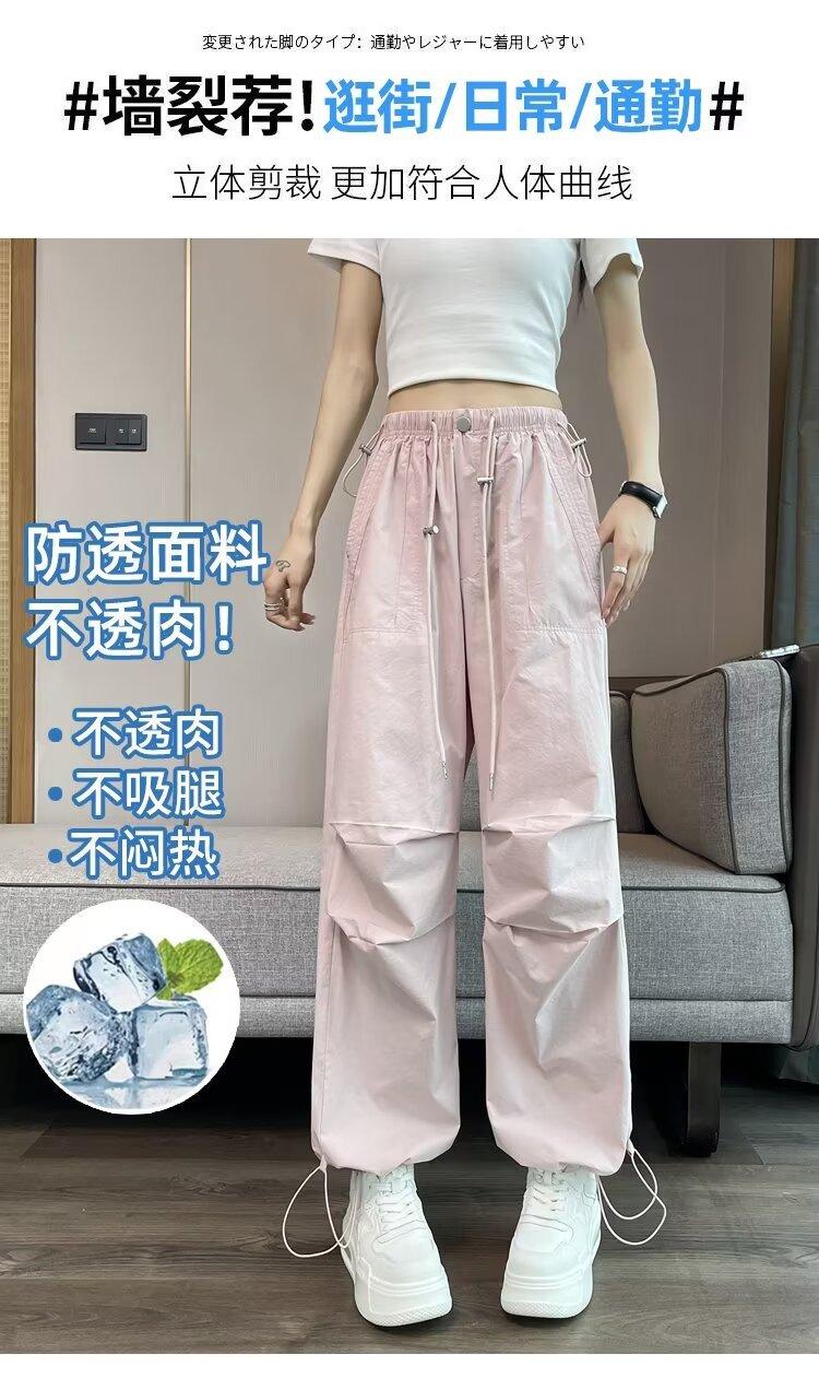 Monos de secado rápido estilo americano de color rosa para mujer, pantalones anchos informales de cintura alta, finos y adelgazantes, para primavera y verano