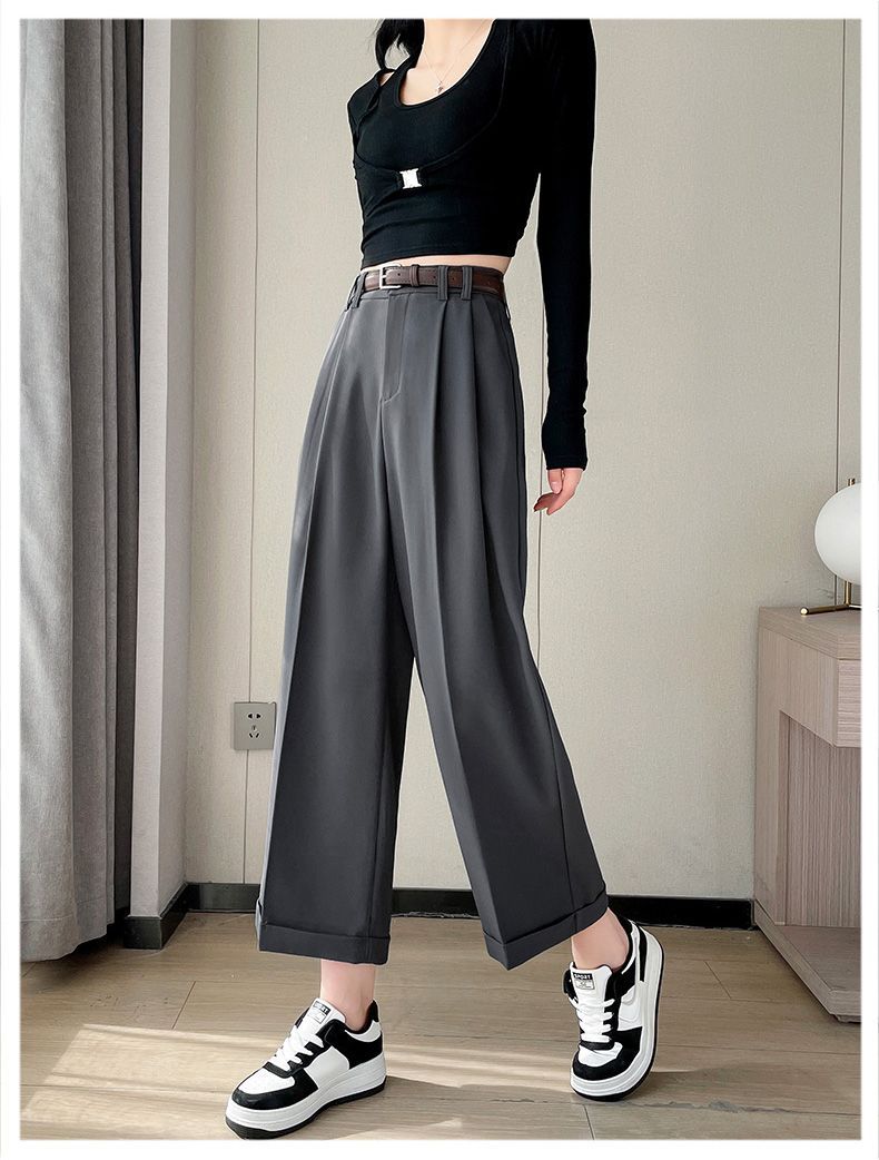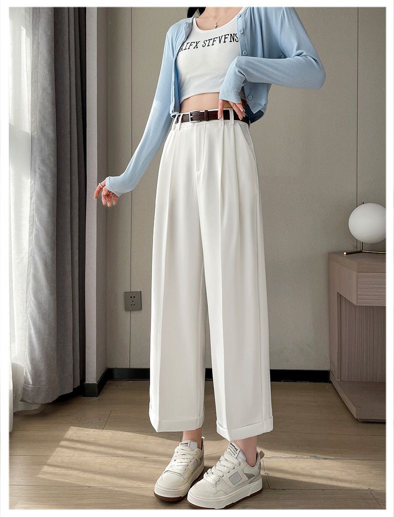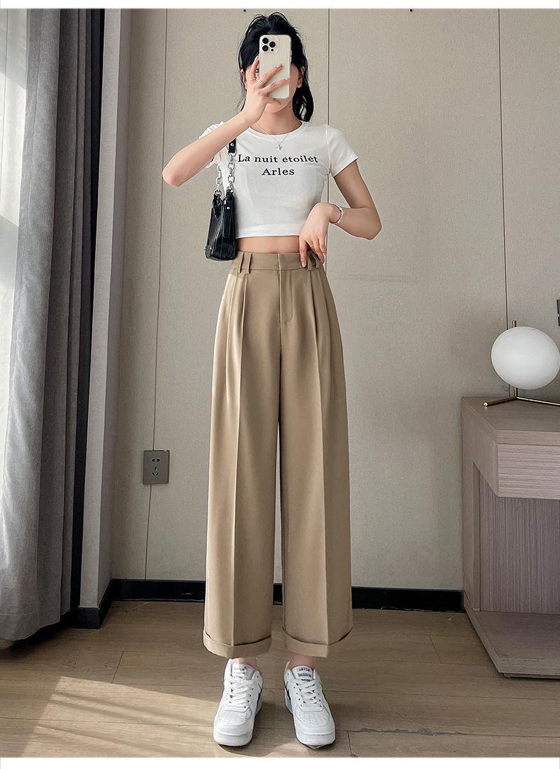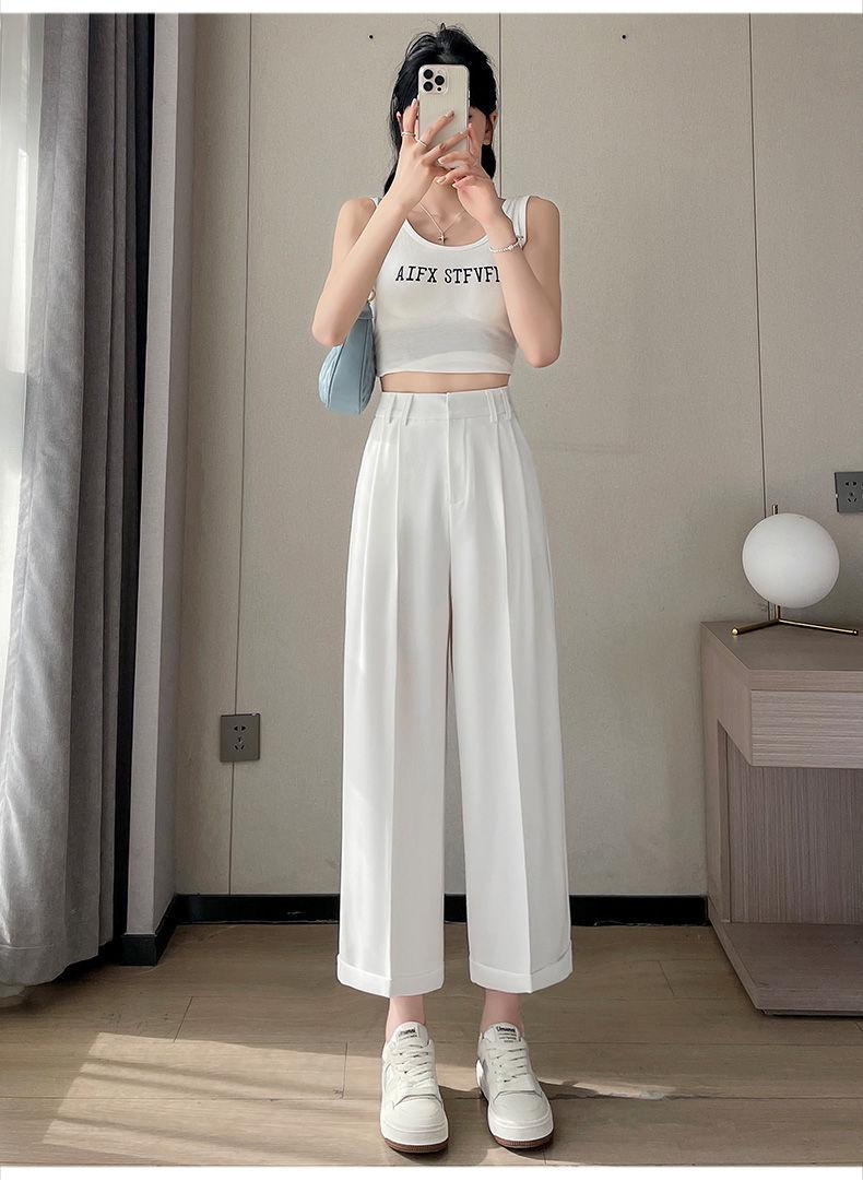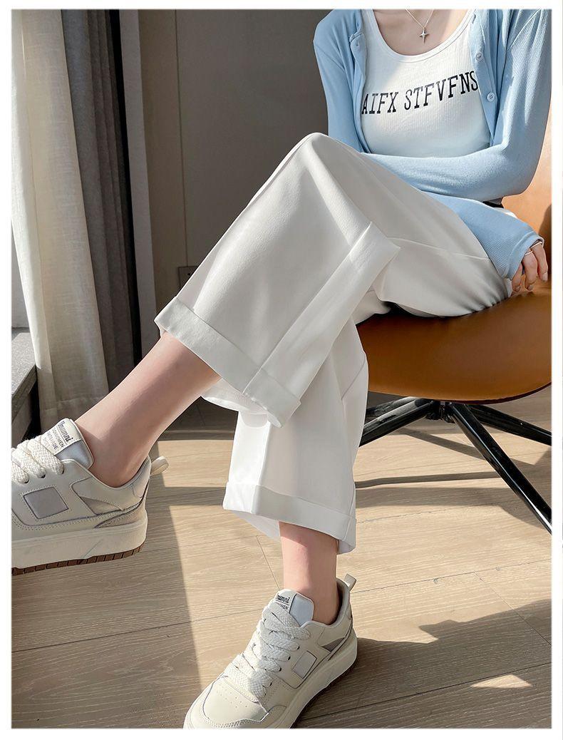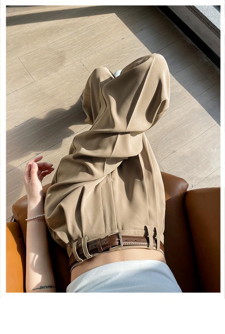 Verano 2024 Estilo Coreano Nueva Llegada Pantalones Cortos de Pierna Recta Diseño Sensorial Casual Pantalones de Pierna Ancha Versión Estrecha Pantalones de Vestir Arrugados para Mujer