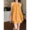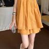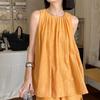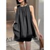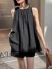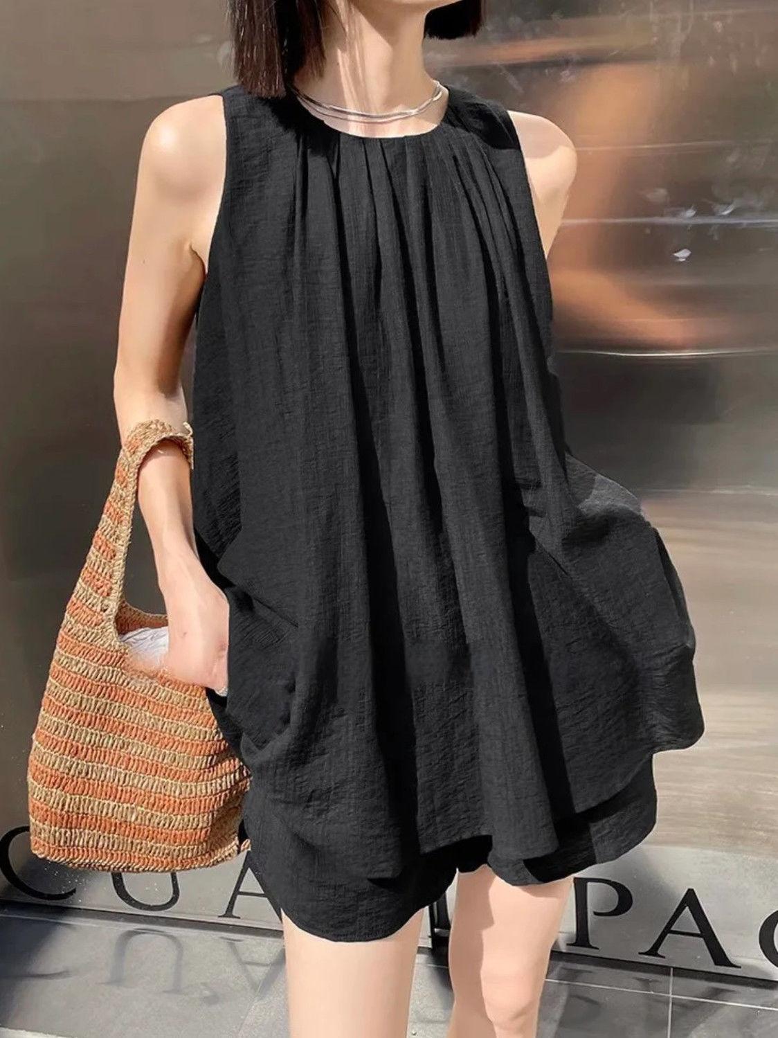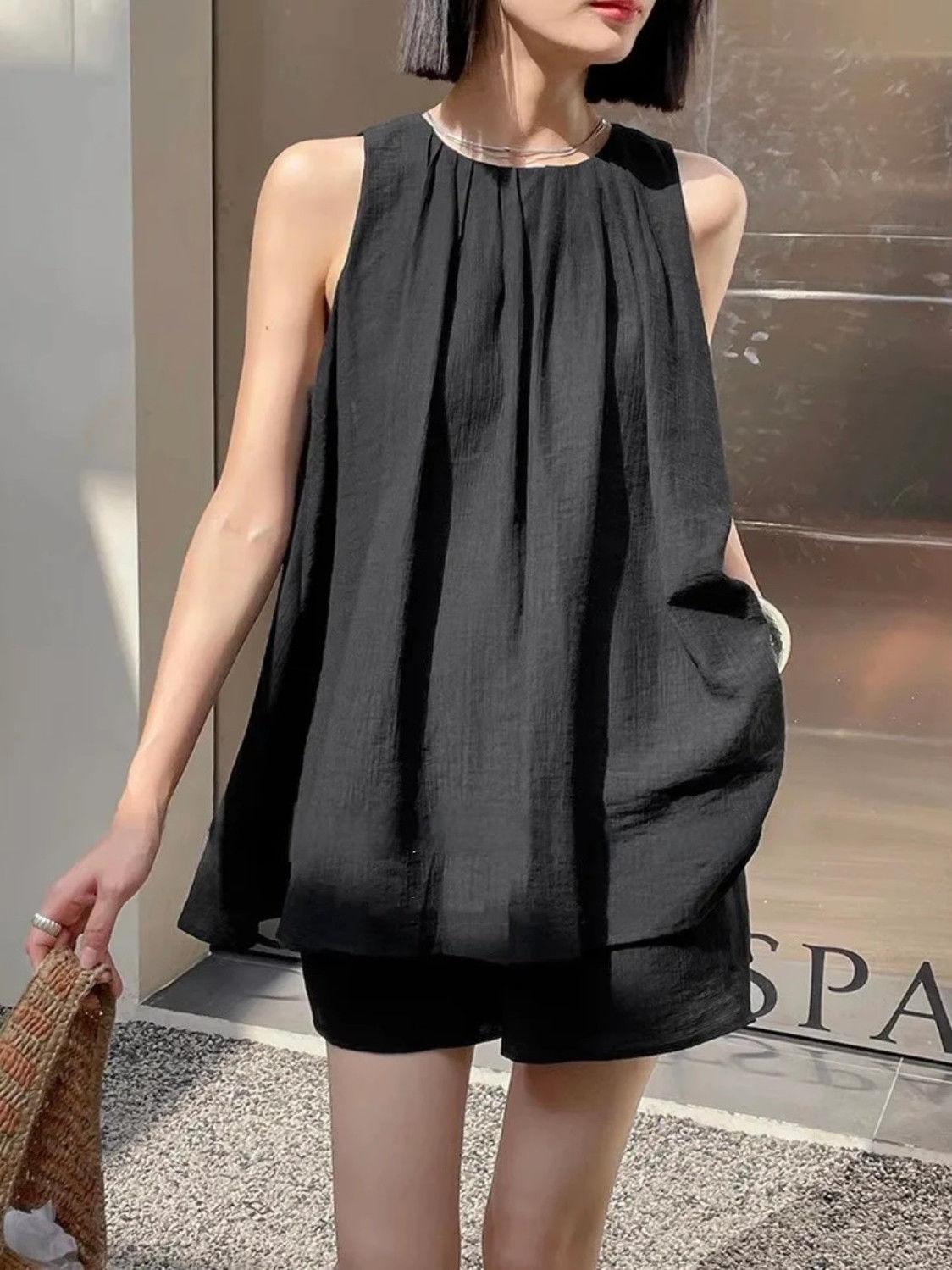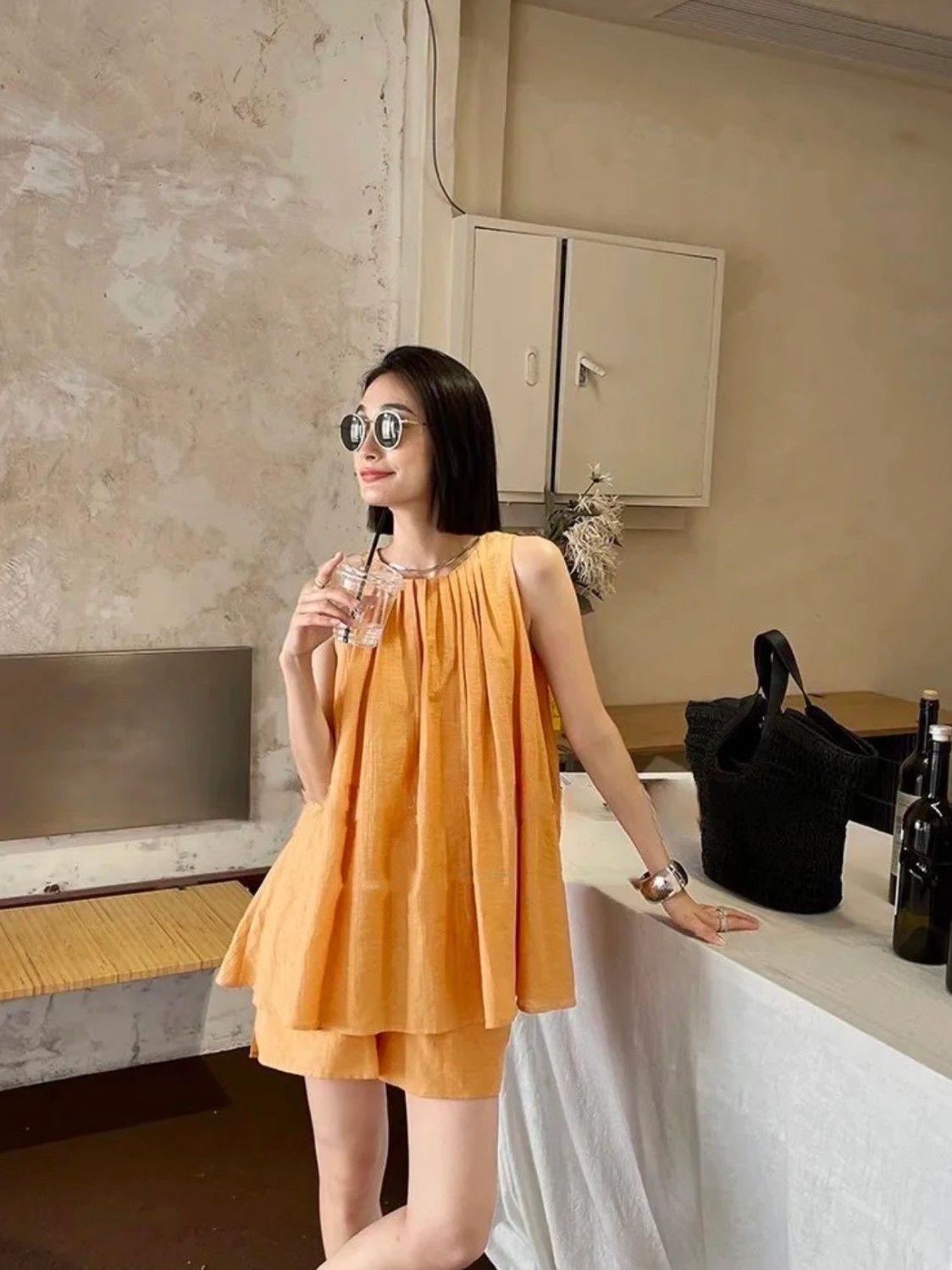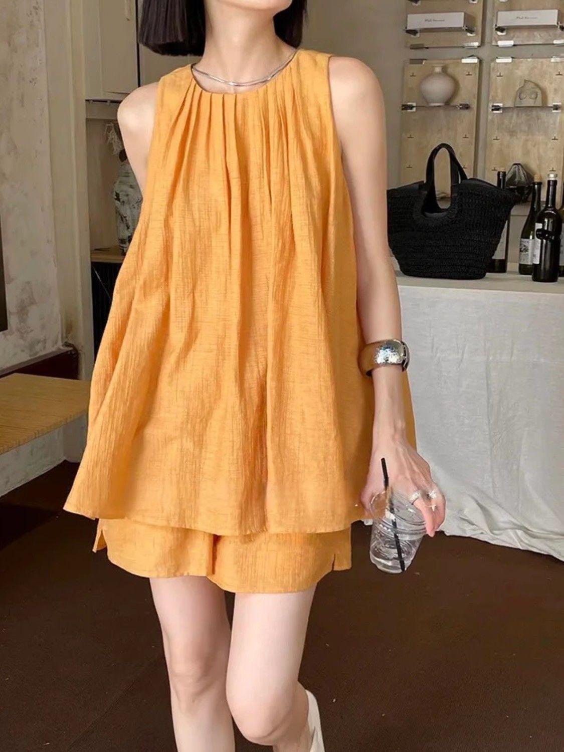 Traje de algodón y lino para mujer, elegante chaleco sin mangas, top y pantalones cortos finos y sueltos, conjunto de dos piezas de color sólido, novedad de verano de 2024