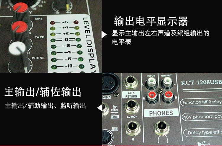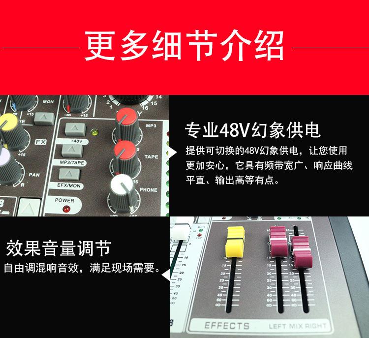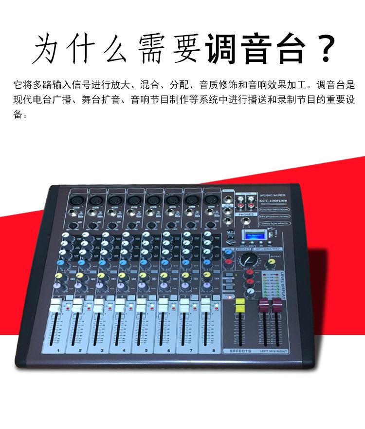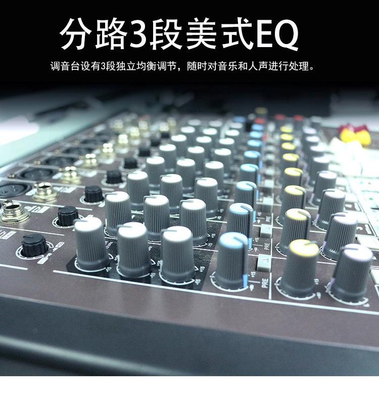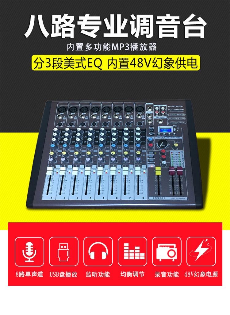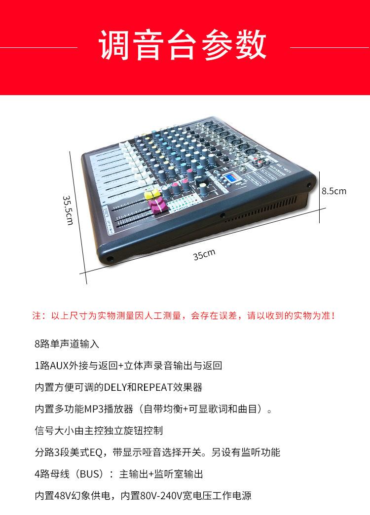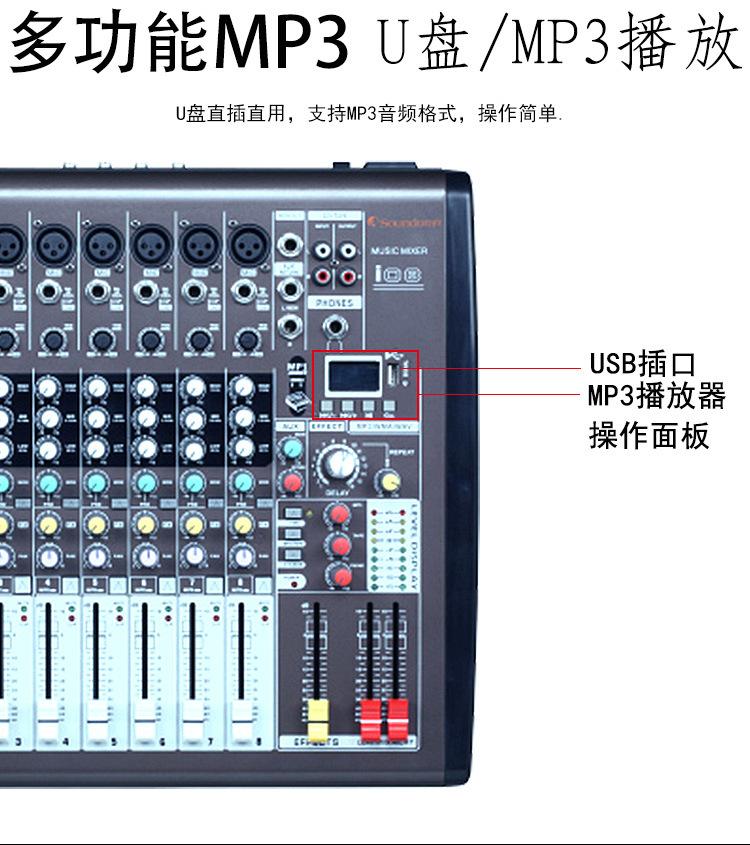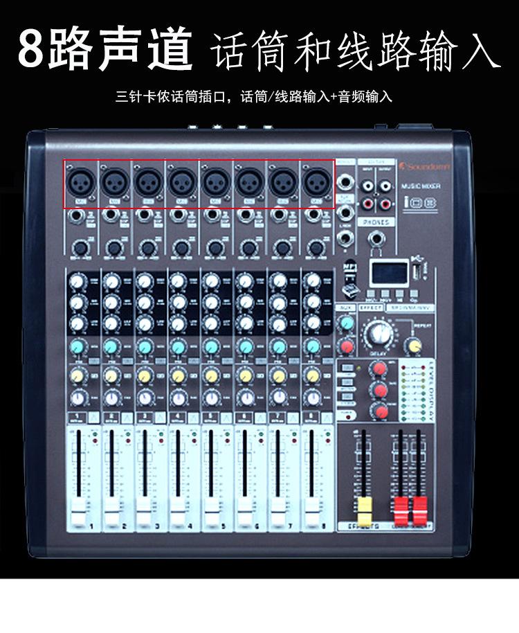 Mezclador mono profesional de 8 canales USB Pantalla rendimiento escénico conferencia control de efectos de audio sintonizador
