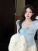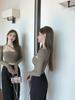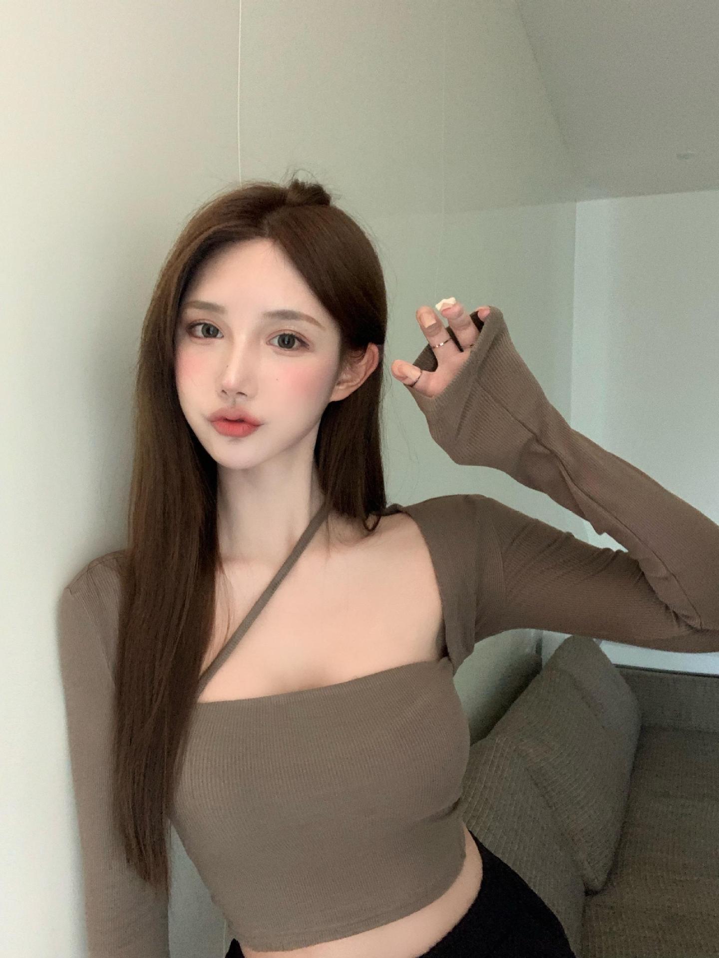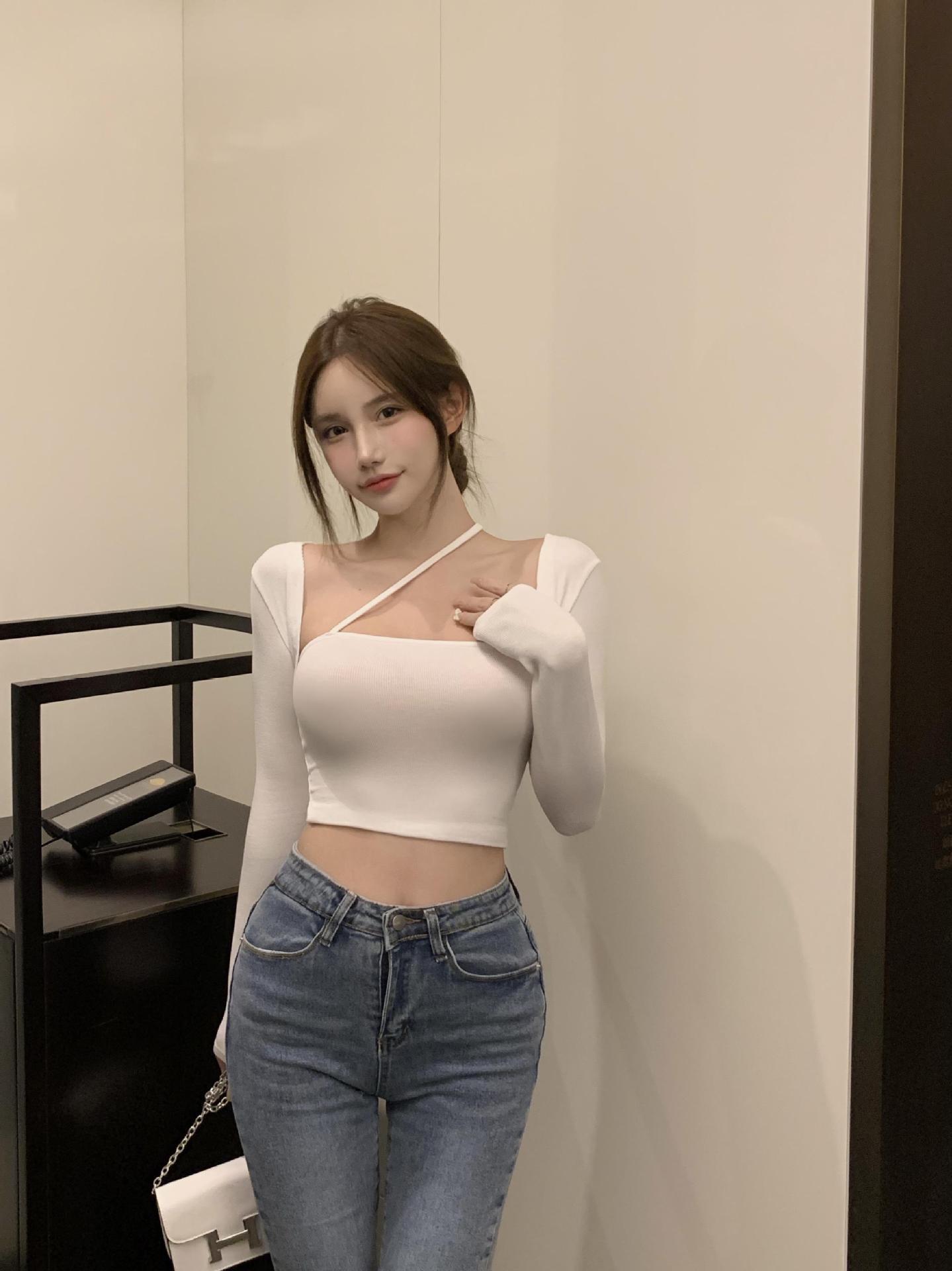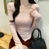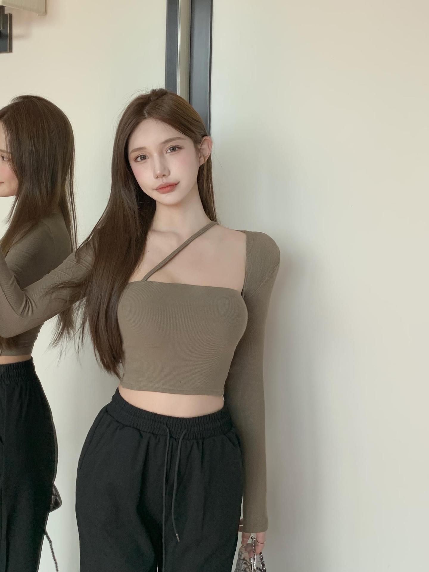 Camisa de cuello cuadrado estilo Spice Girl estilo americano Pure Desire, camisa pequeña estilo occidental, camiseta de manga larga con tirantes oblicuos para mujer.