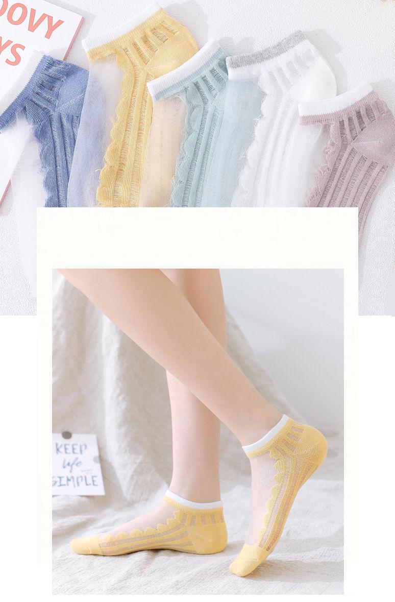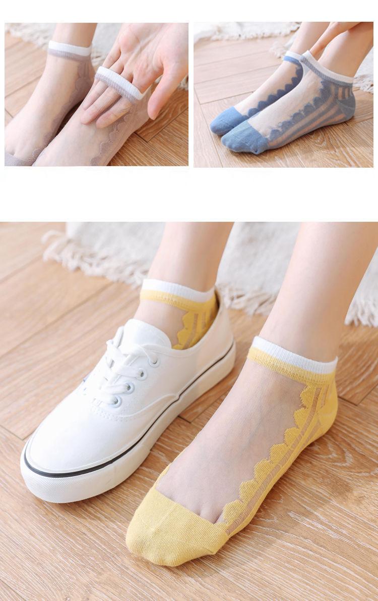 Calcetines de mujer estilo coreano, medias de seda, calcetines finos de verano para mujer, calcetines japoneses de cristal, calcetines náuticos de seda de cristal de corte bajo, calcetines transparentes invisibles.