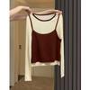 Suéter de punto de dos piezas con tirantes de lazo, estilo coreano, elegante, estilo francés, para mujer, otoño 2024