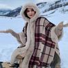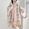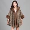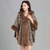 2023 Otoño e Invierno Europeo y Americano Nuevo Capa Chal con Capucha Imitación Piel de Conejo Rex Cálido Manga Abrigo de Punto Capa para Mujer