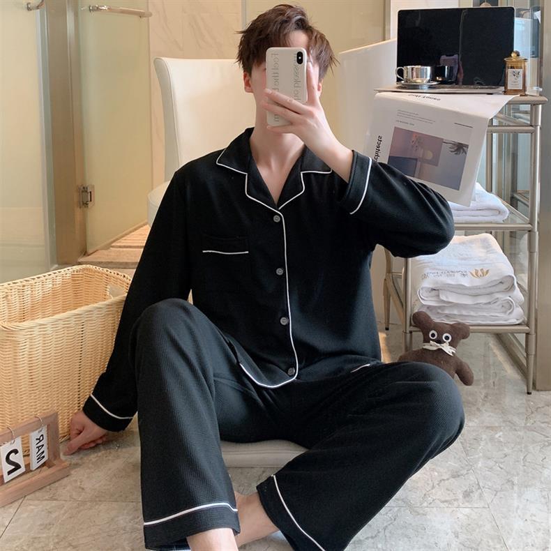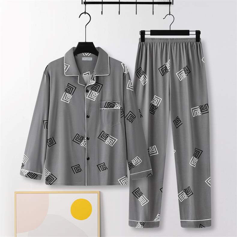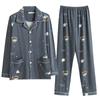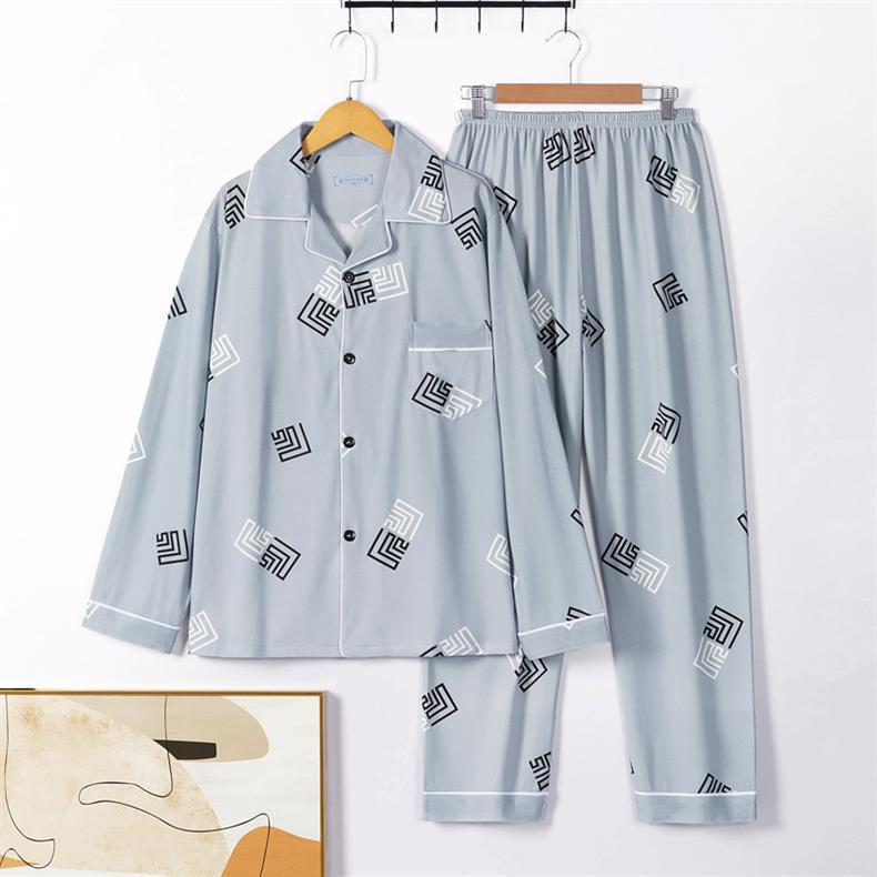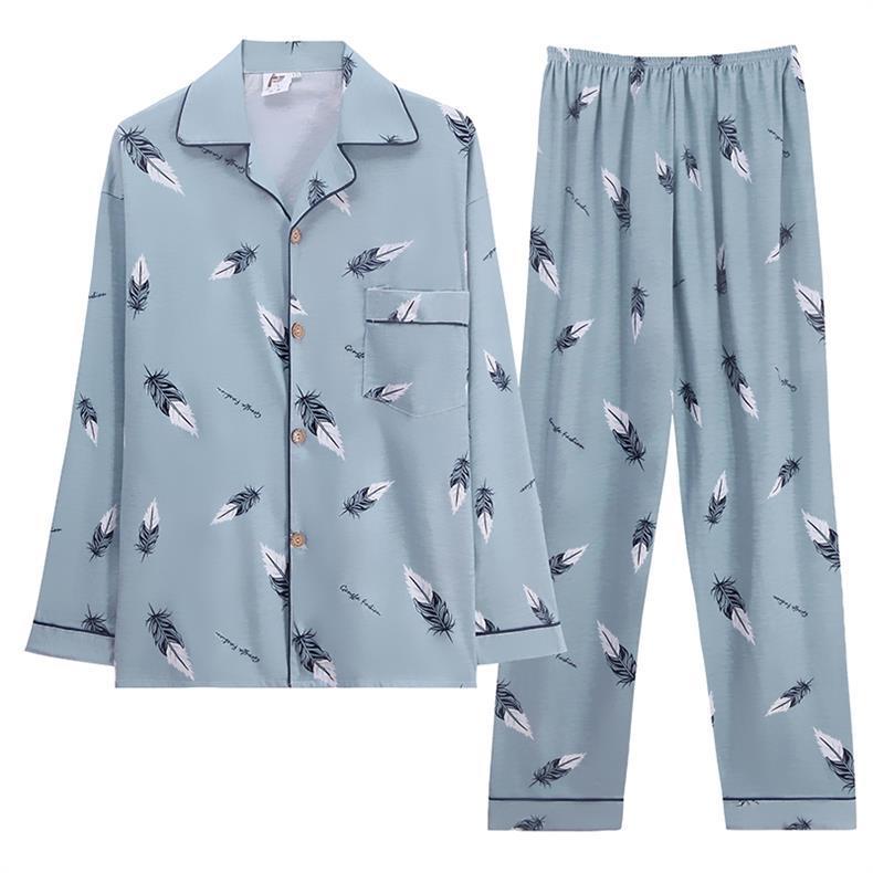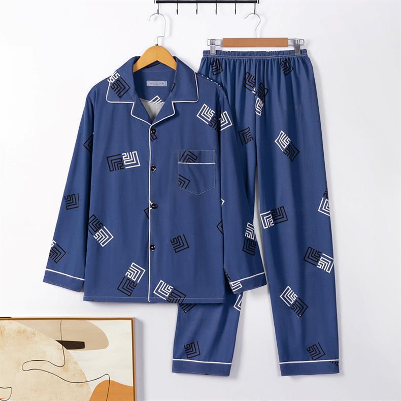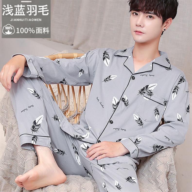 Pijama de Algodón Puro para Hombre Manga Larga Cárdigan Primavera y Otoño Delgado Explosiones Nuevo Verde Mediana Edad y Ancianos Traje de Invierno