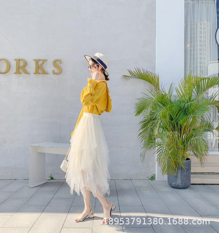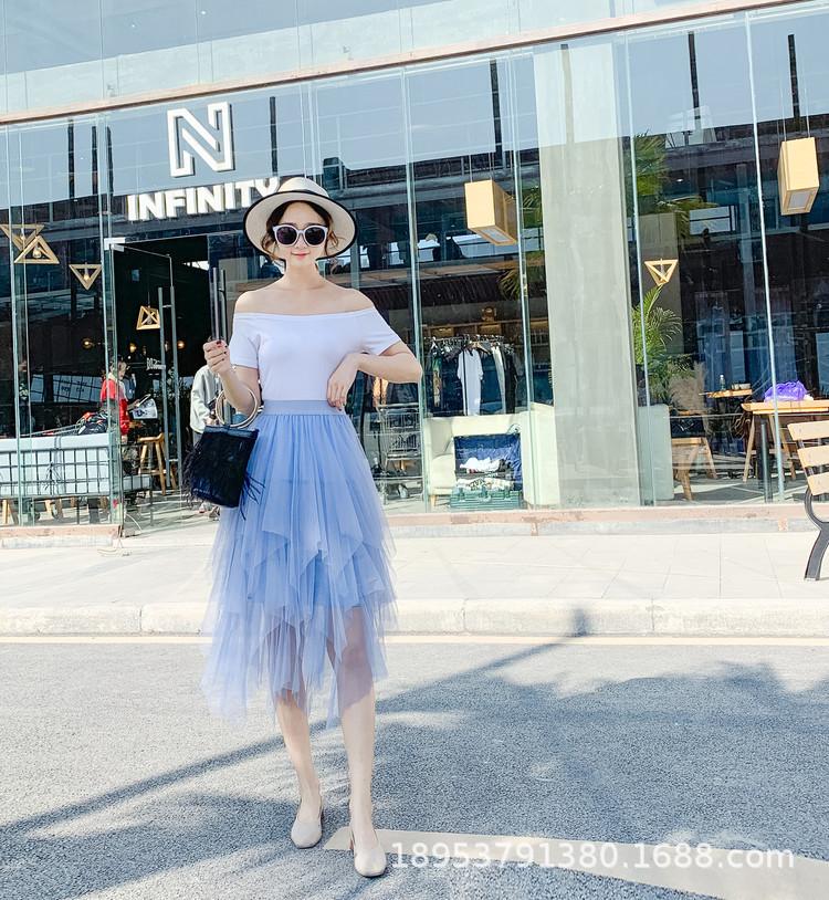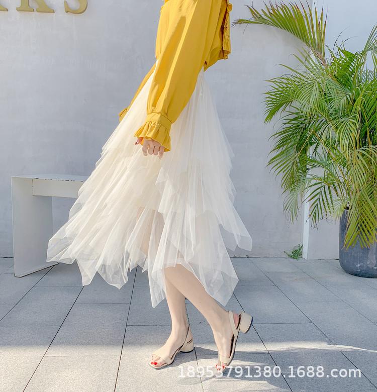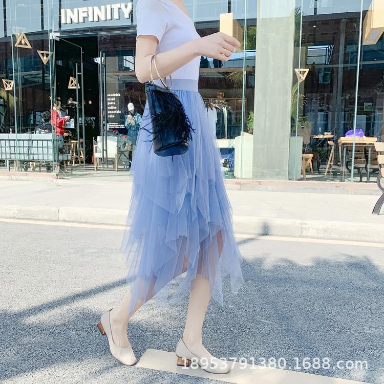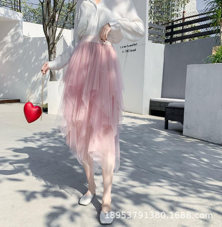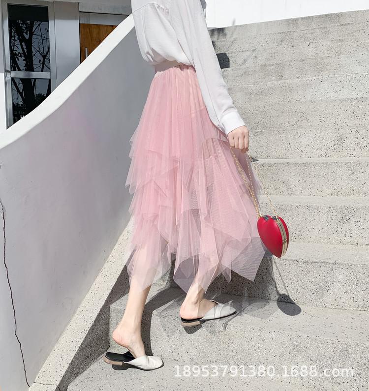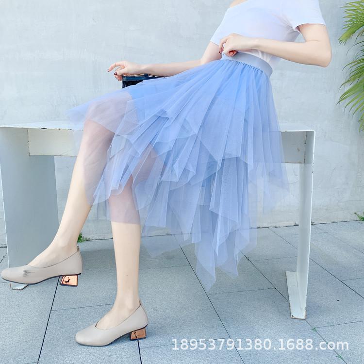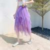 Falda de malla irregular para mujer, de longitud media, estilo nuevo de primavera 2023, con velo, cintura alta y combinable, 7778