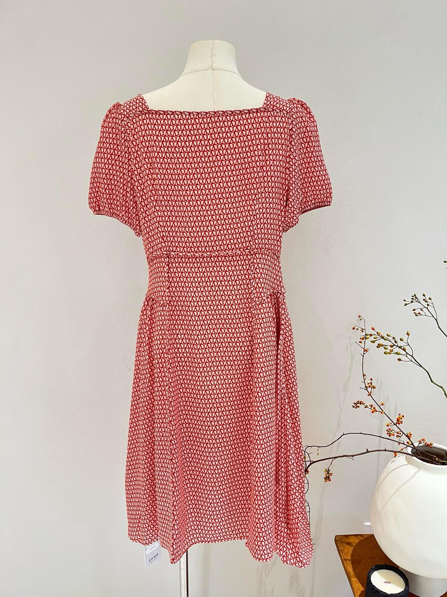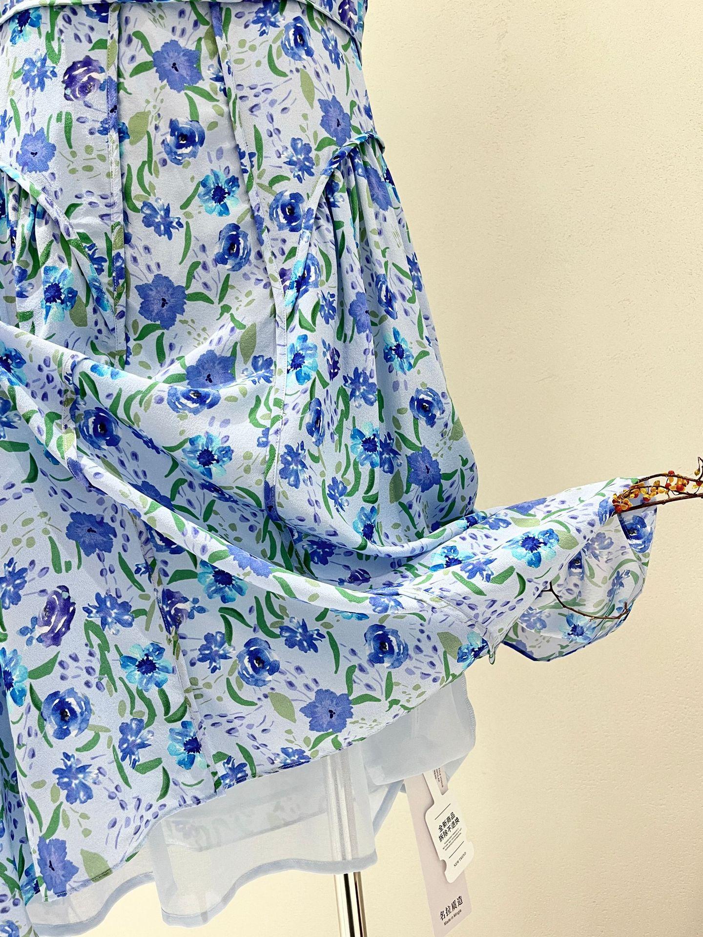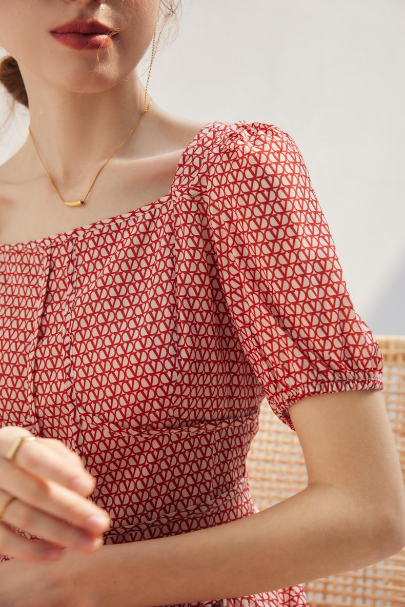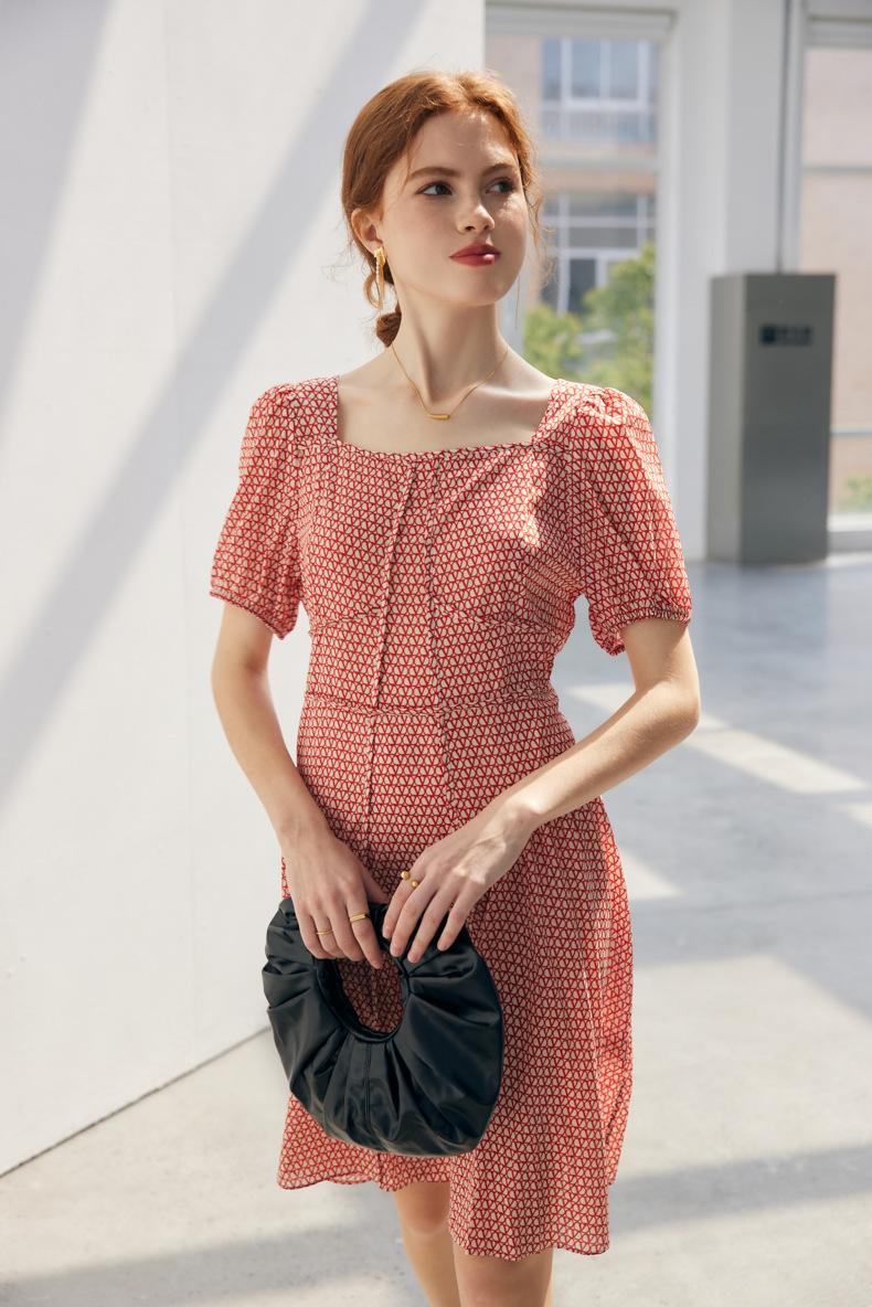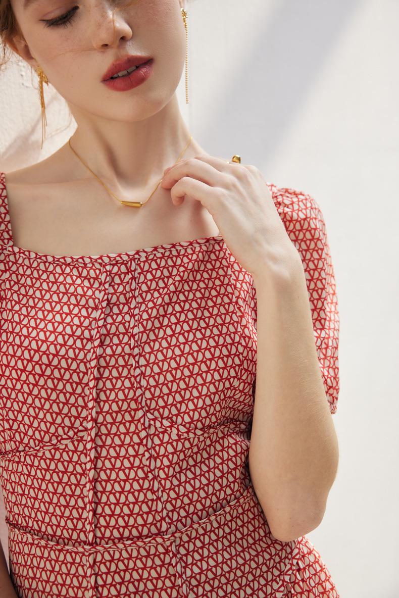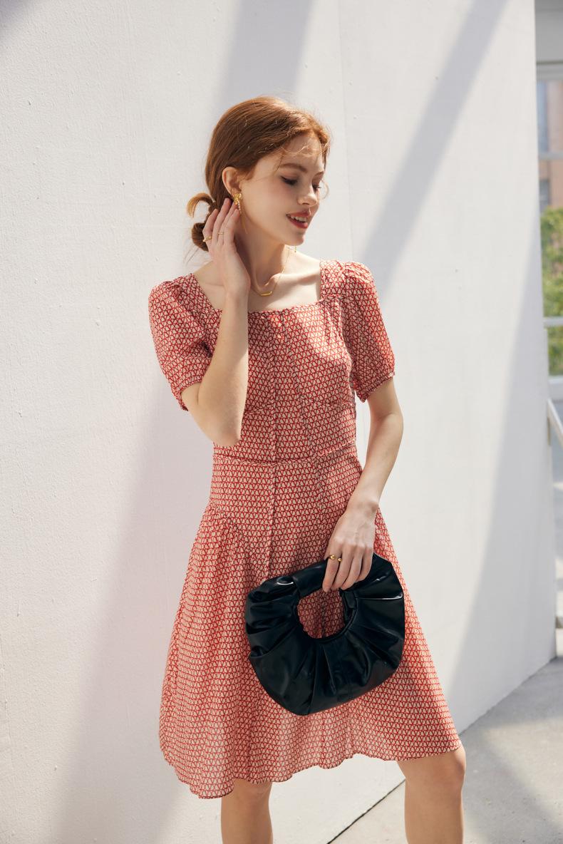 Vestido de seda de manga corta para mujer primavera y verano 2025 nuevo joven estampado cuello cuadrado 100% seda de morera falda