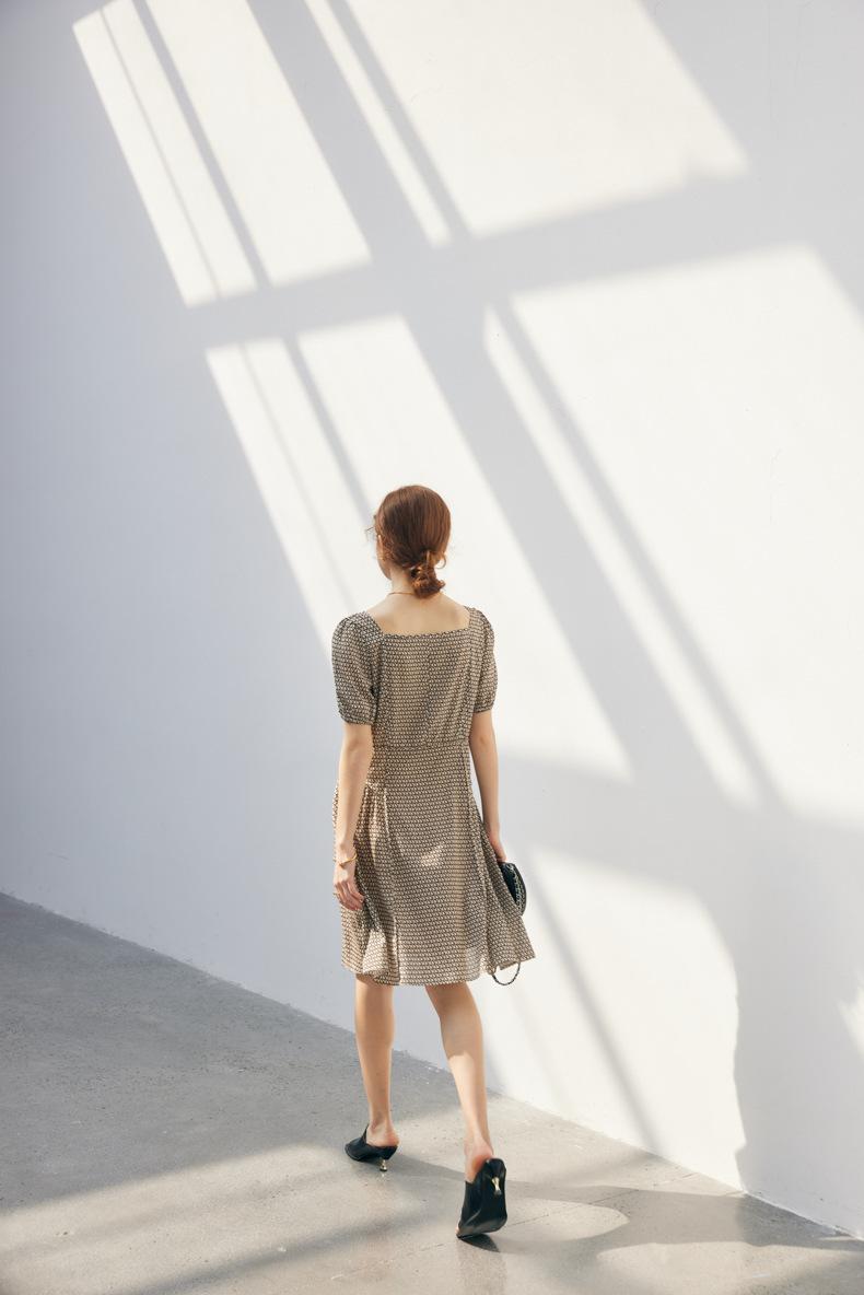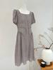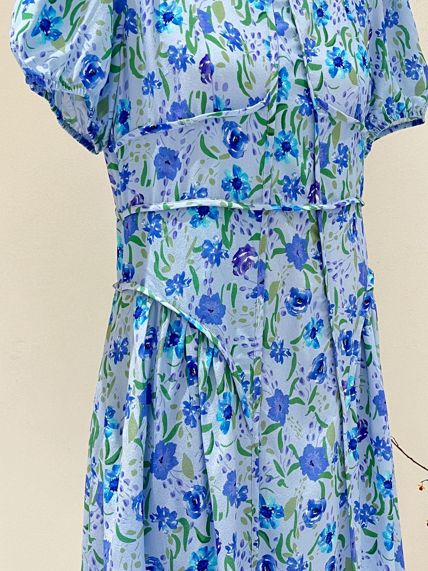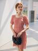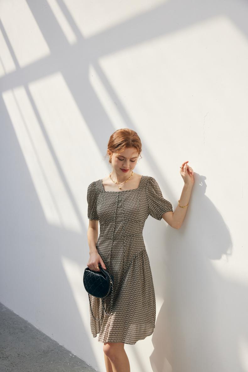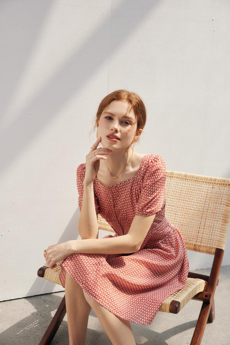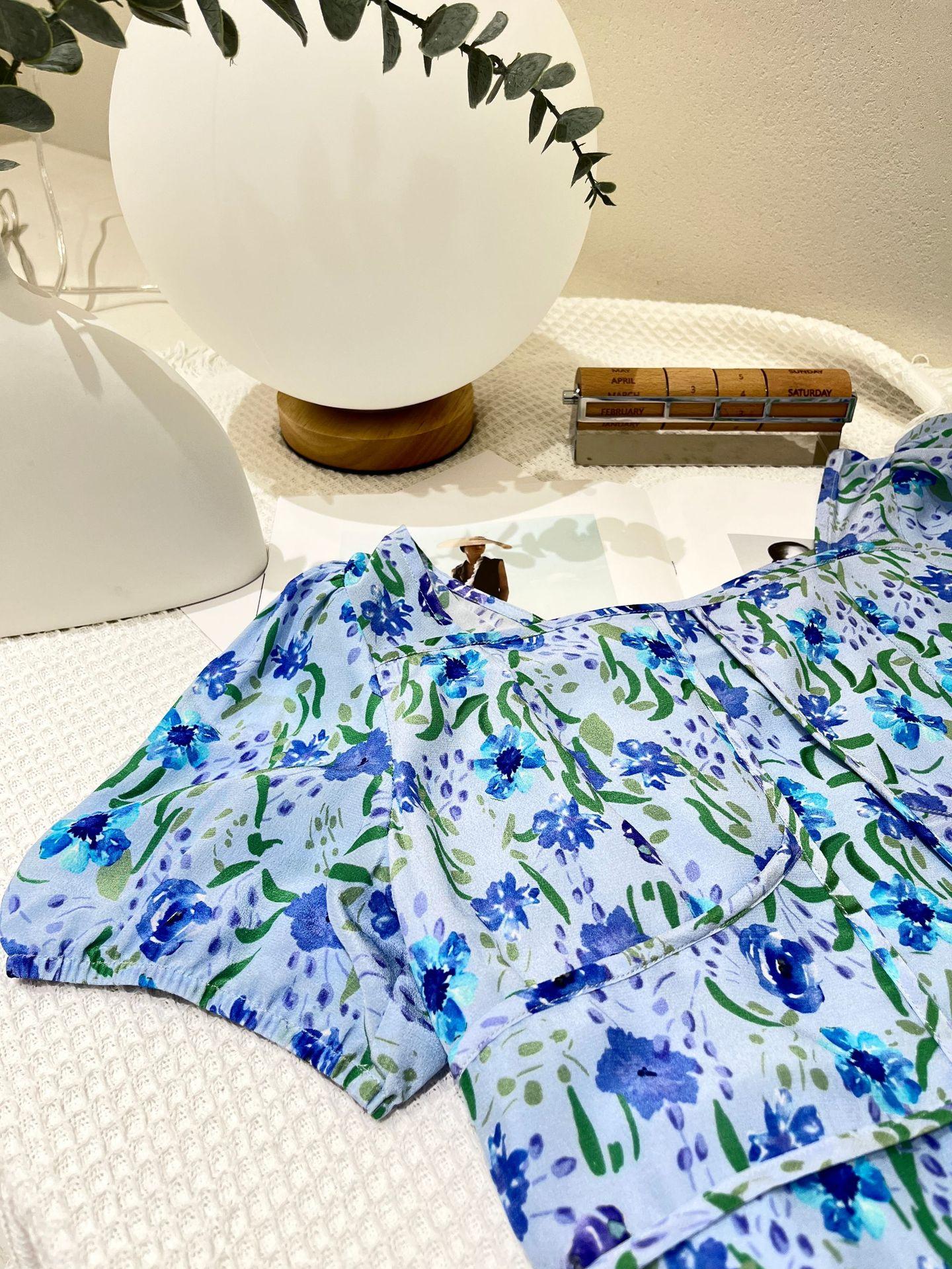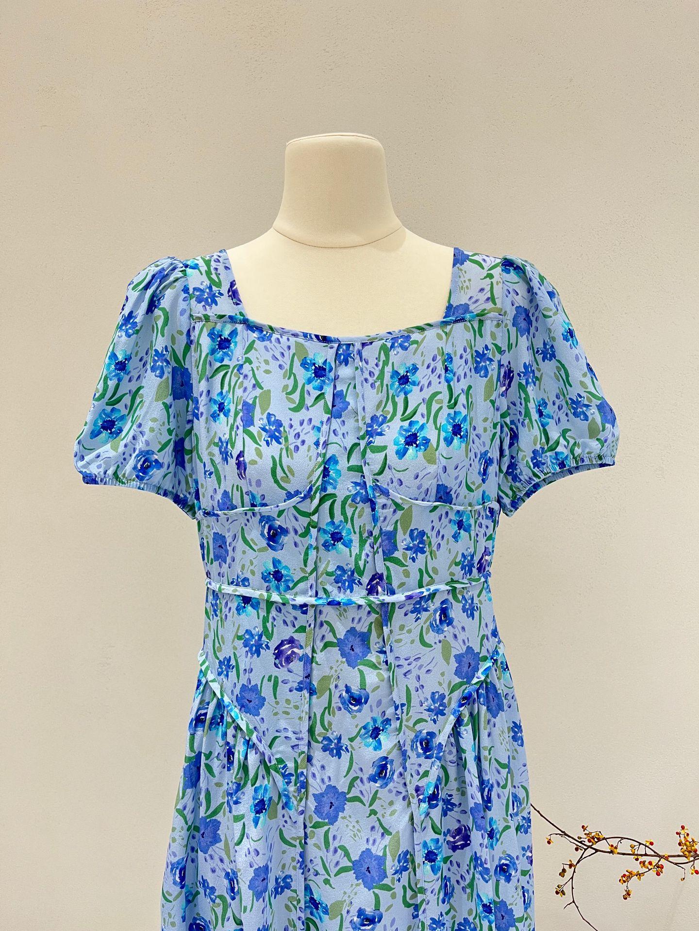 Vestido de seda de manga corta para mujer primavera y verano 2025 nuevo joven estampado cuello cuadrado 100% seda de morera falda