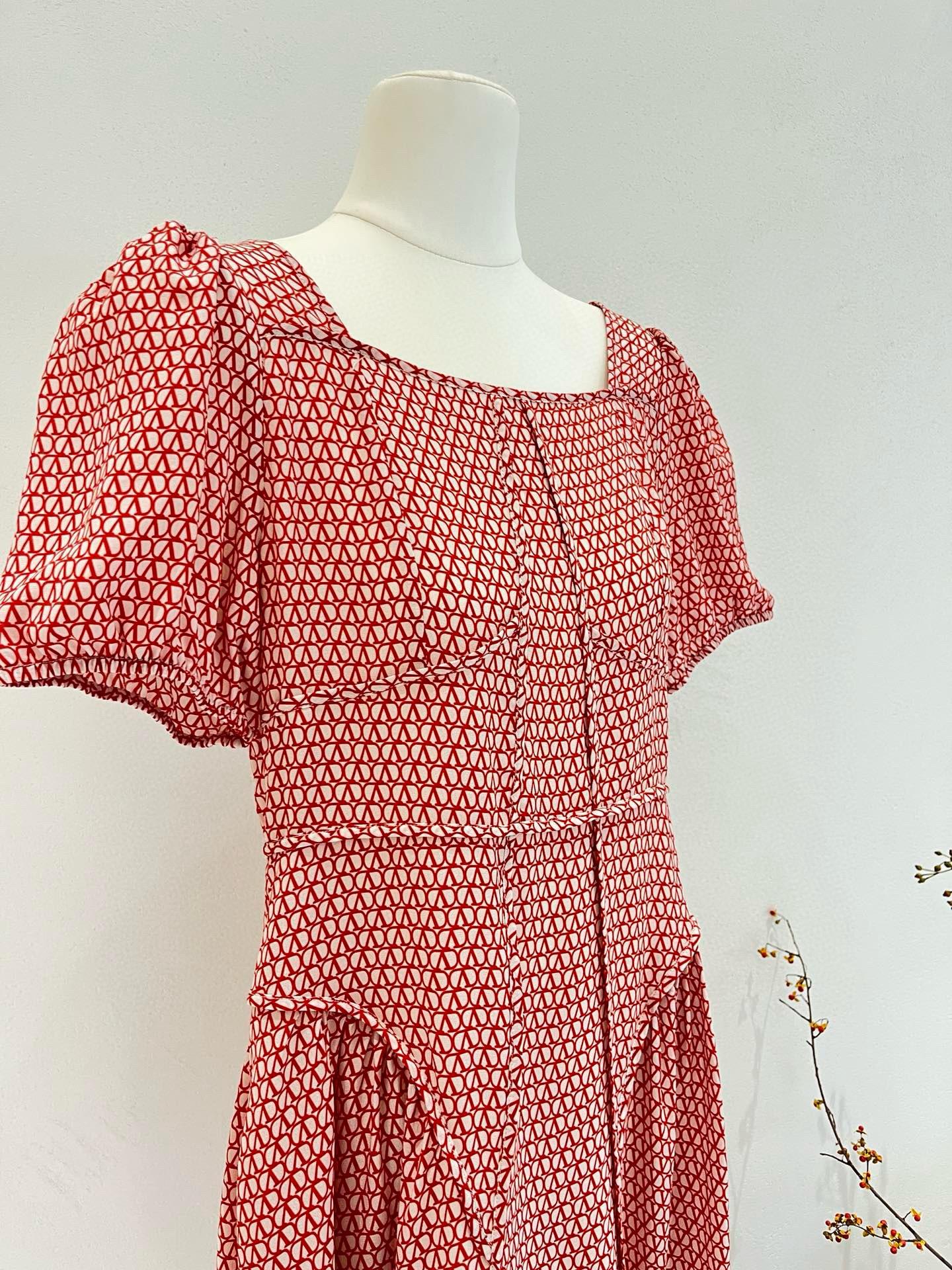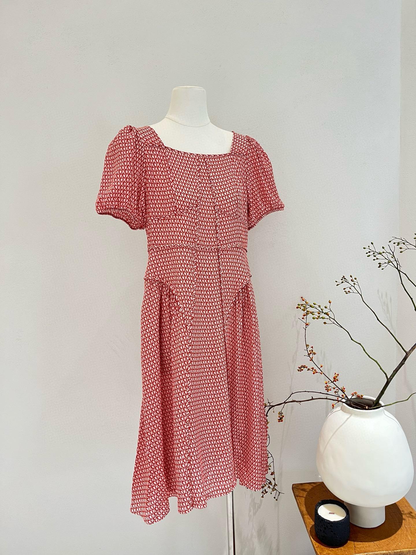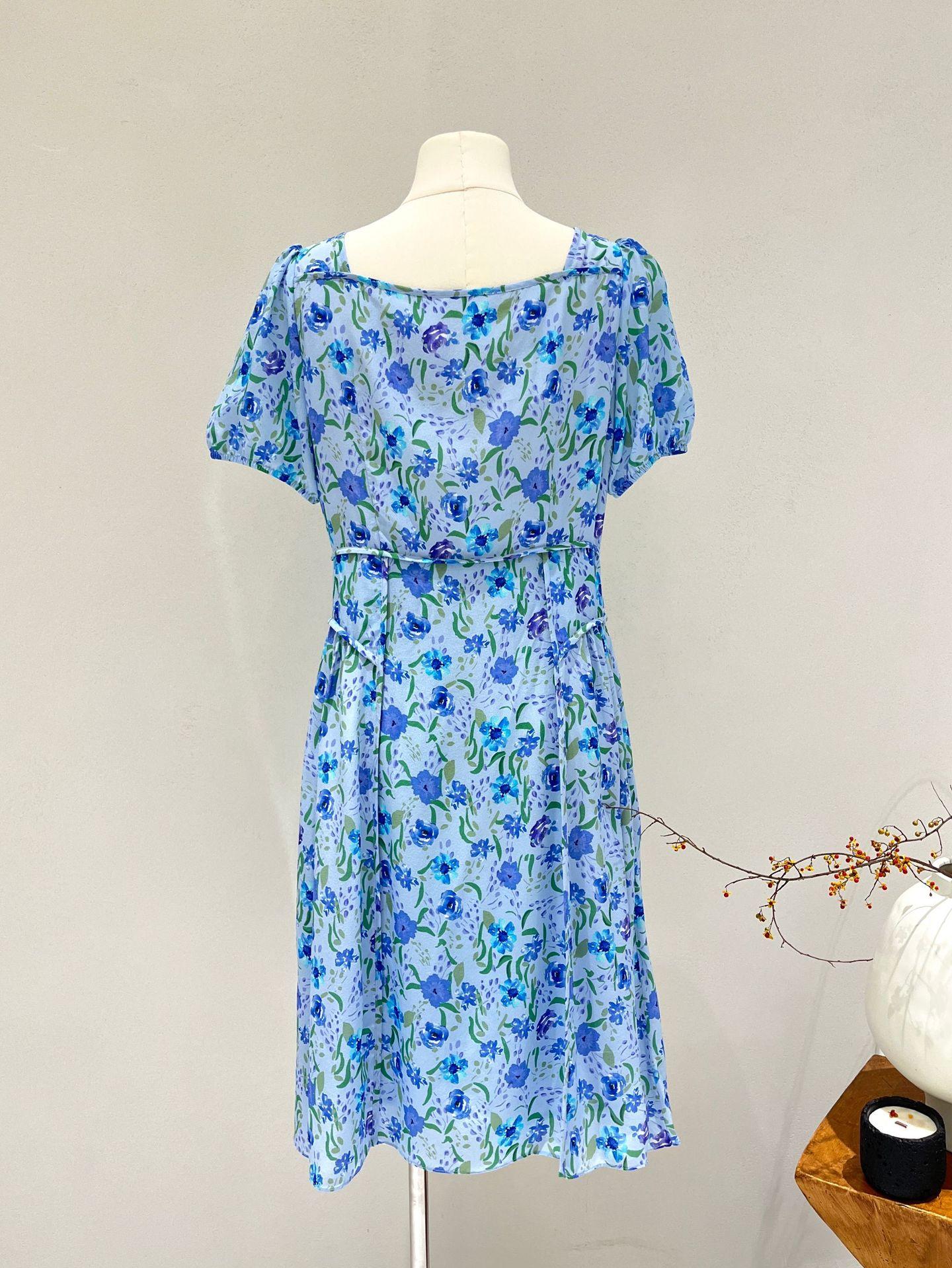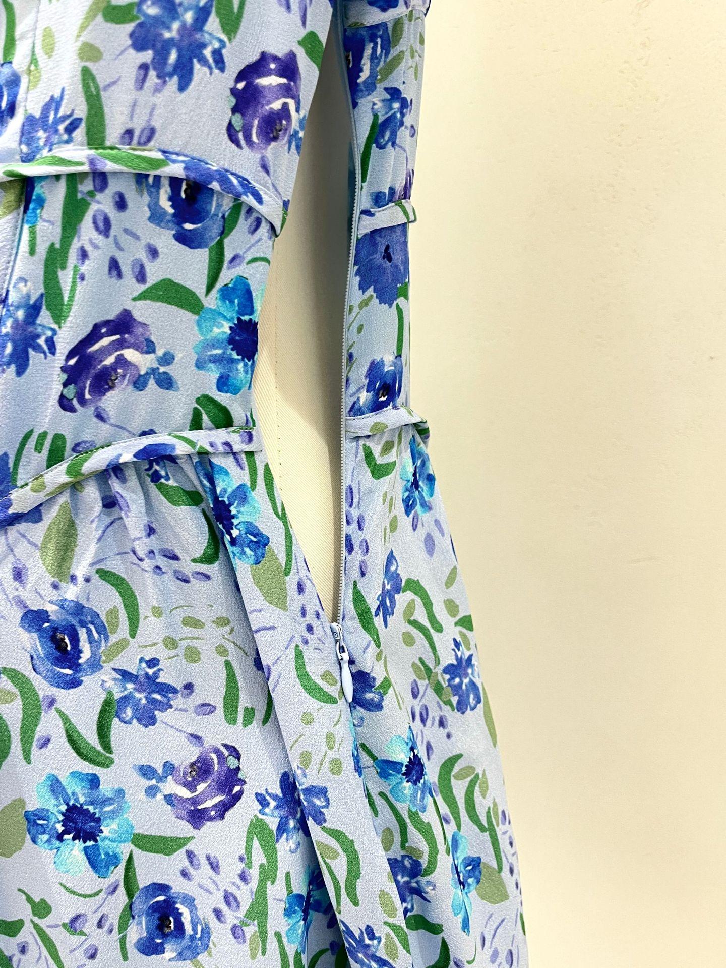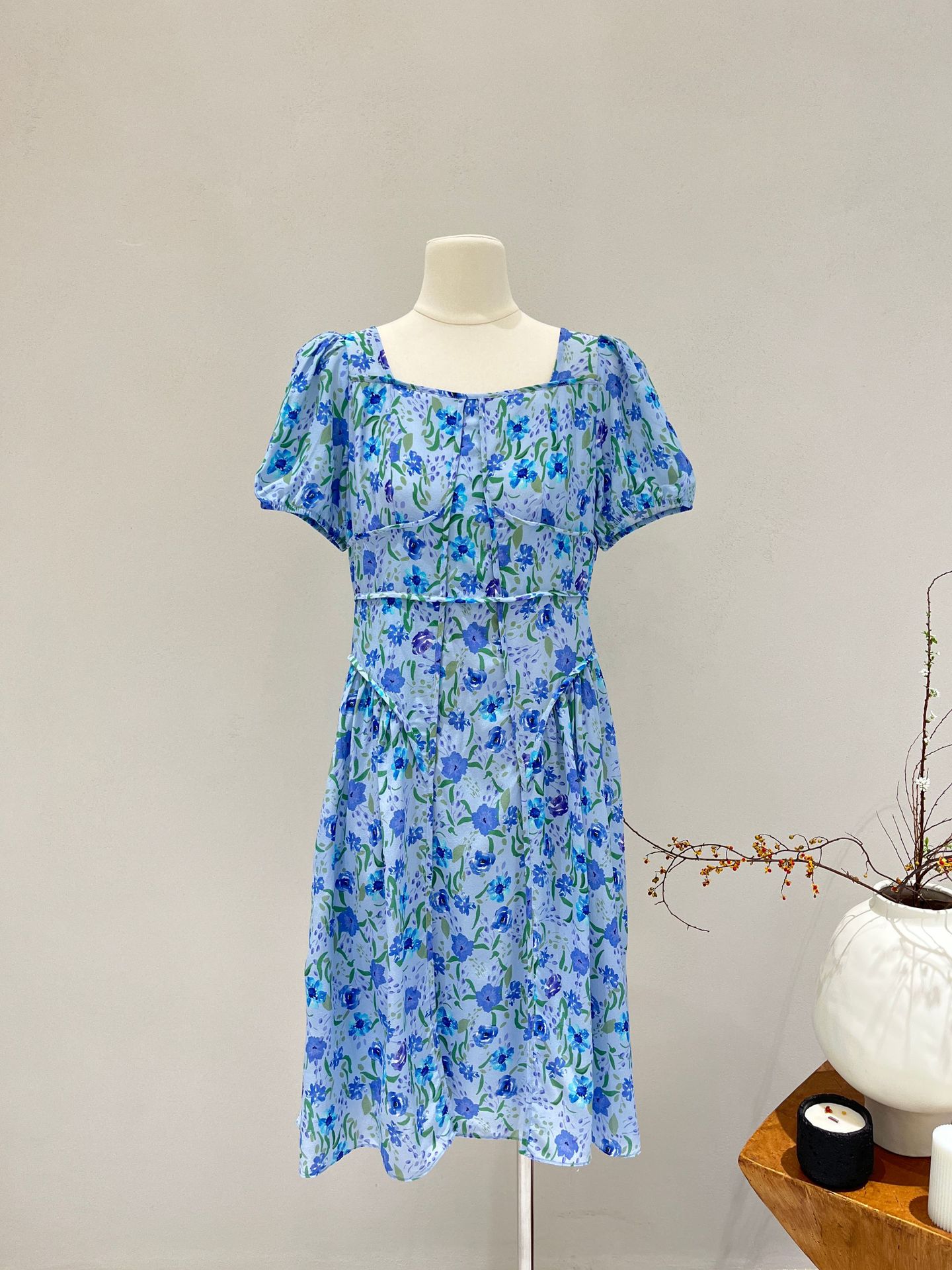 Vestido de seda de manga corta para mujer primavera y verano 2025 nuevo joven estampado cuello cuadrado 100% seda de morera falda