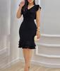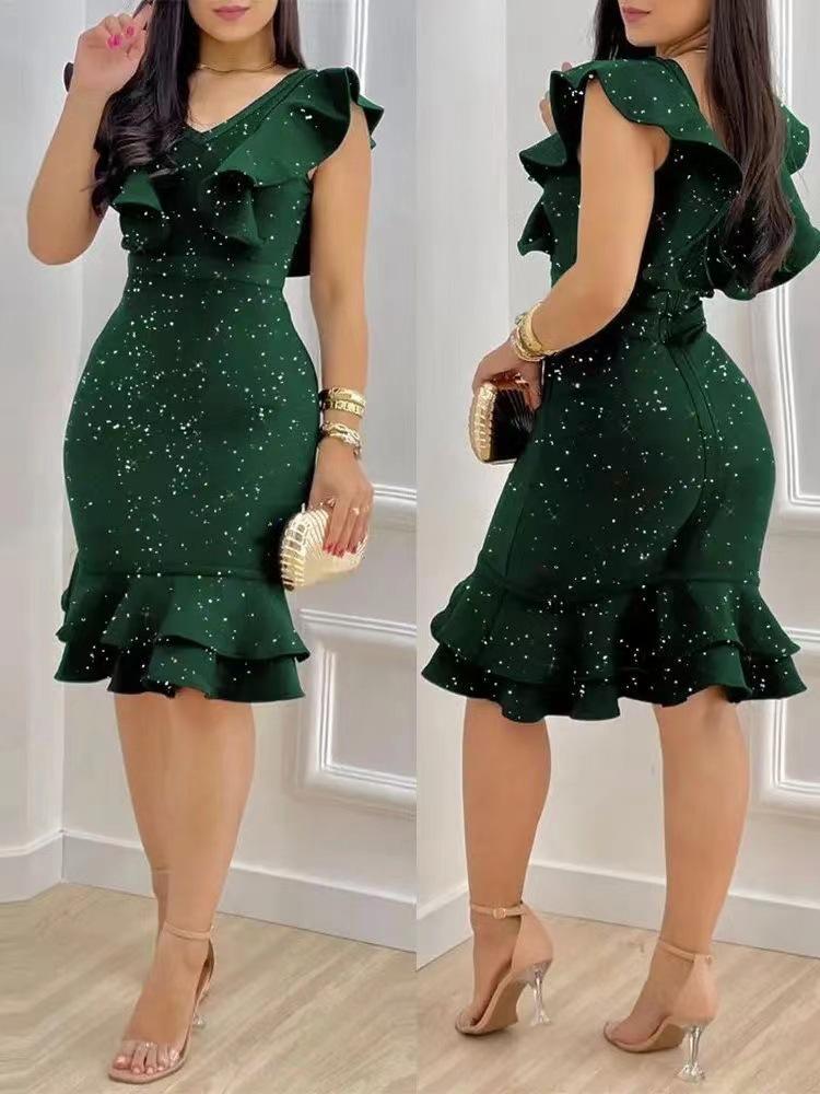 Vestido de Mujer de Nuevo Estilo Transfronterizo Europeo y Americano con Volantes, Elegante y Grácil, Ceñido a la Cintura, Vestido Formal de Corte Entallado