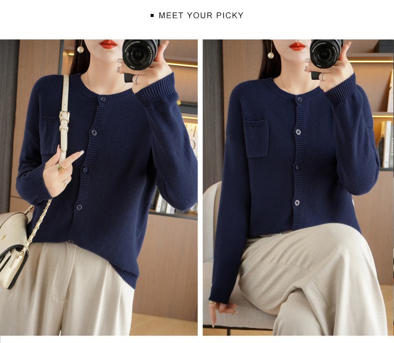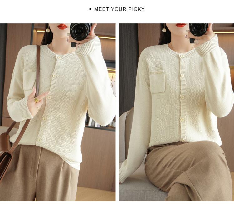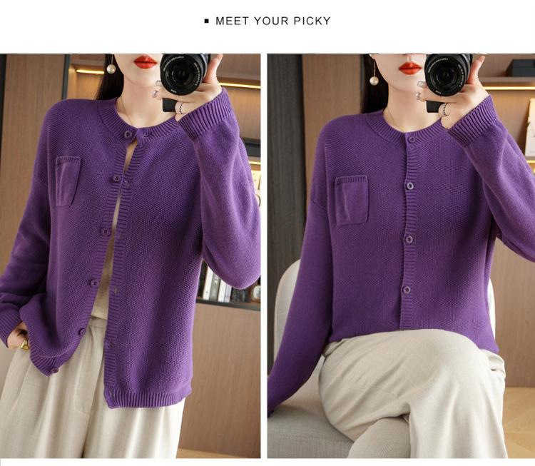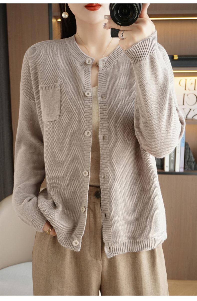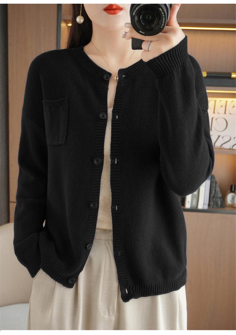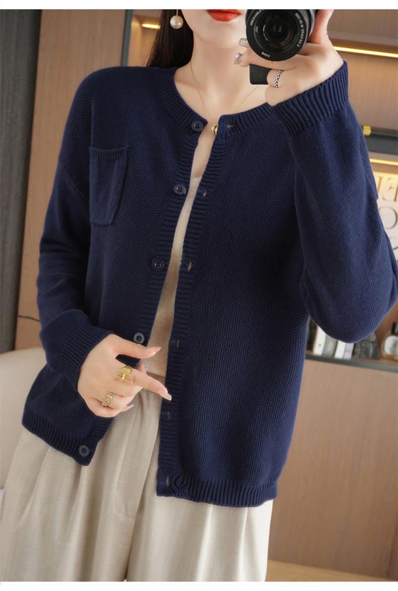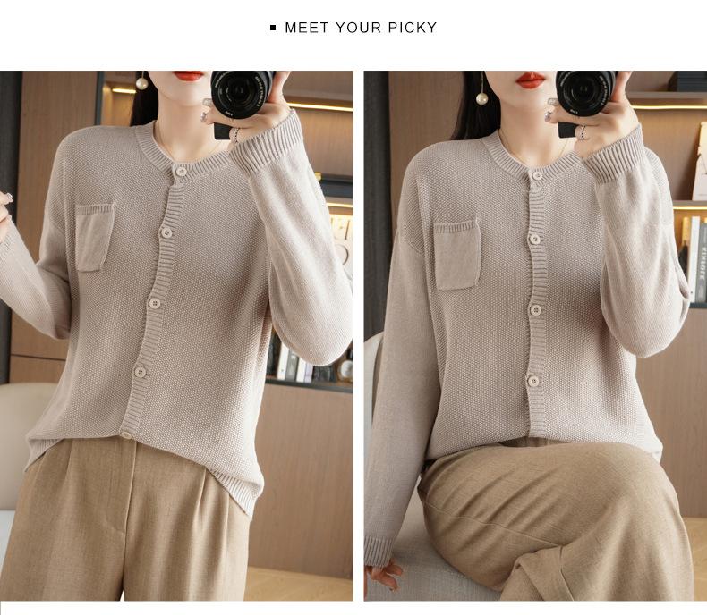 Chaqueta de algodón para mujer, de cuello redondo, sencilla, de color liso y con un solo bolsillo, holgada e informal, con hebilla, para primavera y verano, nueva chaqueta de punto.