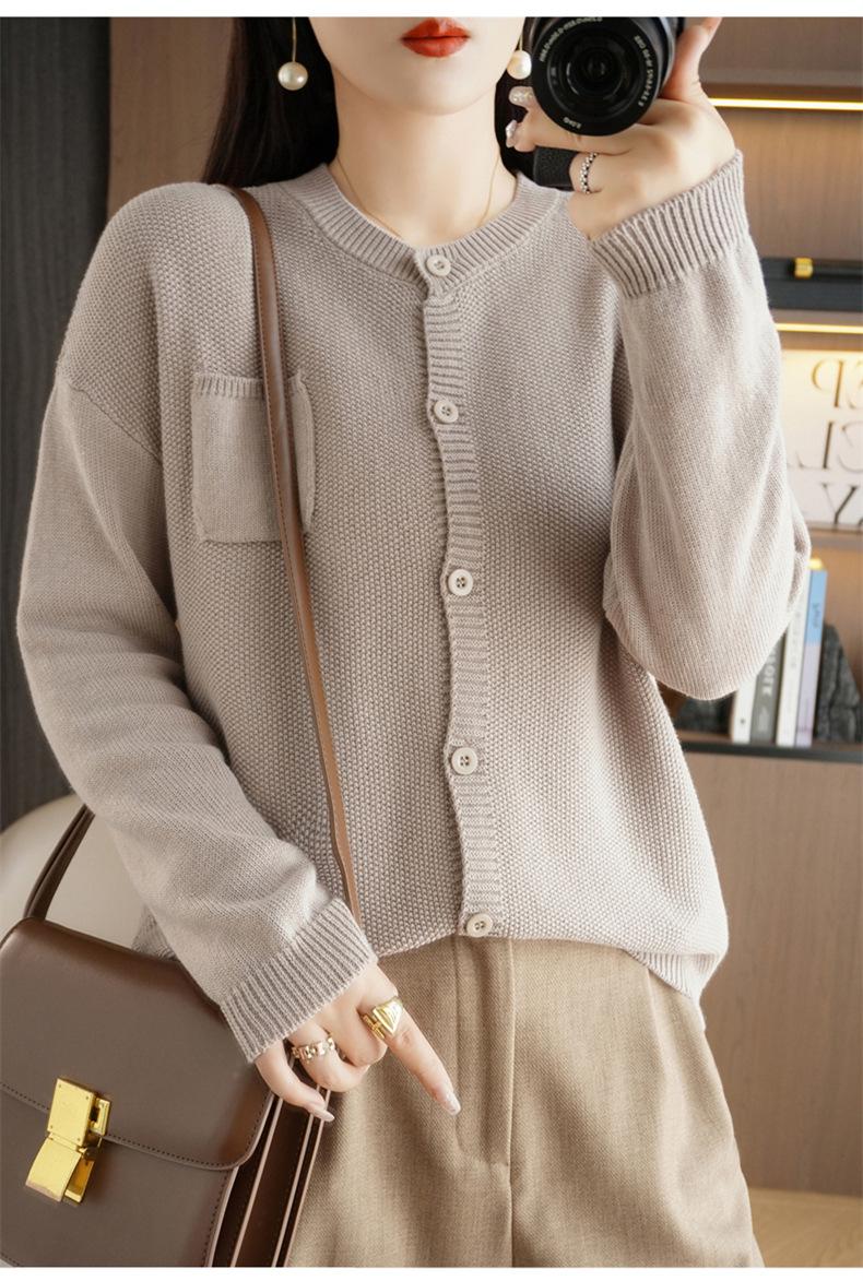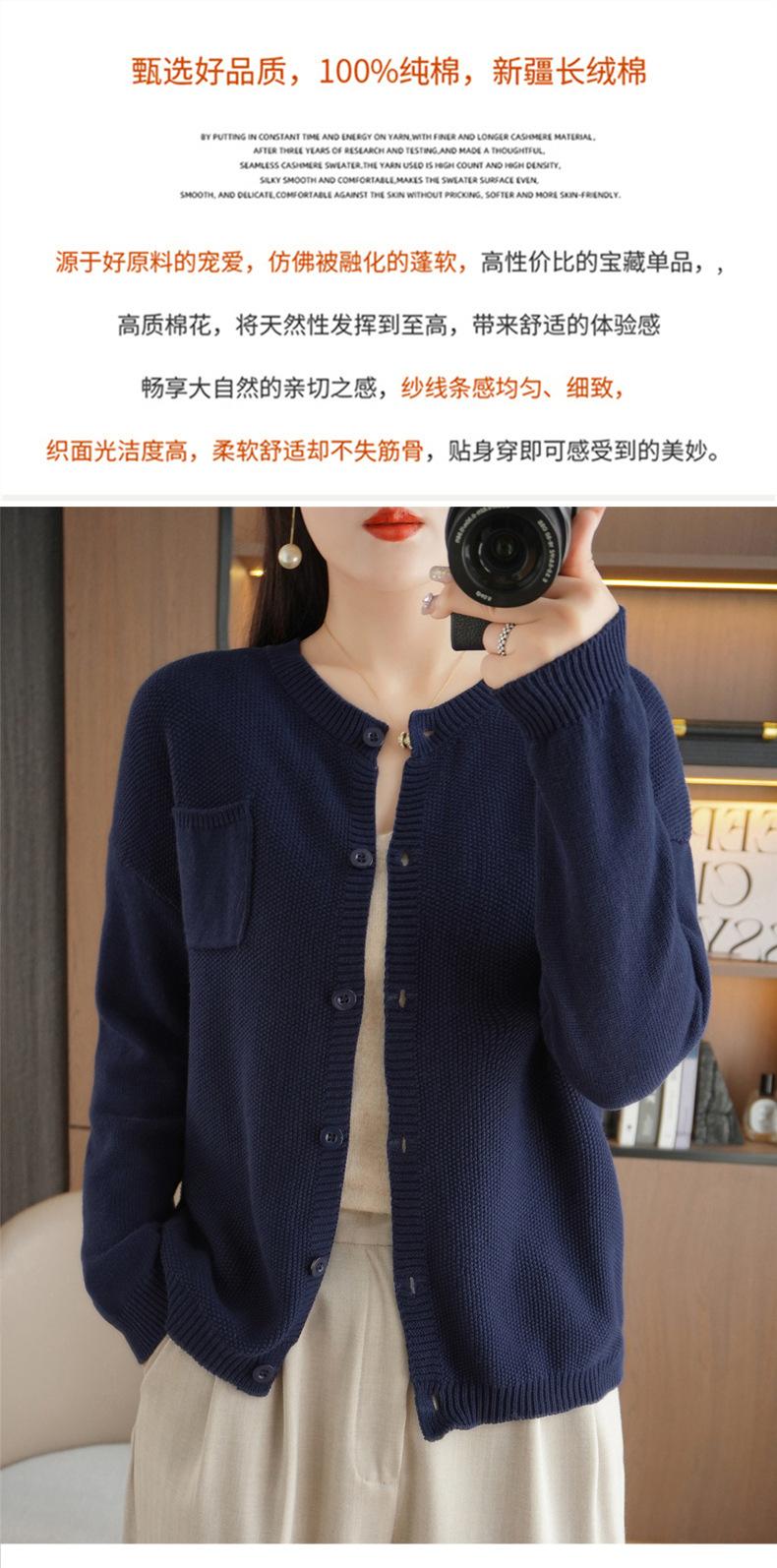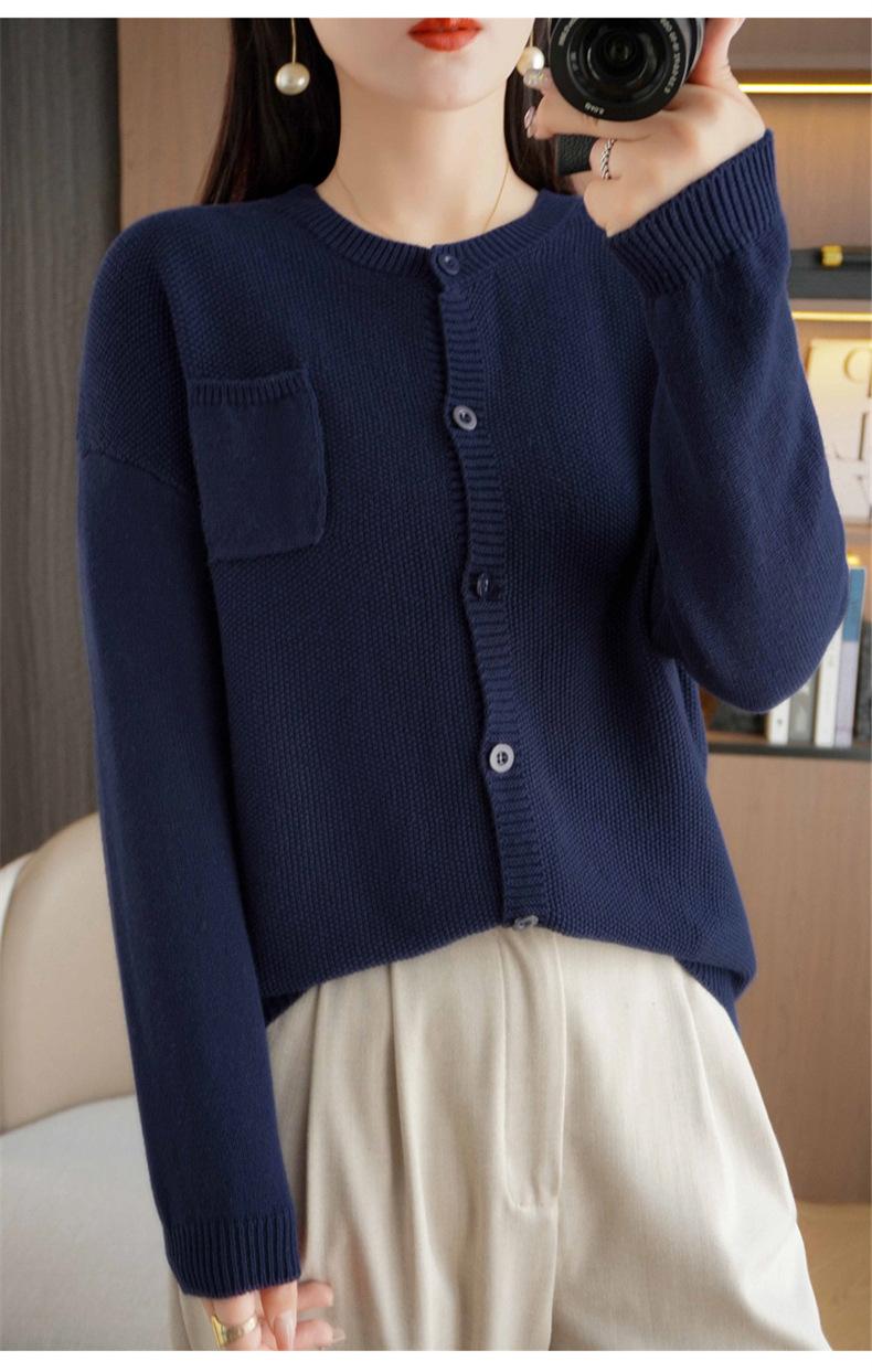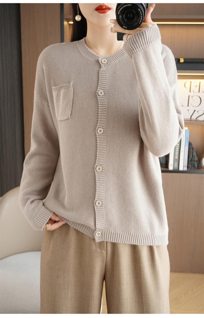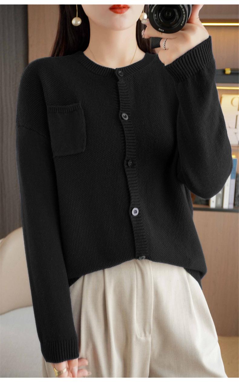 Chaqueta de algodón para mujer, de cuello redondo, sencilla, de color liso y con un solo bolsillo, holgada e informal, con hebilla, para primavera y verano, nueva chaqueta de punto.