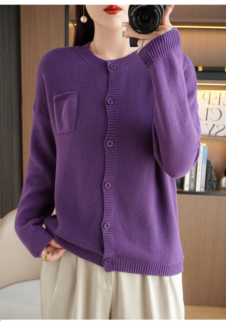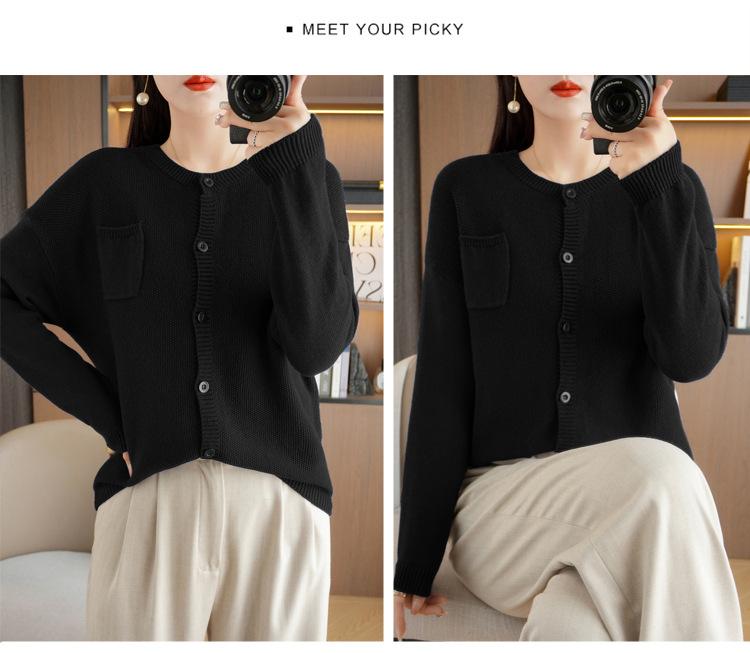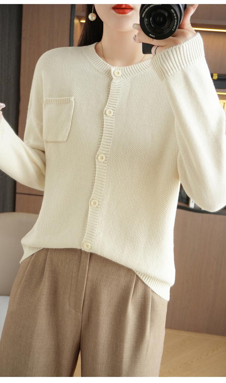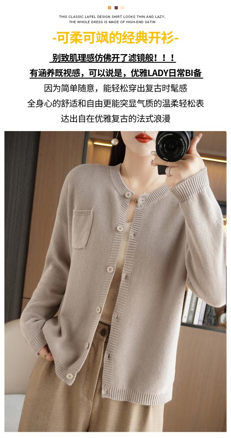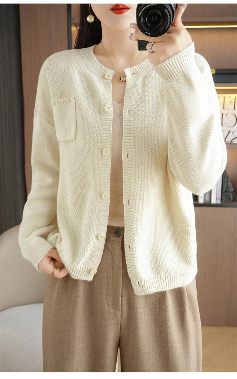 Chaqueta de algodón para mujer, de cuello redondo, sencilla, de color liso y con un solo bolsillo, holgada e informal, con hebilla, para primavera y verano, nueva chaqueta de punto.