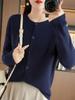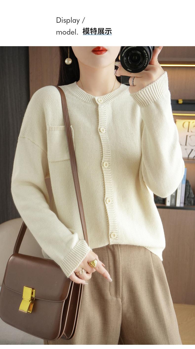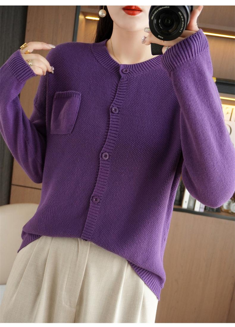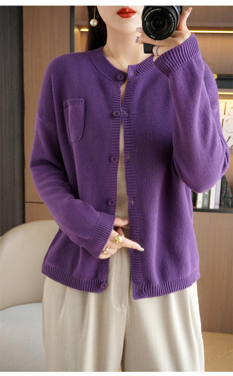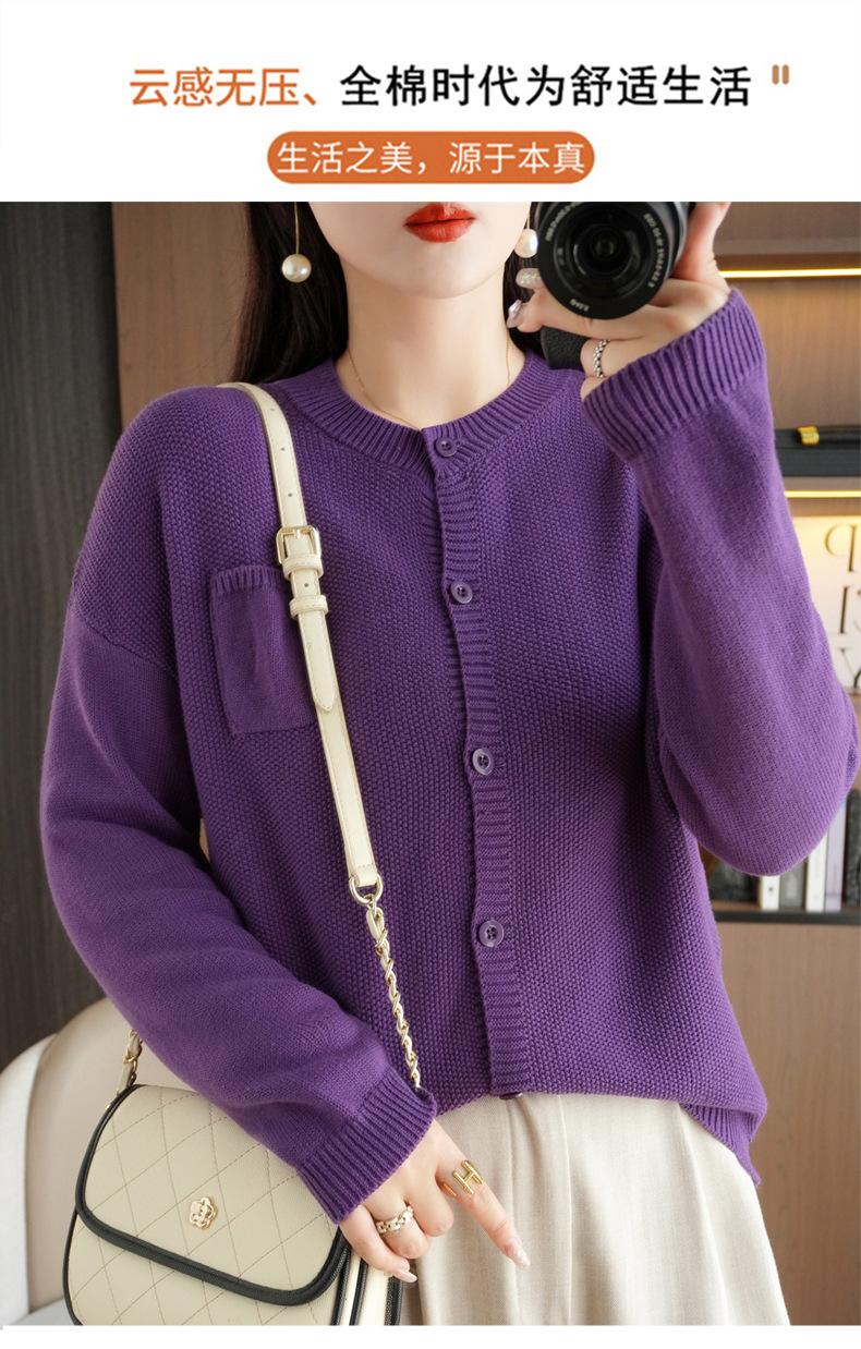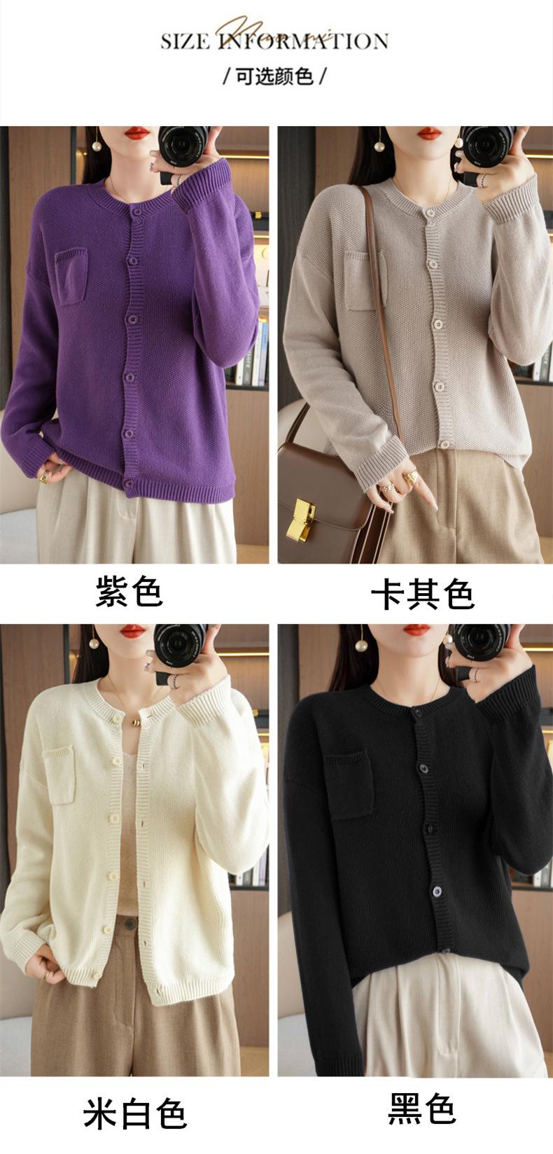 Chaqueta de algodón para mujer, de cuello redondo, sencilla, de color liso y con un solo bolsillo, holgada e informal, con hebilla, para primavera y verano, nueva chaqueta de punto.