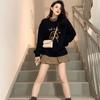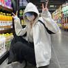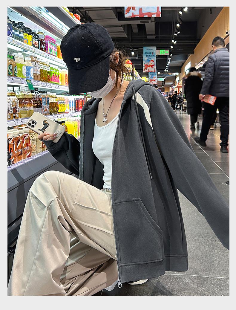 Suéter con capucha estilo retro americano, moderno y urbano, chaqueta deportiva, cárdigan de otoño e invierno para mujer, 2025