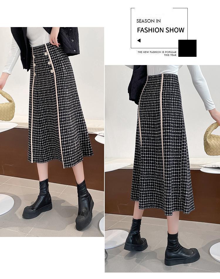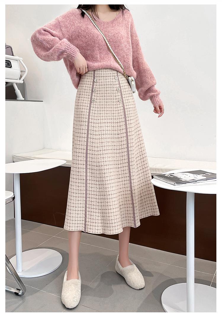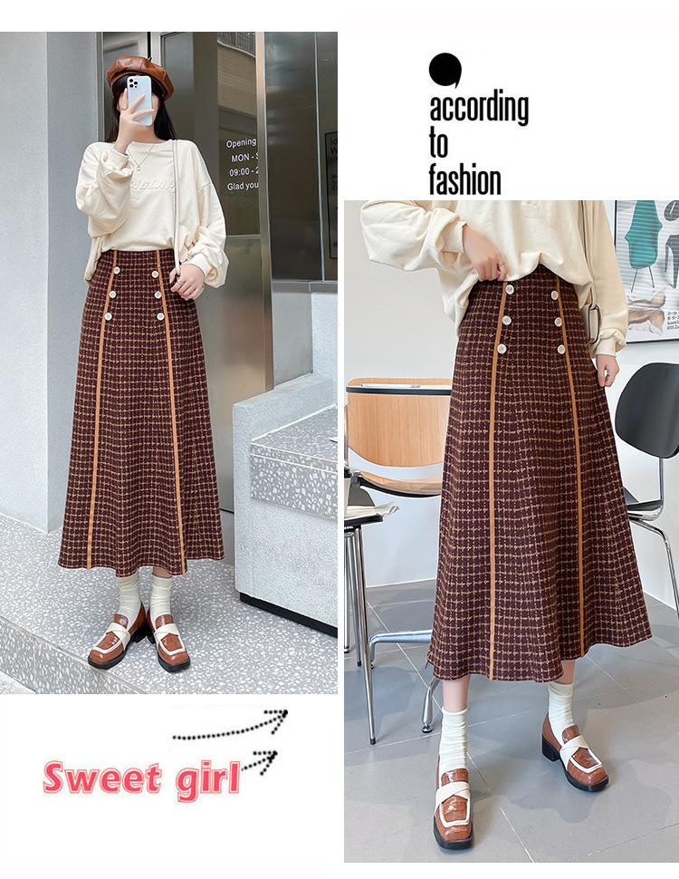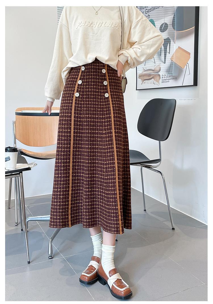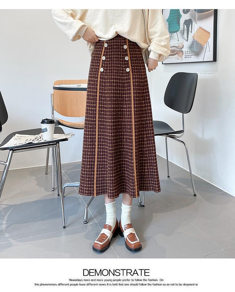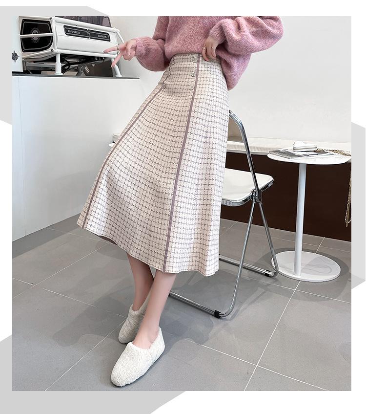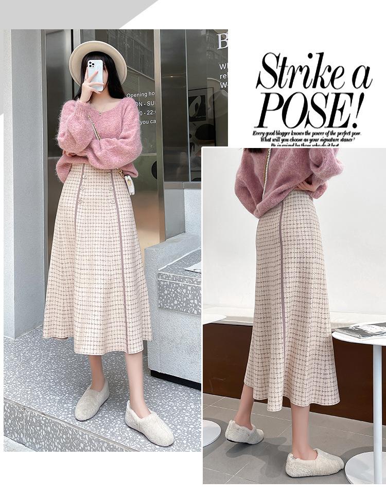 Vestido de otoño 2024, estilo coreano, retro, a cuadros, de punto, línea A, para mujer, cintura alta, longitud media, elegante, falda grande con vuelo