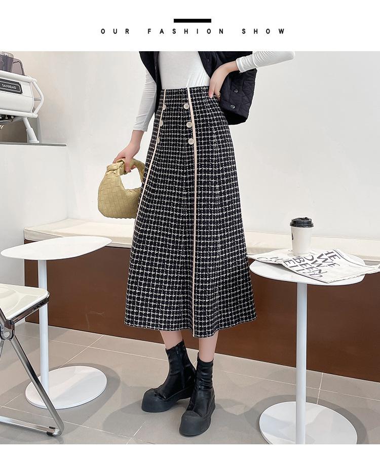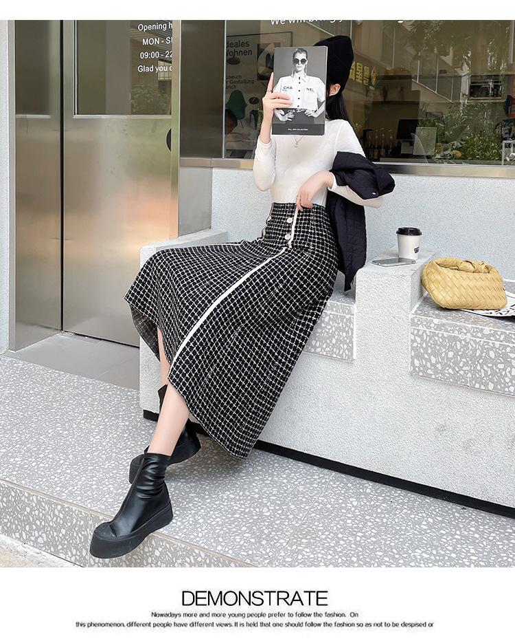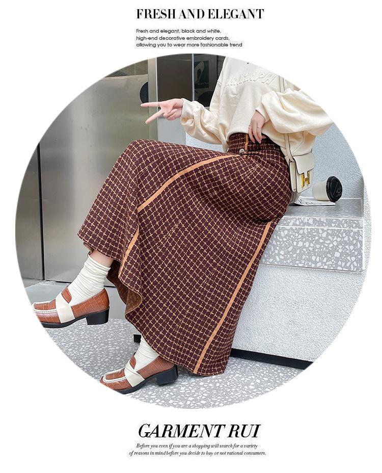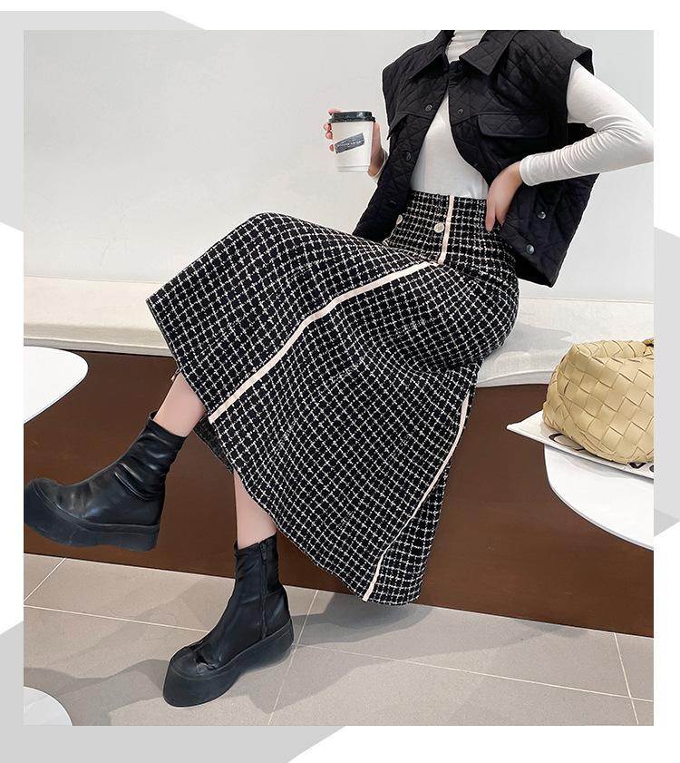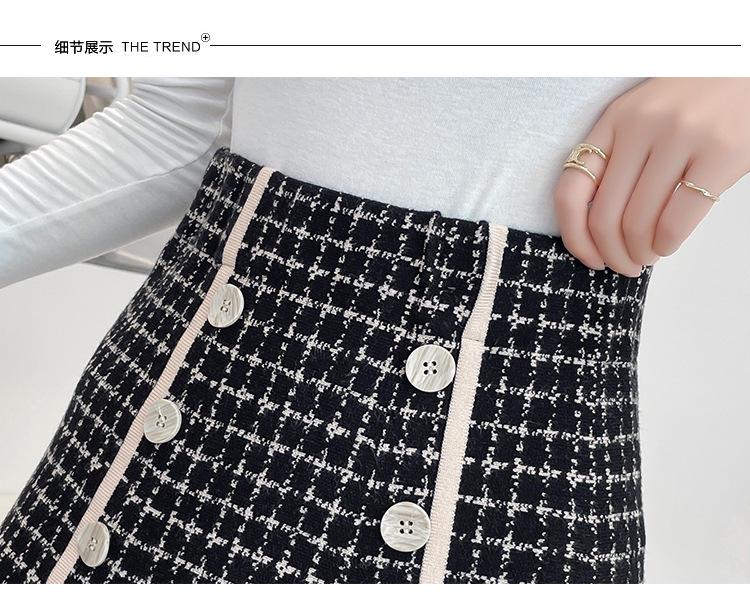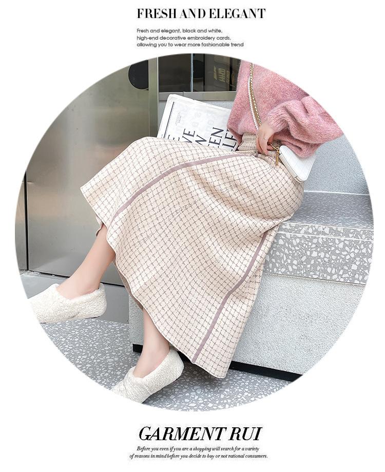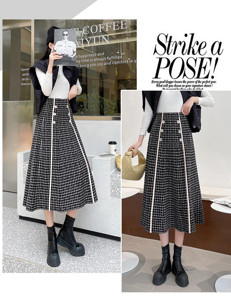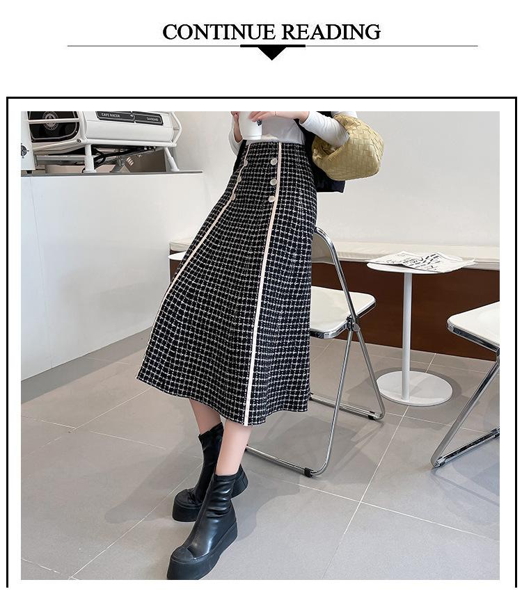 Vestido de otoño 2024, estilo coreano, retro, a cuadros, de punto, línea A, para mujer, cintura alta, longitud media, elegante, falda grande con vuelo