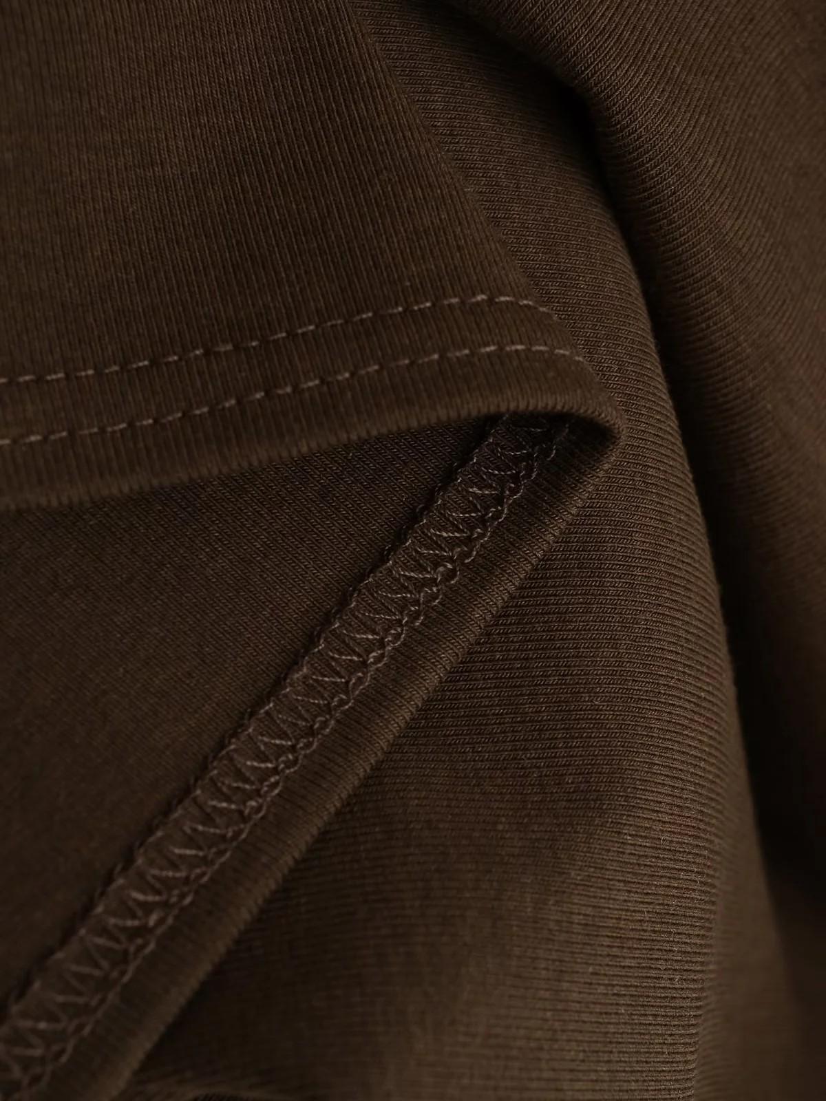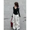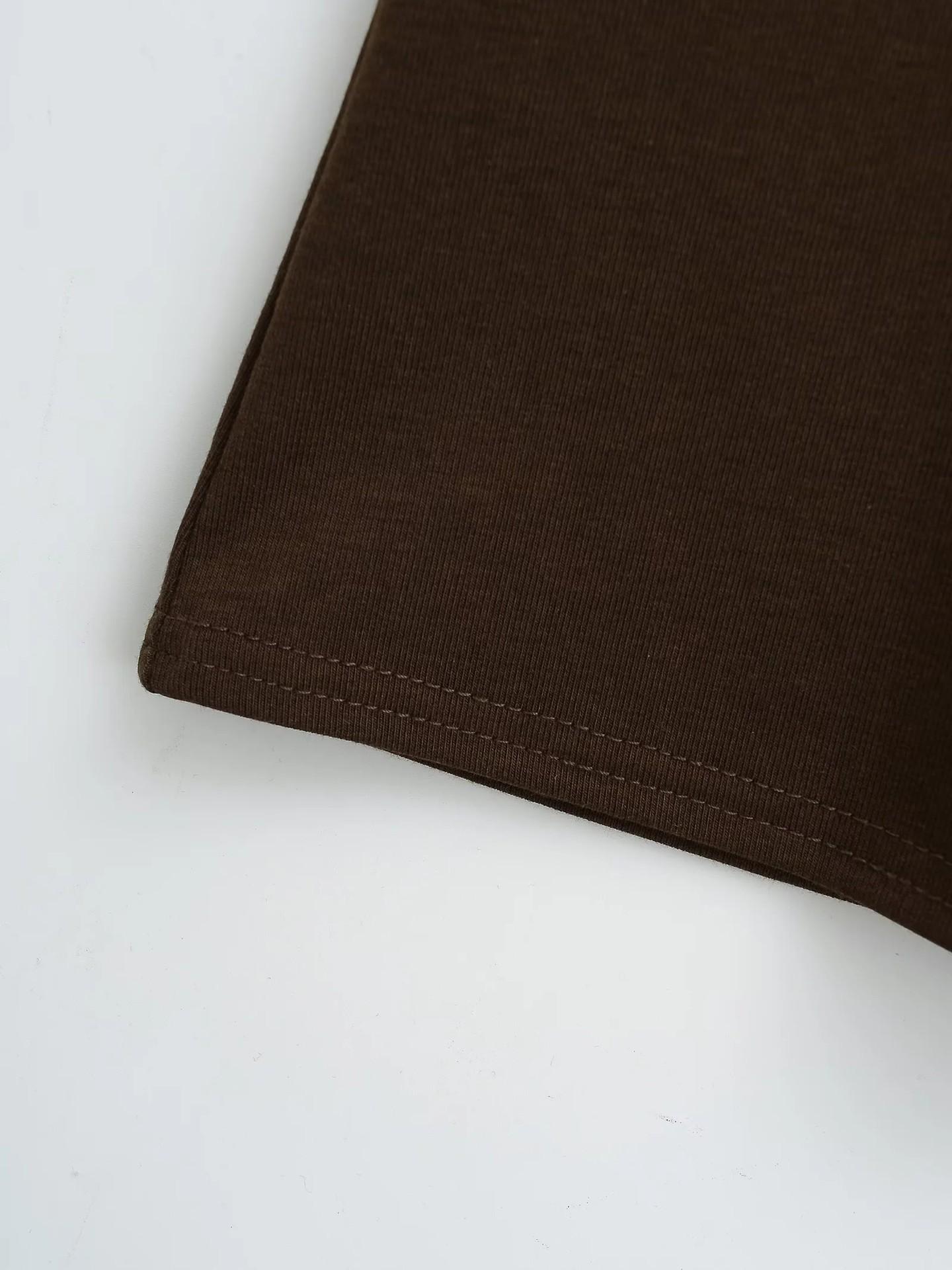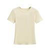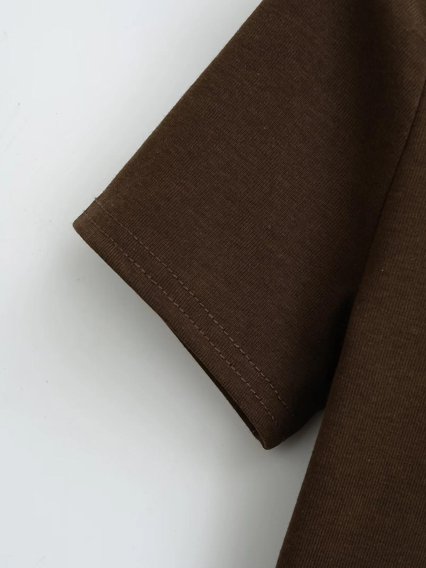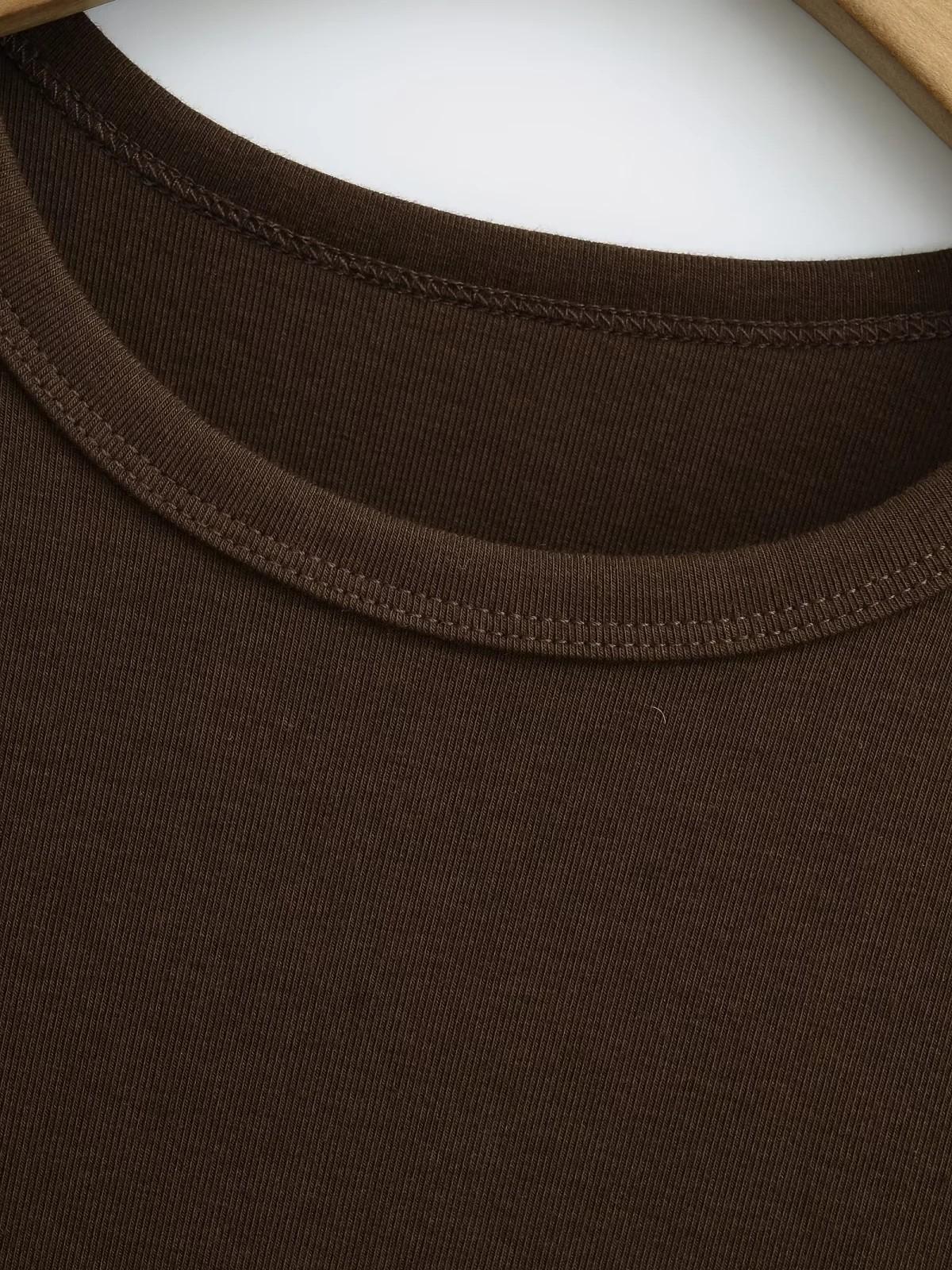 Camiseta básica americana de manga corta con cuello redondo pequeño, corte entallado, cintura ajustada y hombros descubiertos, primavera/verano 2025.