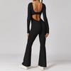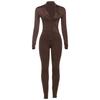 Pantalones deportivos casuales de color sólido de primavera 2025 para mujer, sexys y ajustados, con cuello en V y manga larga, estilo europeo y americano transfronterizo