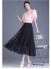 Falda larga de malla con vuelo, primavera 2024, cintura elástica, sencilla, informal, a la moda, larga, elegante, plisada