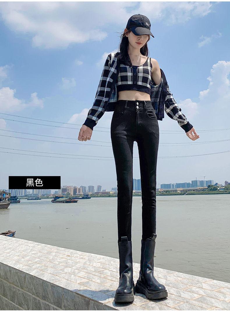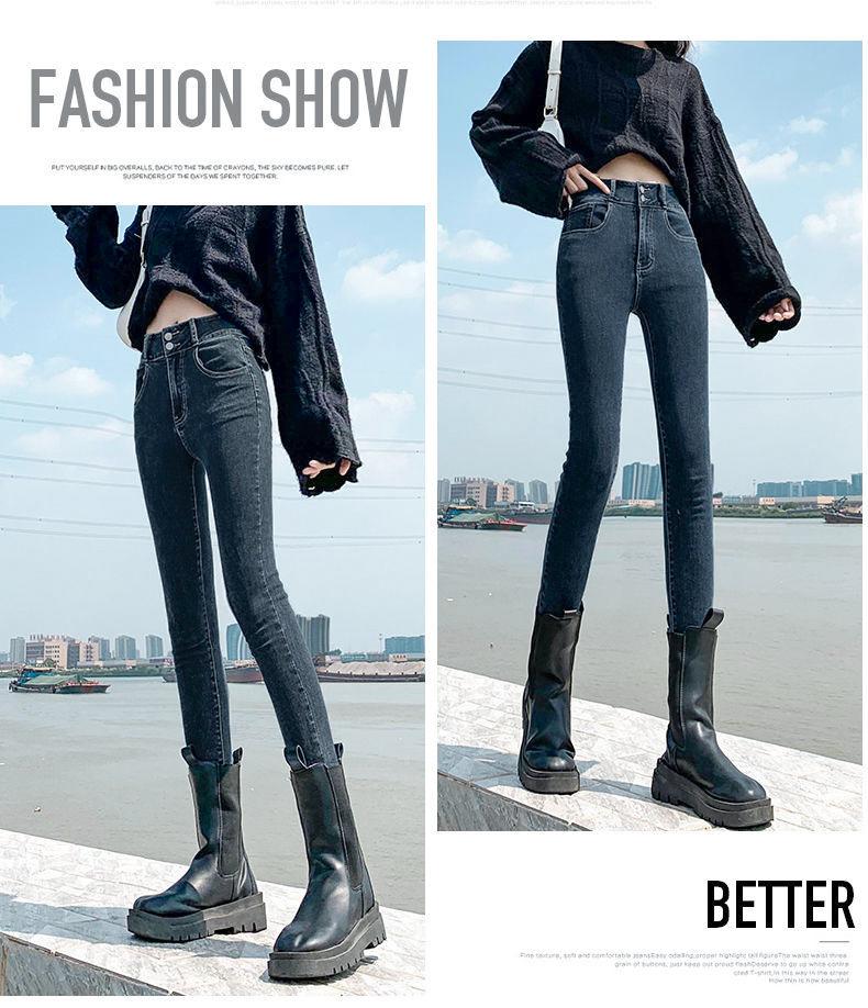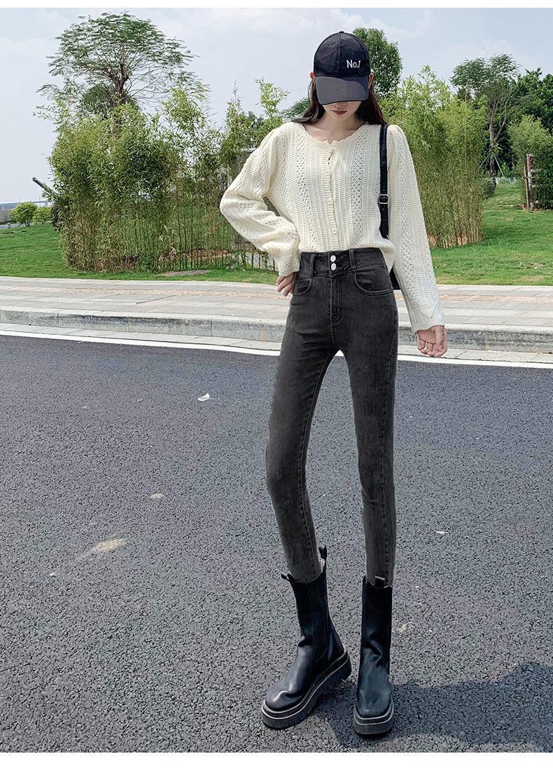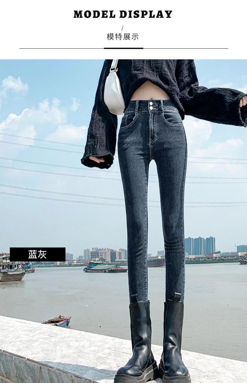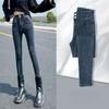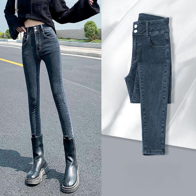 Jeans Azul Gris para Mujer 2025 Cintura Alta Primavera y Otoño Ajustados Adelgazantes Pantalones Lápiz Ajustados Elásticos para Verano