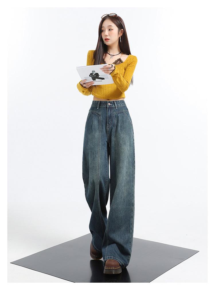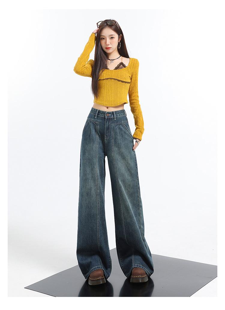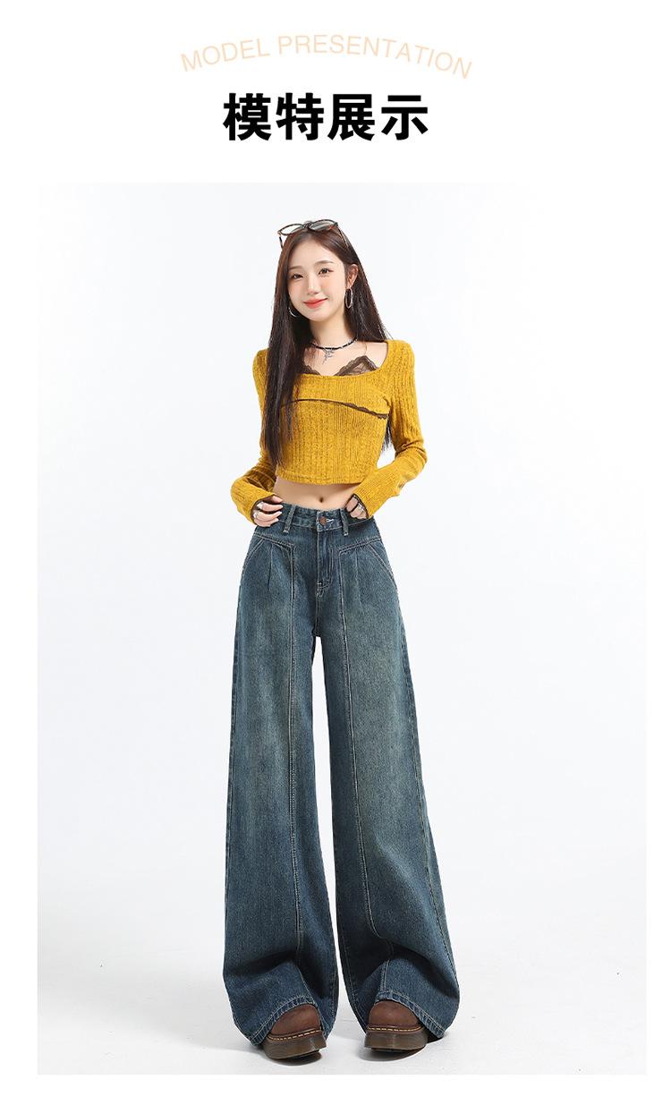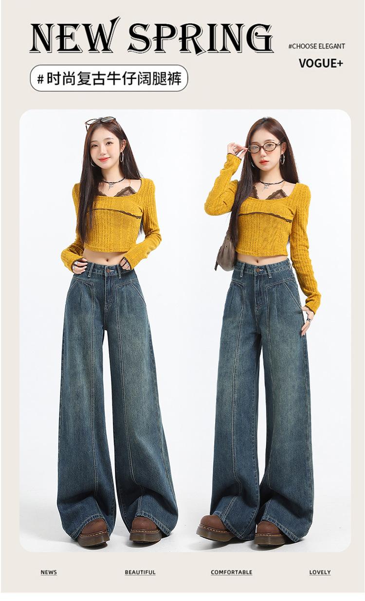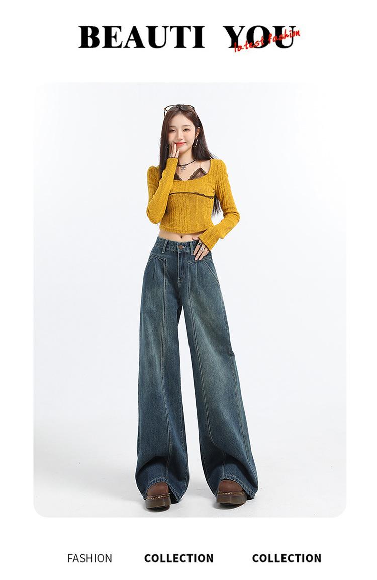 7300# Vaqueros retro de pierna ancha para mujer, nuevos, de cintura alta, adelgazantes, con cintura baja, sueltos, con forma de pera.