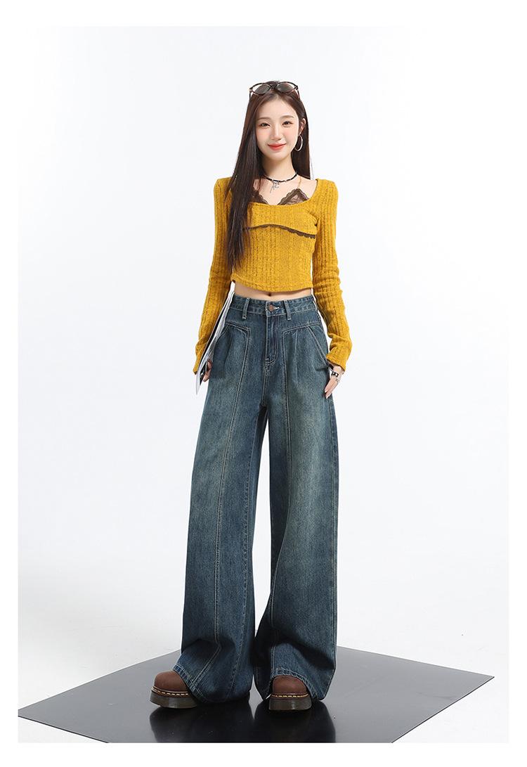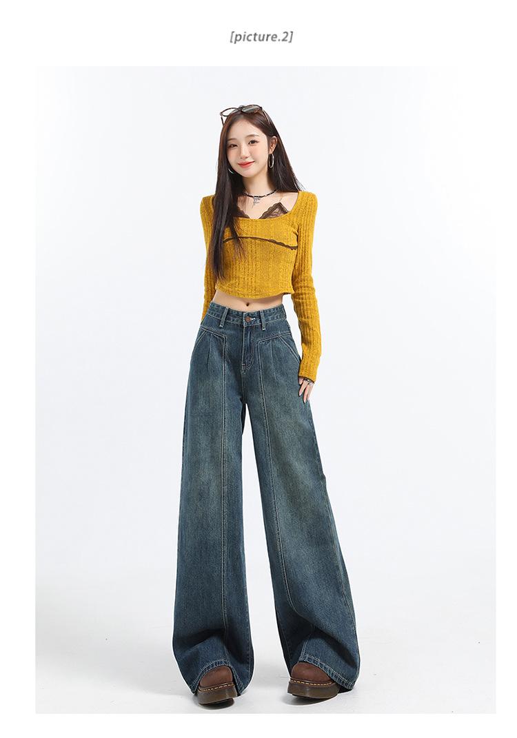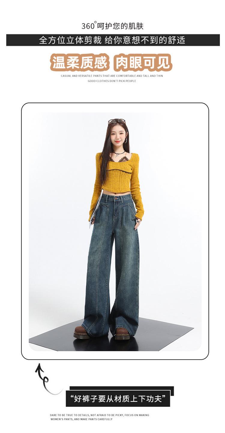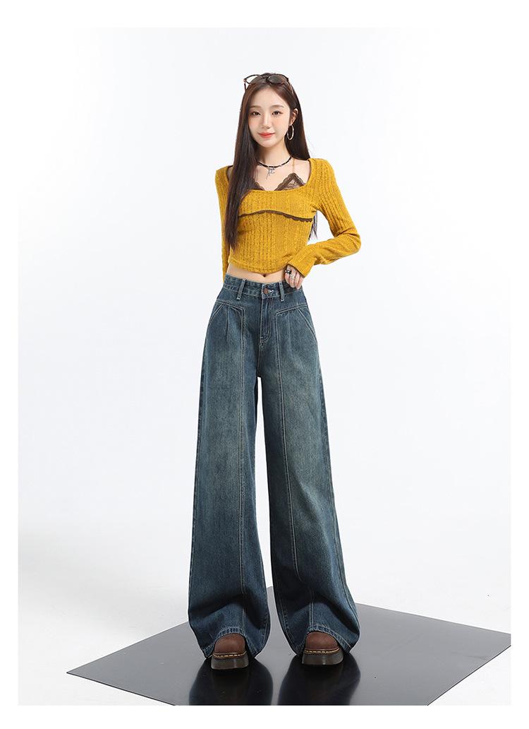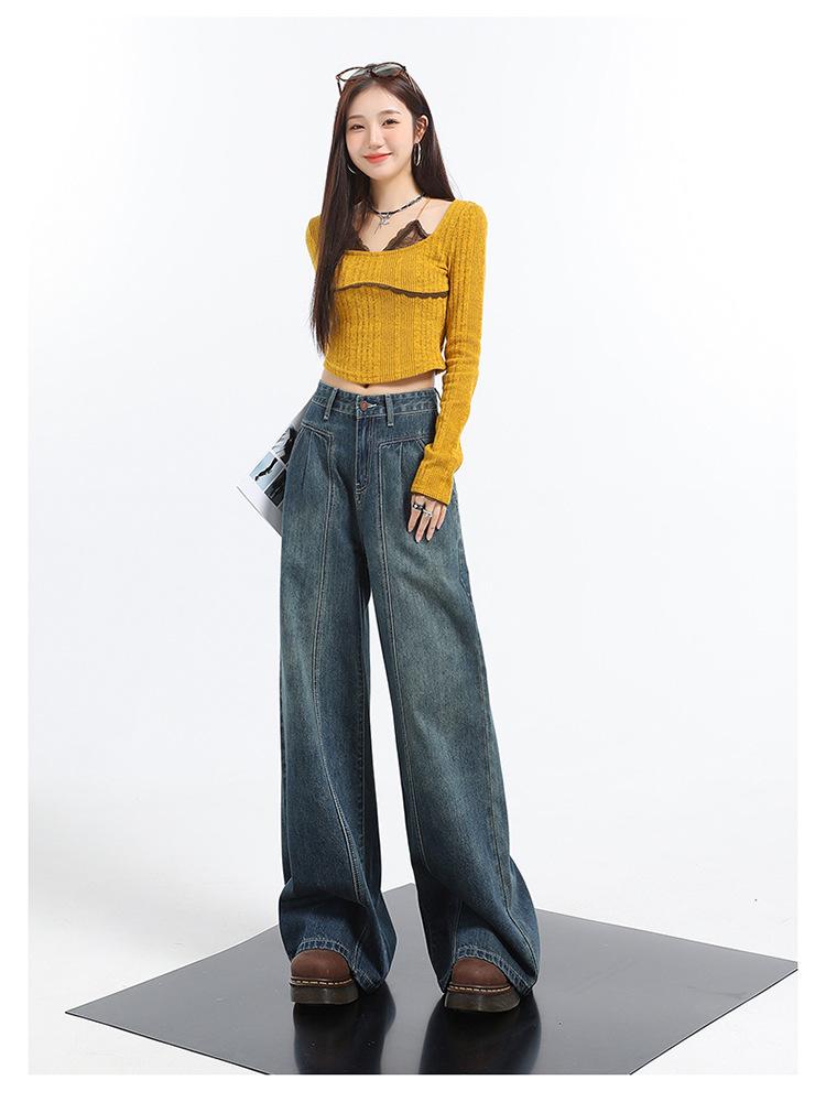 7300# Vaqueros retro de pierna ancha para mujer, nuevos, de cintura alta, adelgazantes, con cintura baja, sueltos, con forma de pera.