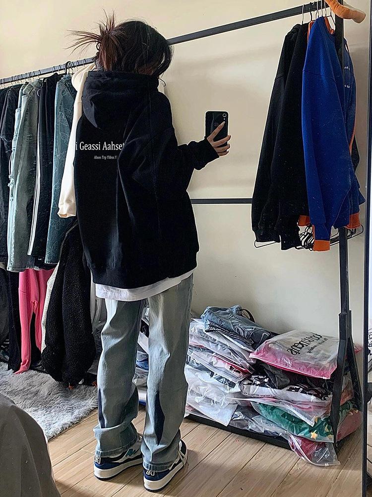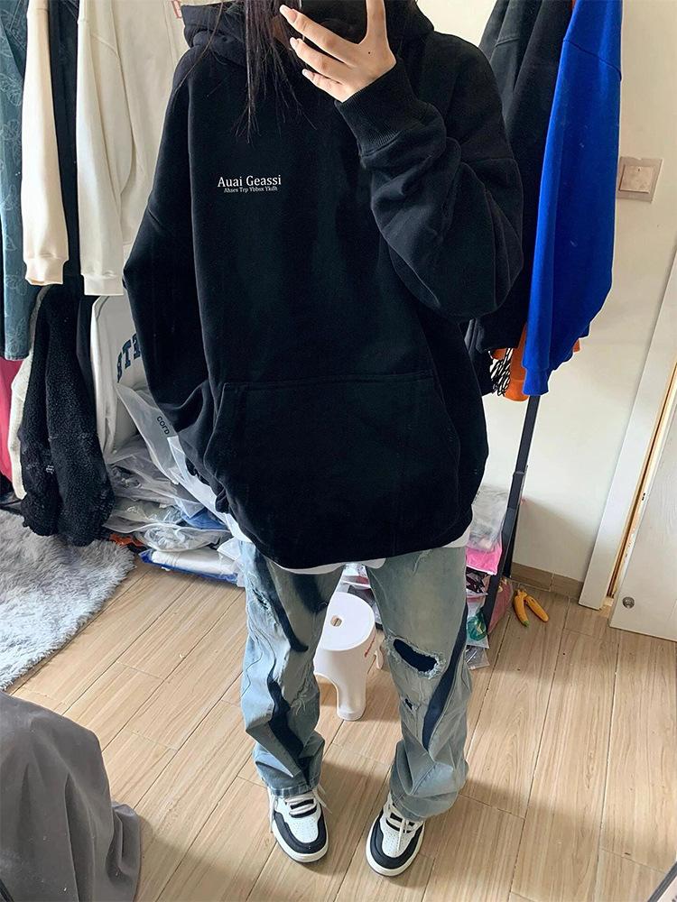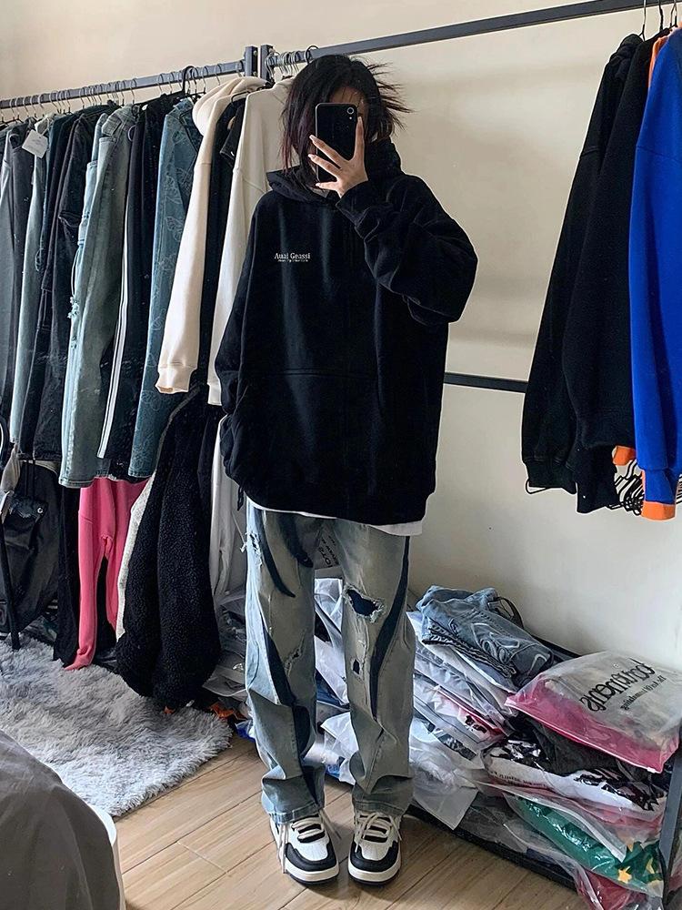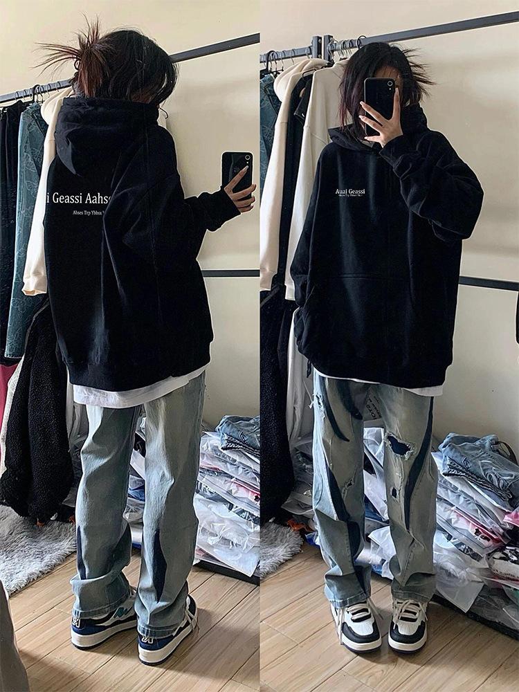 Sudadera con capucha vintage High Street con forro polar para mujer Otoño e Invierno 2025 Nuevo Abrigo de marca de moda holgado y perezoso oversize