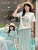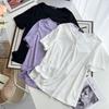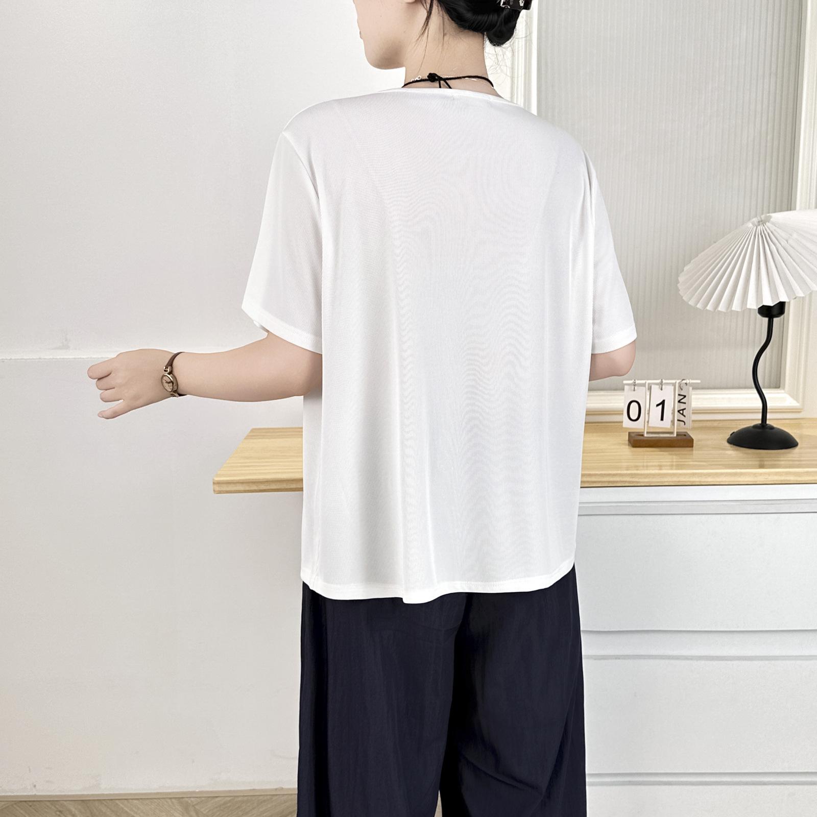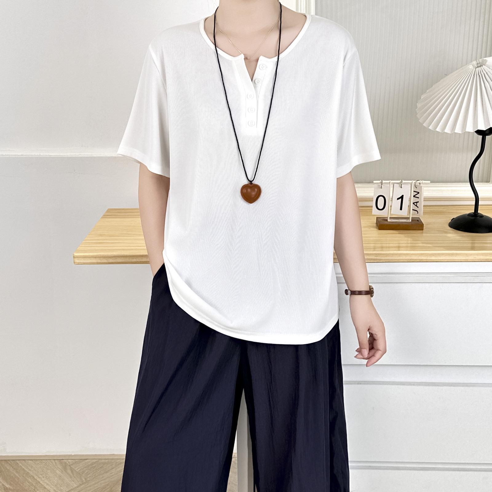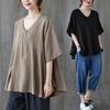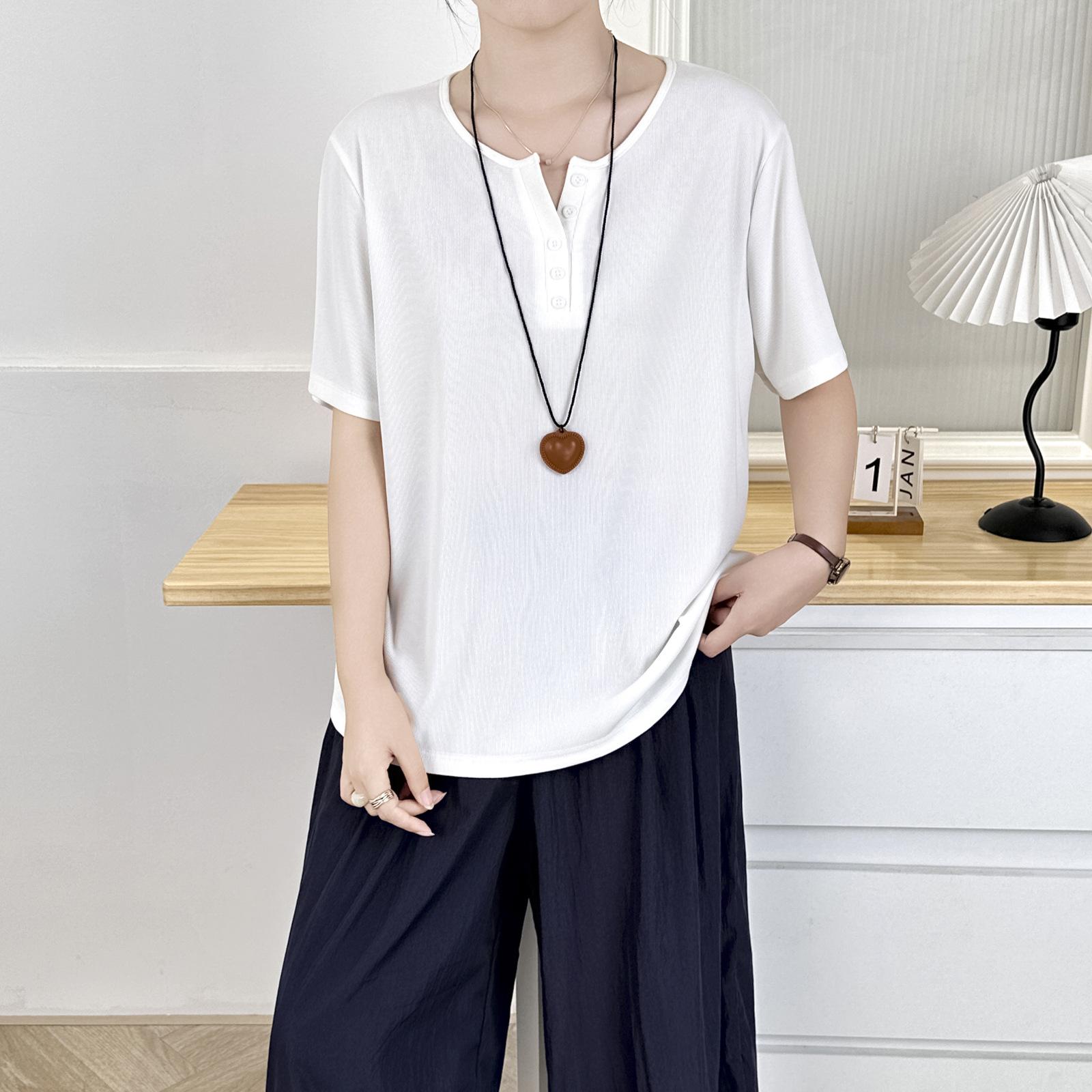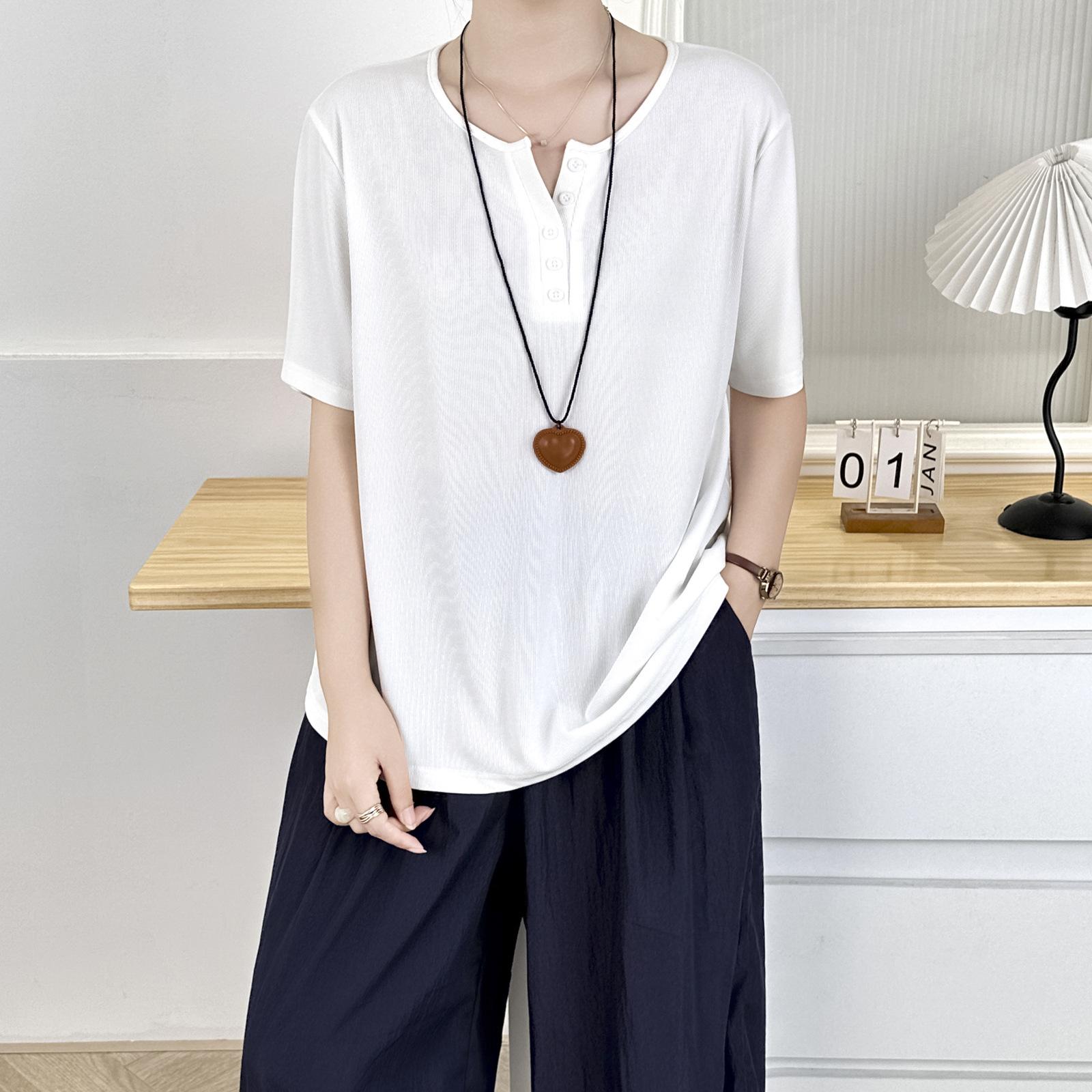 Nueva Camiseta Casual de Verano para Mujer de Talla Grande 100kg Gorda mm Simple Versátil Color Puro Cuello en V Pequeño Manga Corta 3510