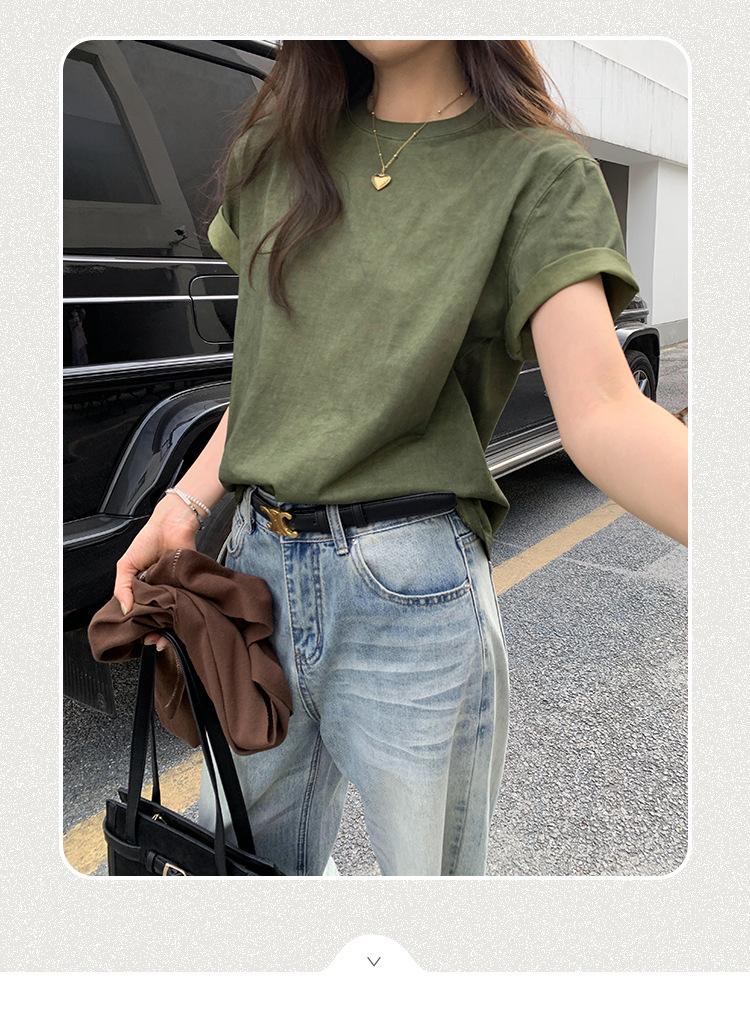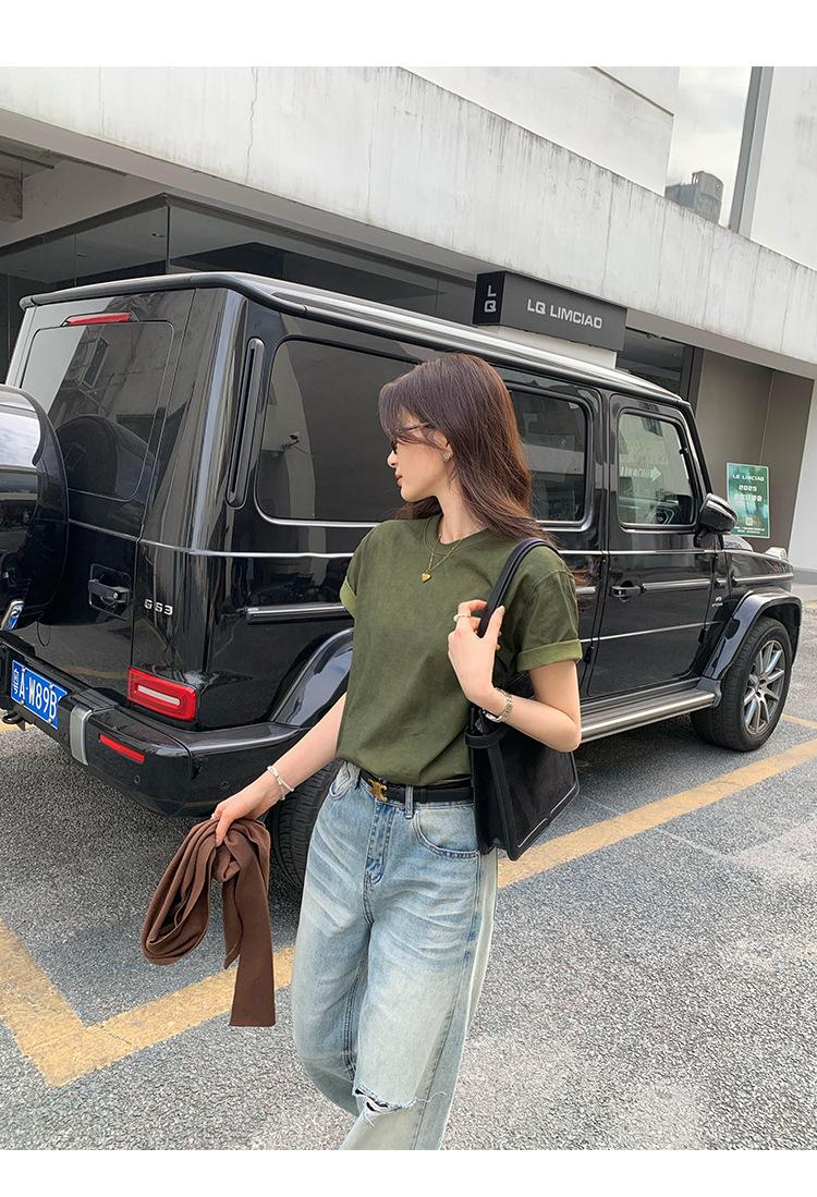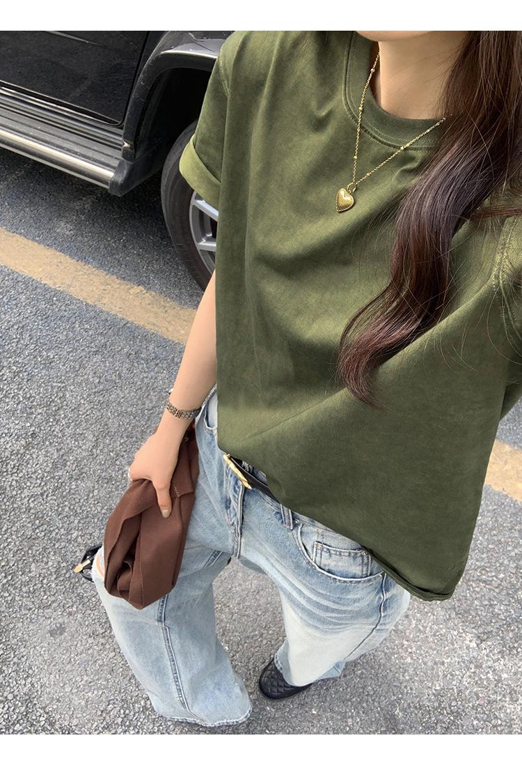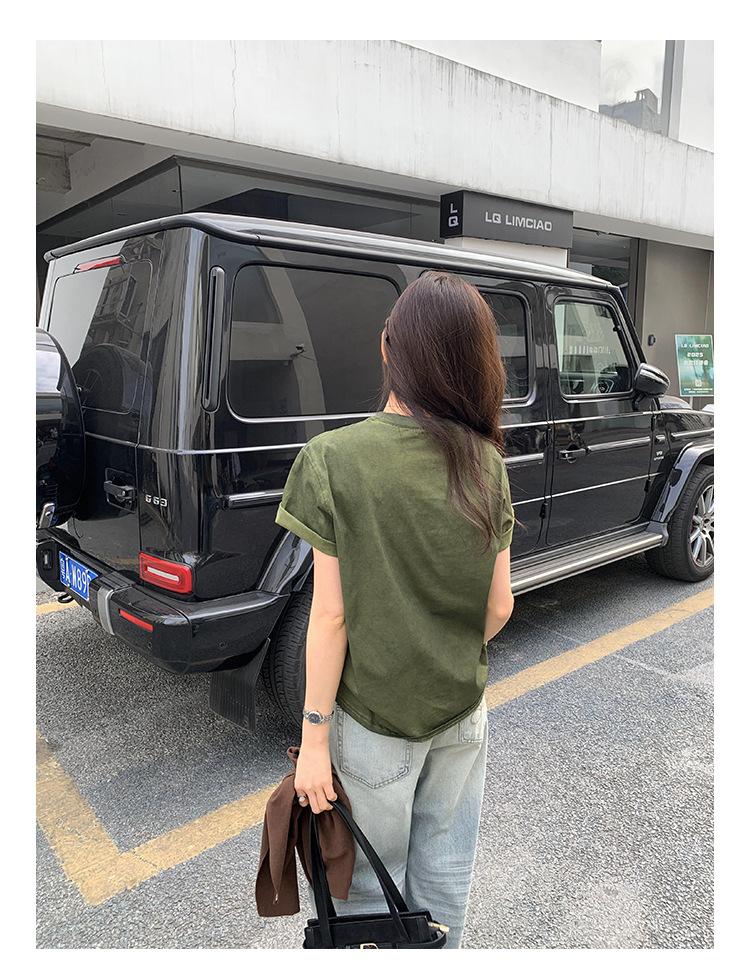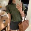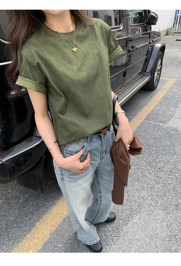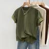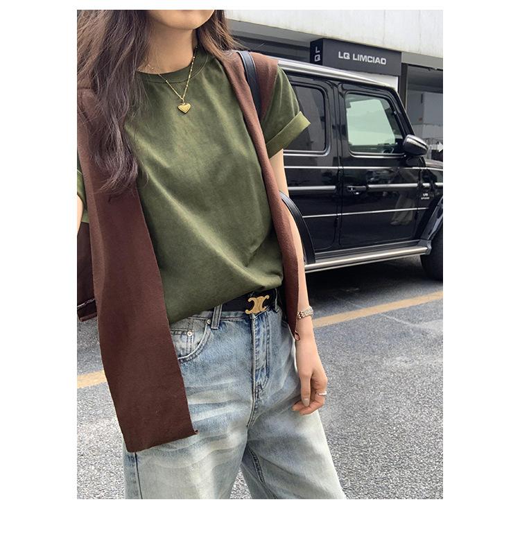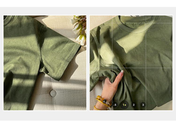 Camiseta Holgada de Manga Corta Verde Ejército Europeo Transfronterizo para Mujer Verano 2025 Nuevo Diseño Nicho Top Retro