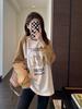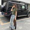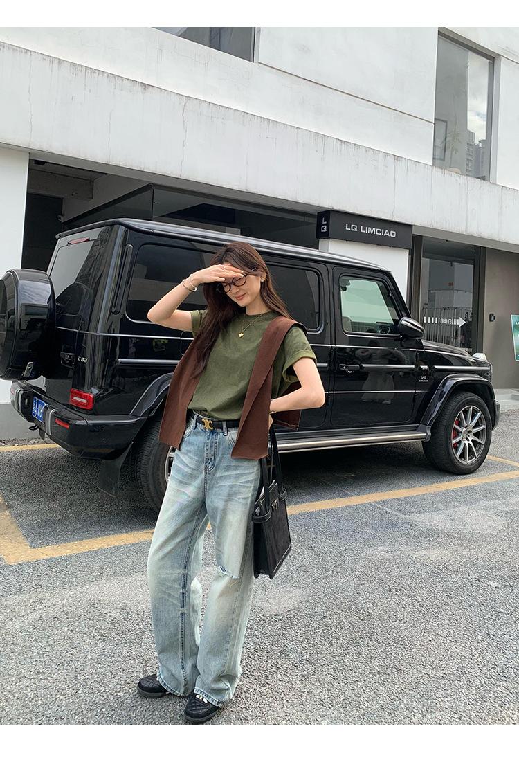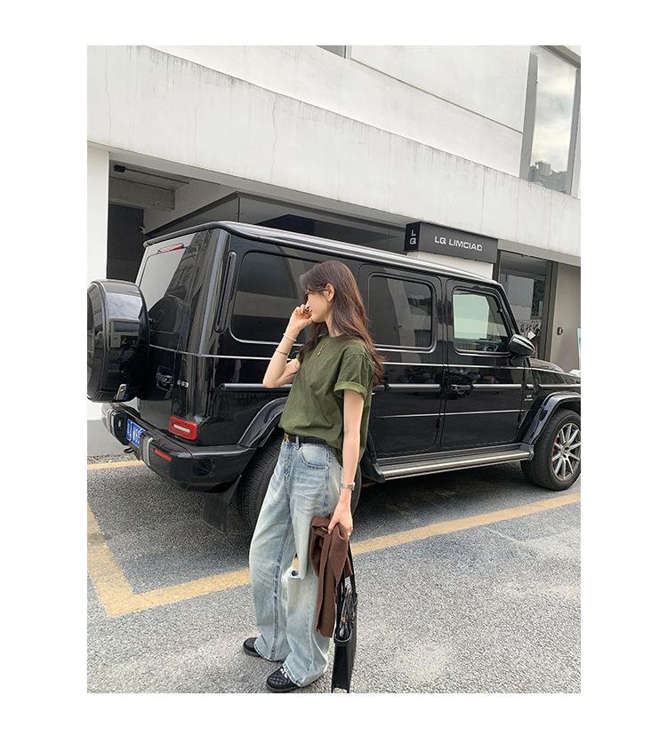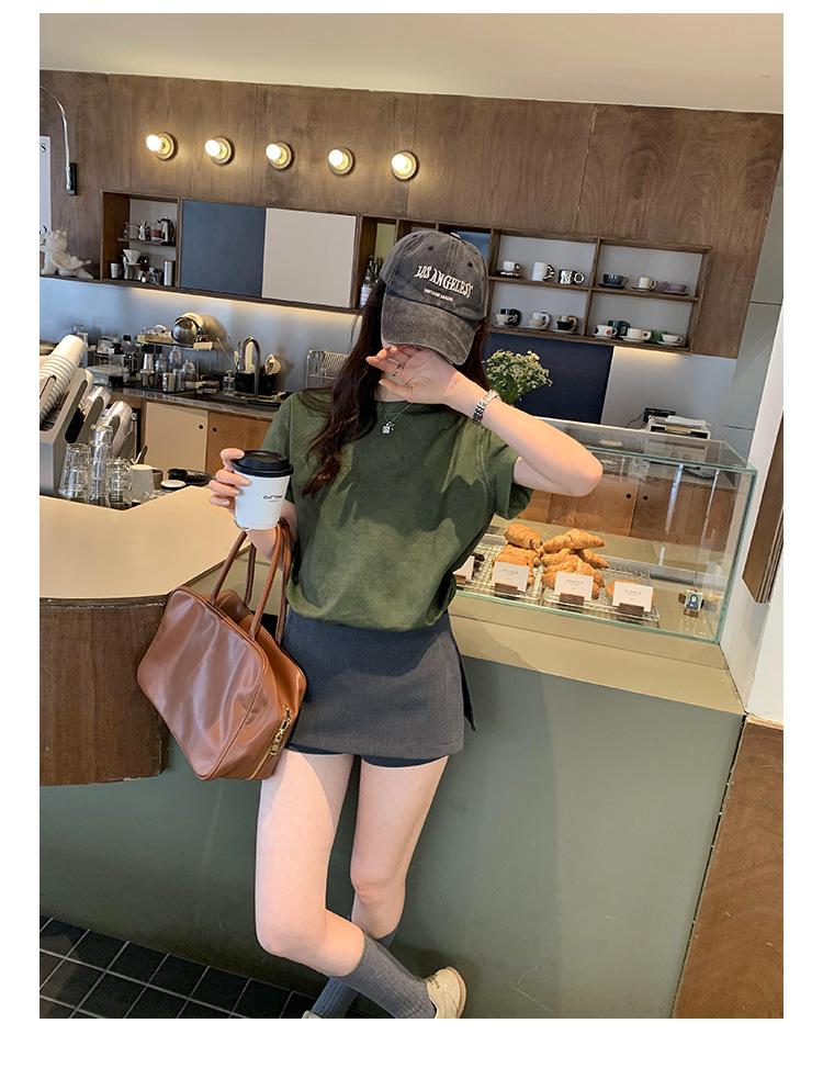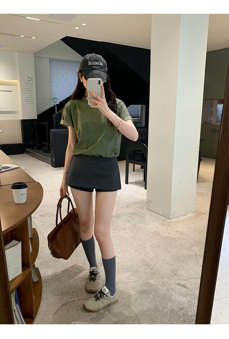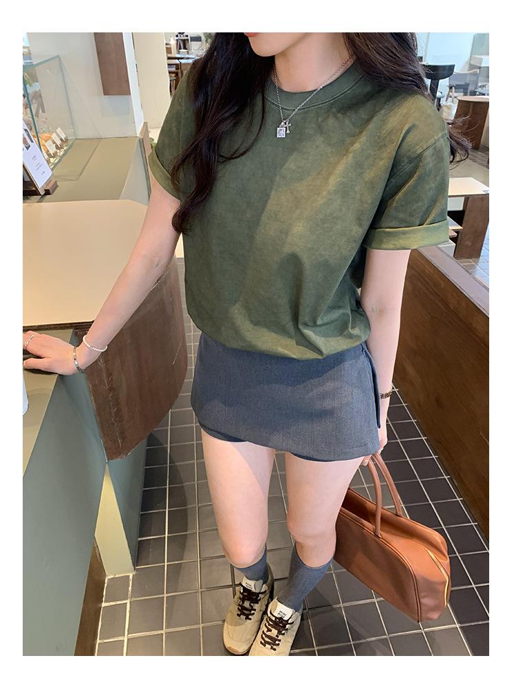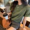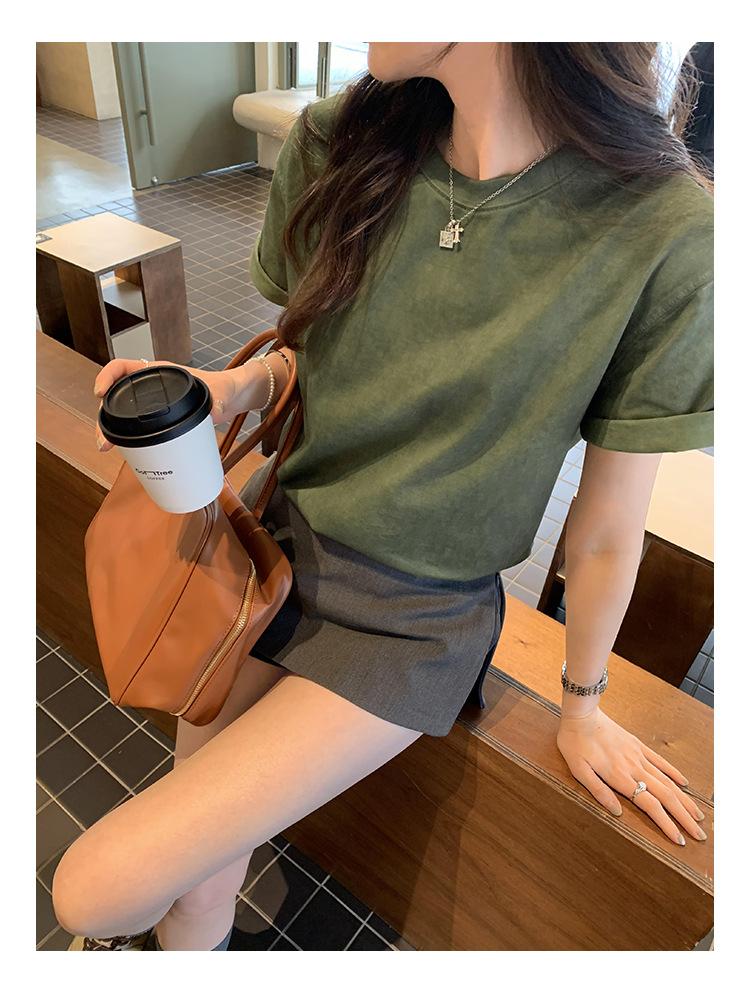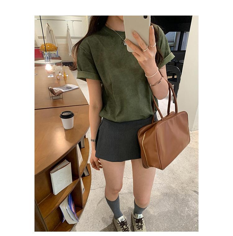 Camiseta Holgada de Manga Corta Verde Ejército Europeo Transfronterizo para Mujer Verano 2025 Nuevo Diseño Nicho Top Retro