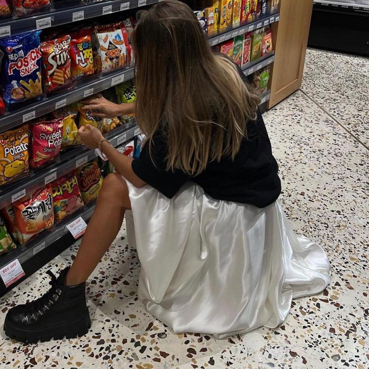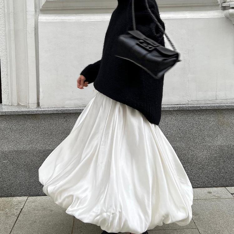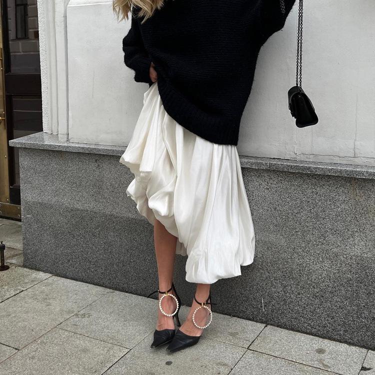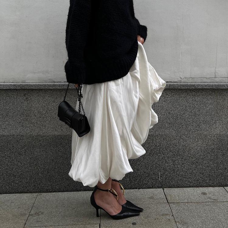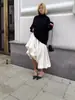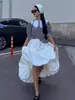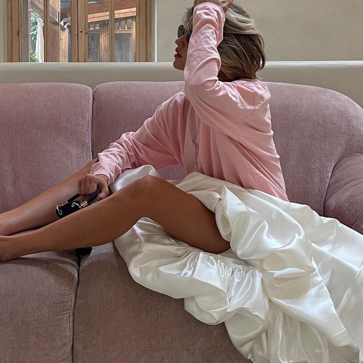 Vestido estilo europeo y americano primavera 2024 nuevo, moda casual, simple, color sólido, combinable, cintura alta, abullonado
