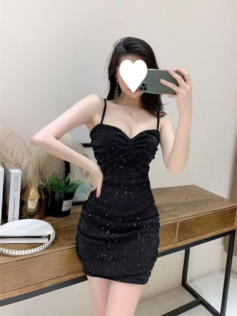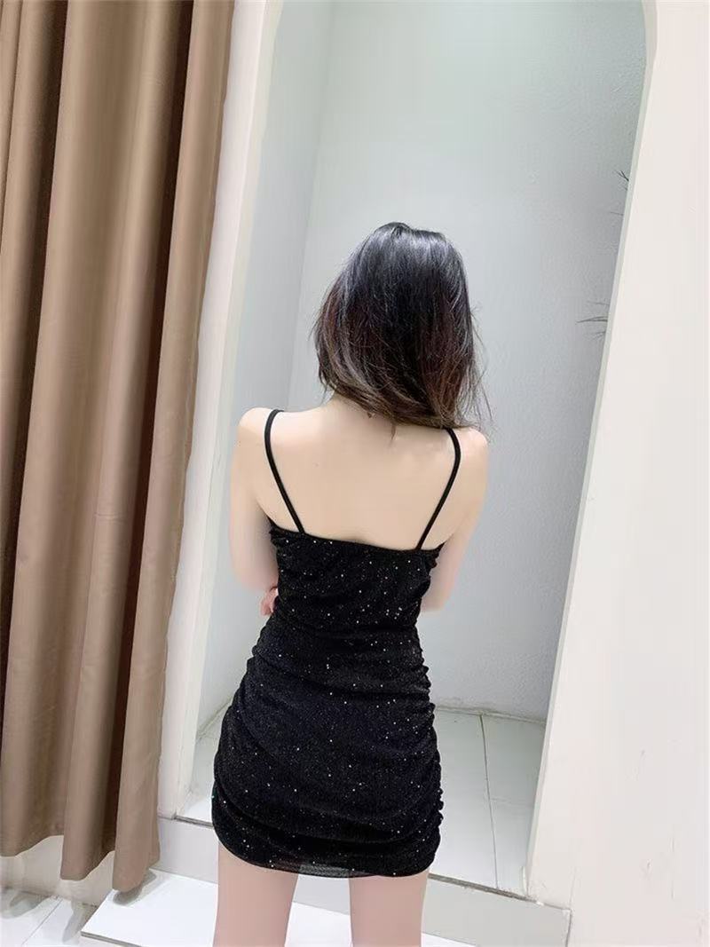 Vestido tipo camisola estilo americano, elegante y sexy para mujer, de verano, sin espalda, plisado, ajustado y adelgazante.