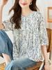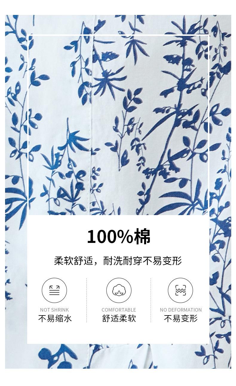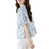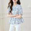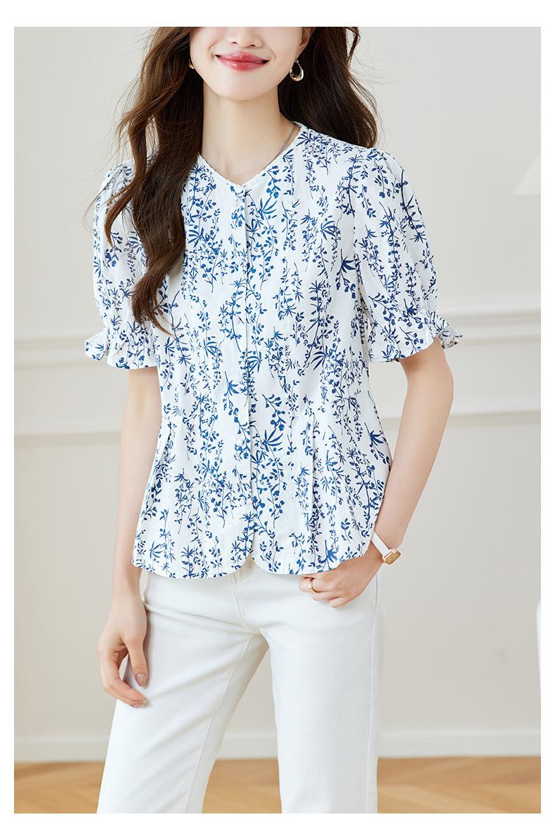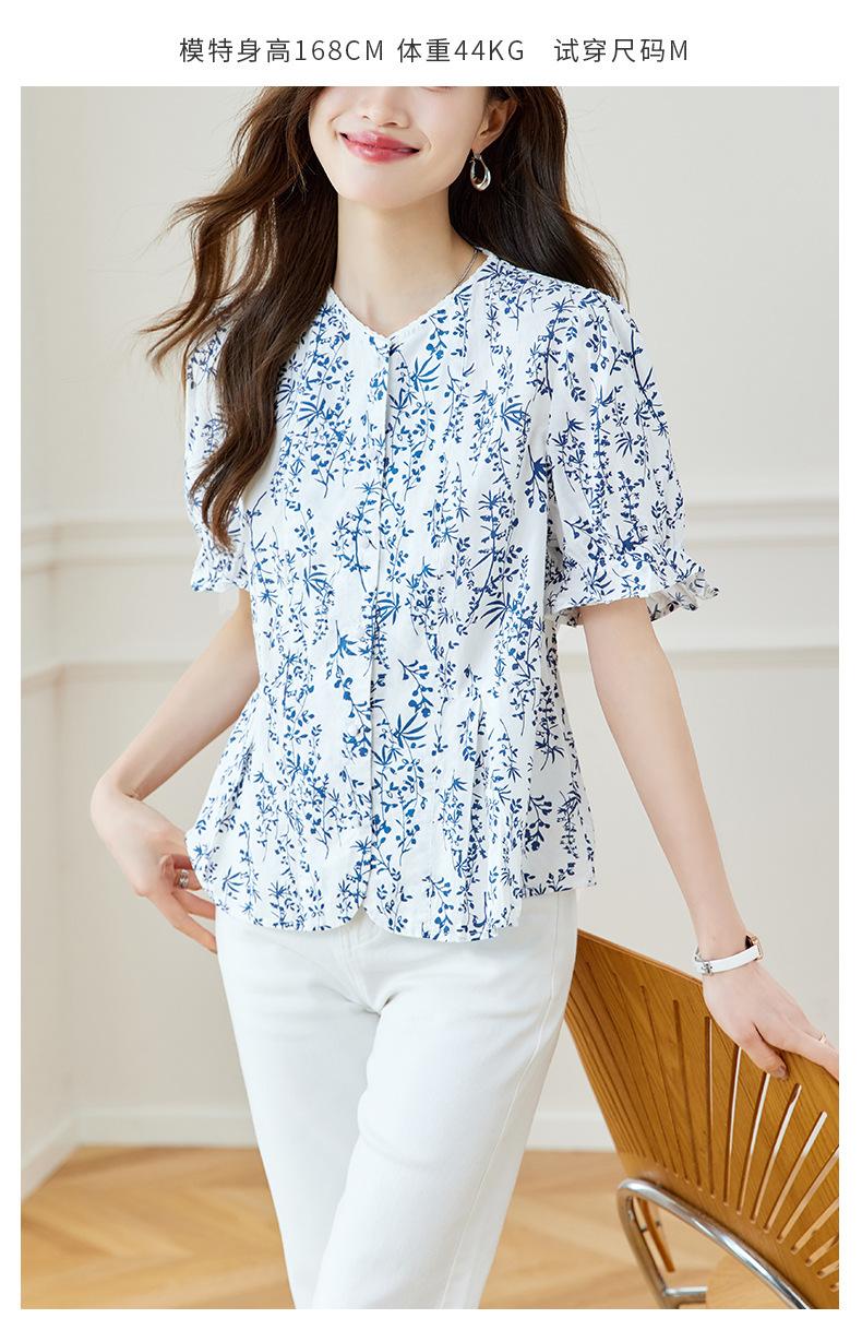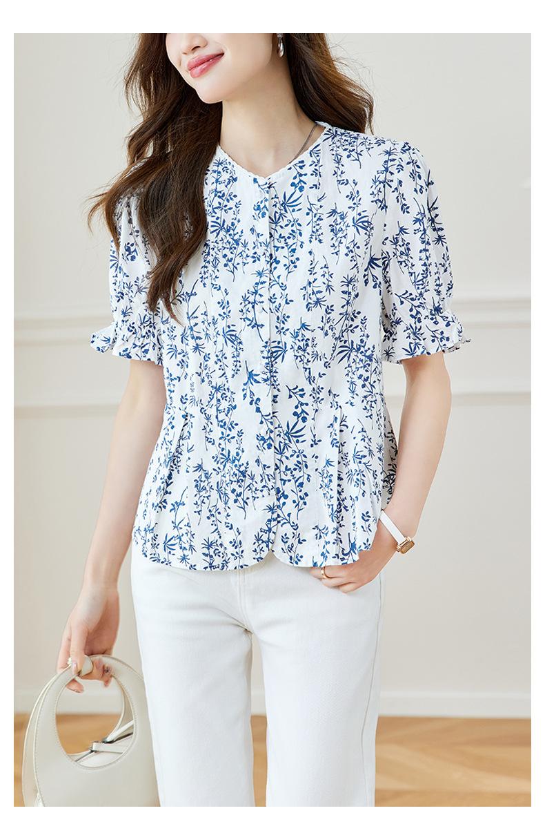 Venta directa de fábrica, nueva camisa con estampado chino, blusa de manga corta de porcelana azul y blanca, camisa elegante de algodón fino de verano para mujer