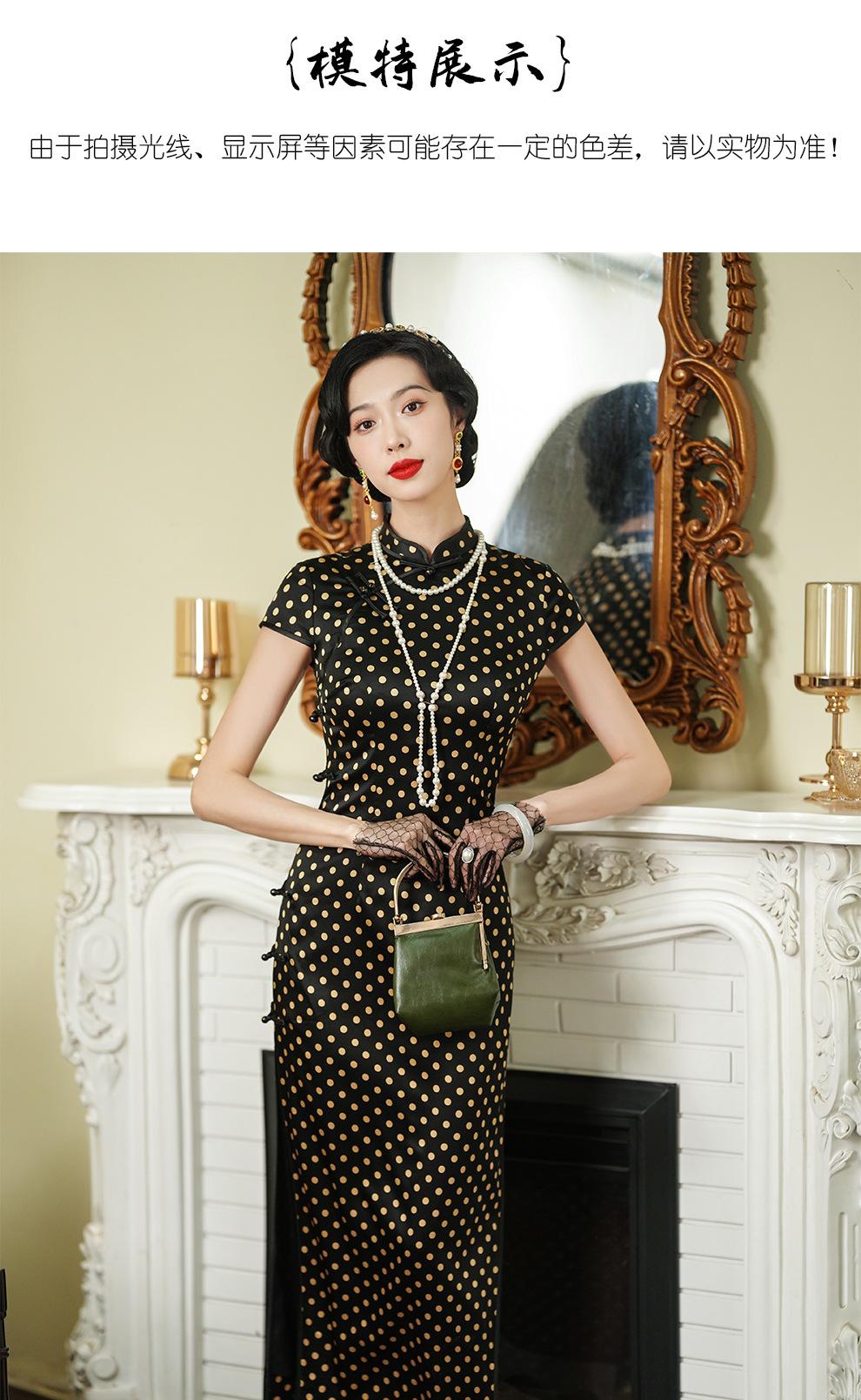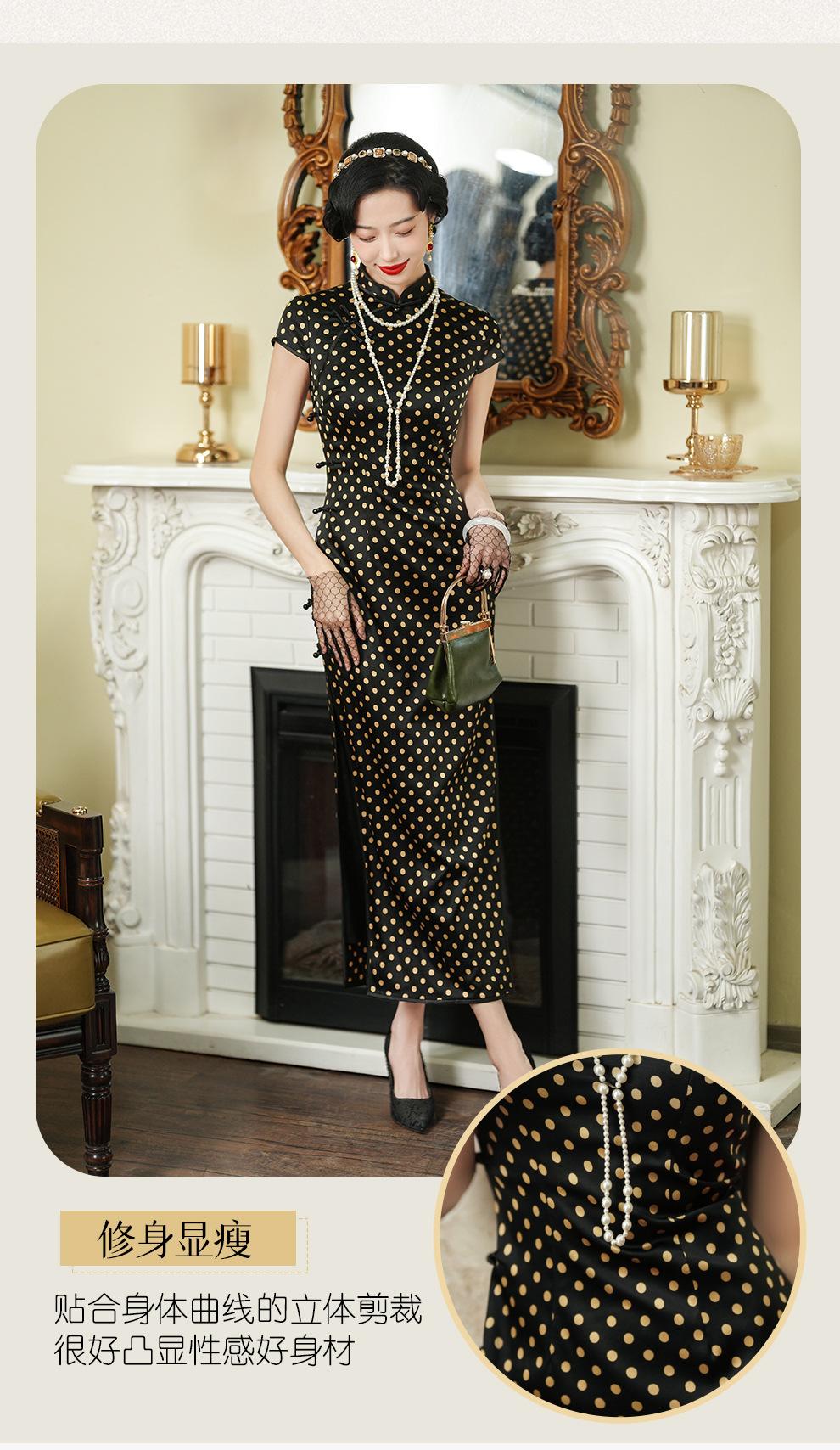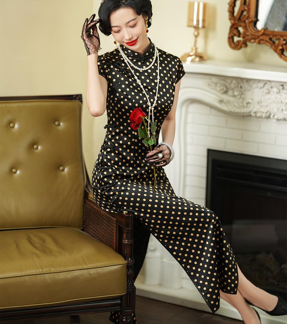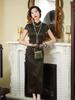 Tang Zhilian 2025 Primavera y Verano Estilo Retro República de China Cheongsam de Seda Negra Vestido de Alta Gama para Mujer Seda de Morera Largo