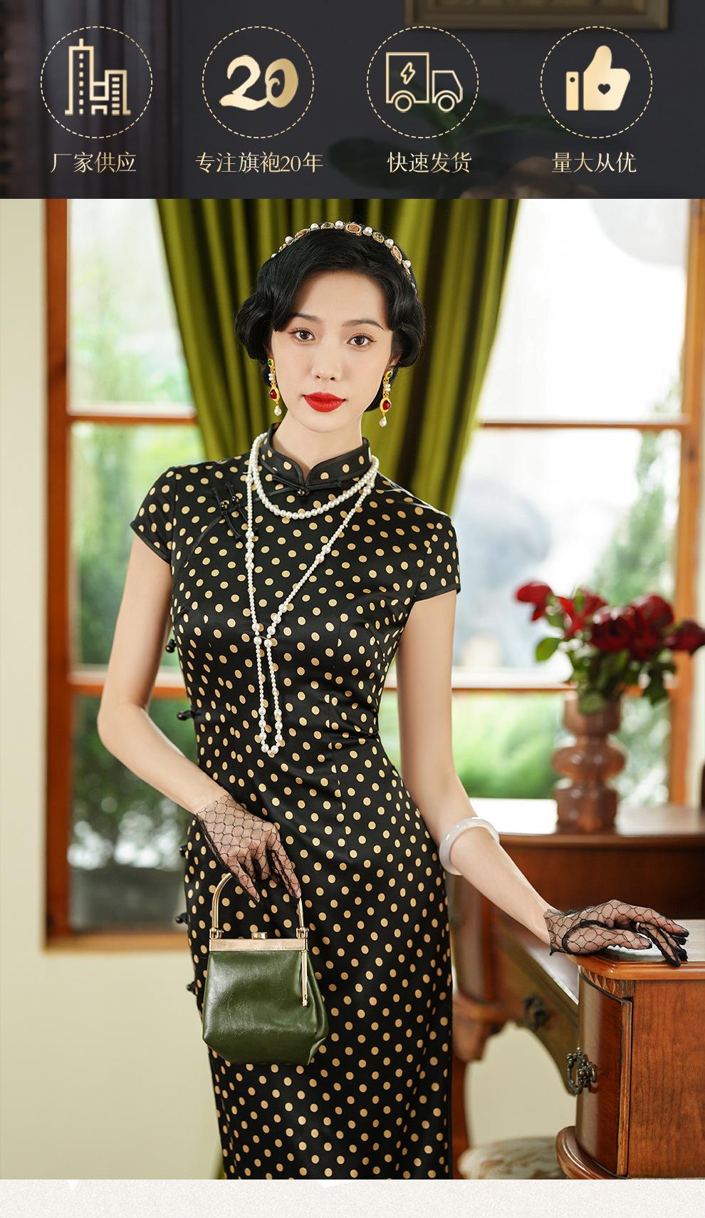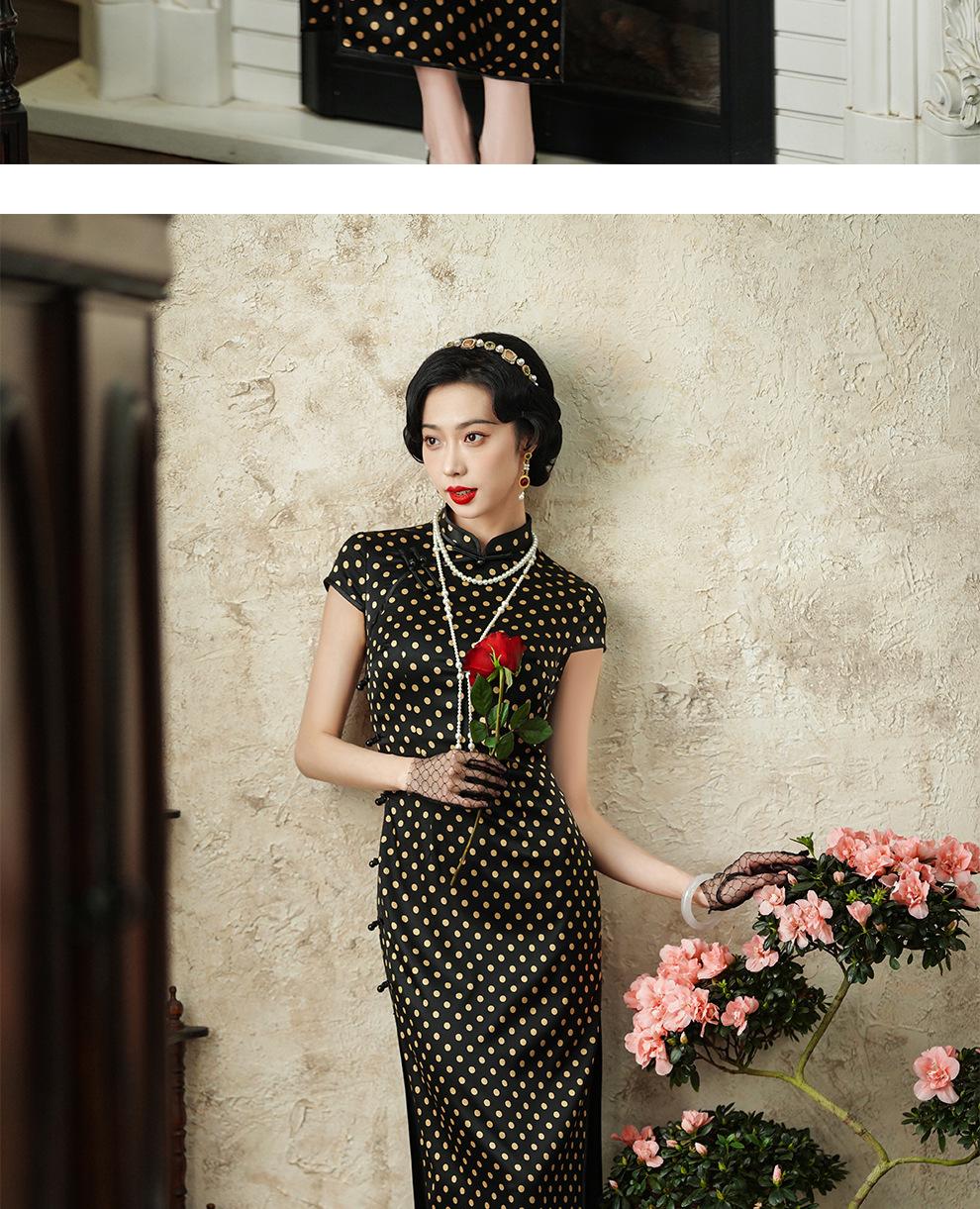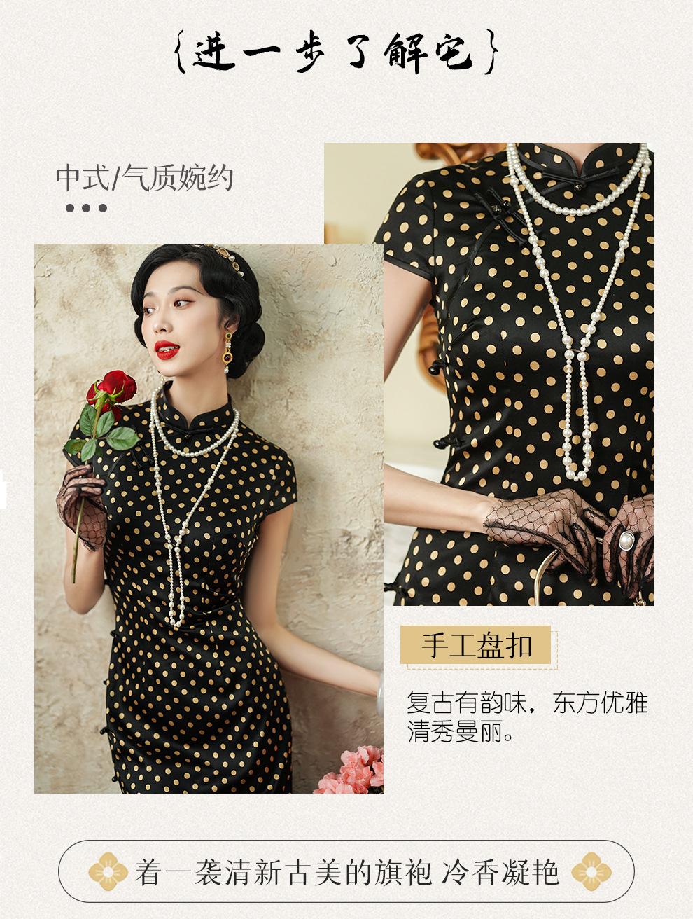 Tang Zhilian 2025 Primavera y Verano Estilo Retro República de China Cheongsam de Seda Negra Vestido de Alta Gama para Mujer Seda de Morera Largo