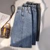 Falda vaquera de corte A de longitud media para mujer, talla grande, con diseño dividido, para primavera y verano