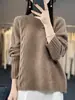 Suéter de punto holgado e informal de otoño e invierno con base de lana 100% gruesa y cuello alto para mujer