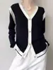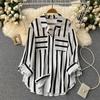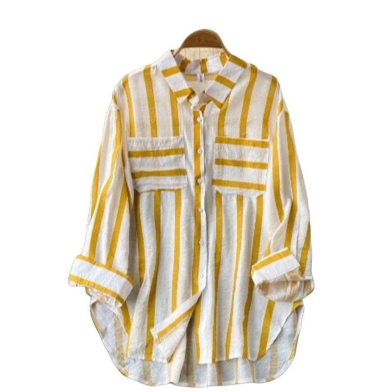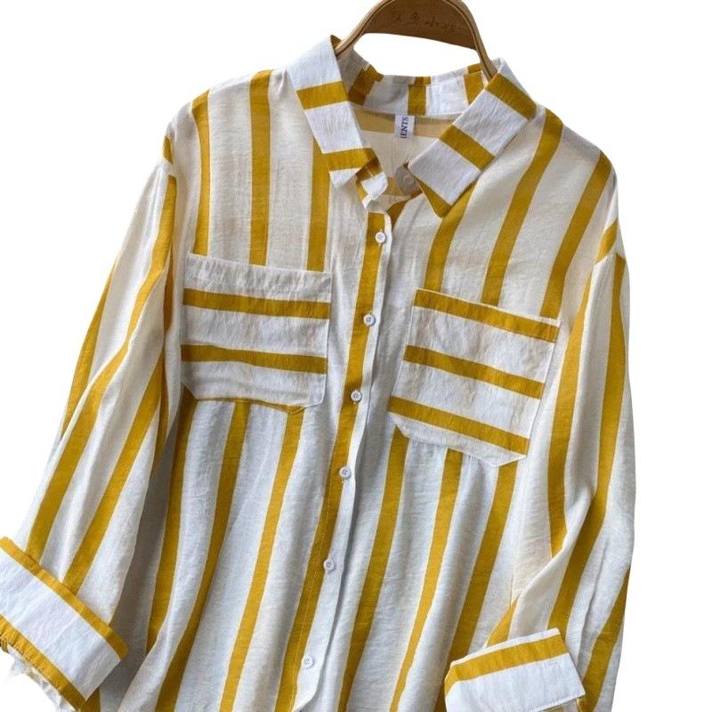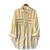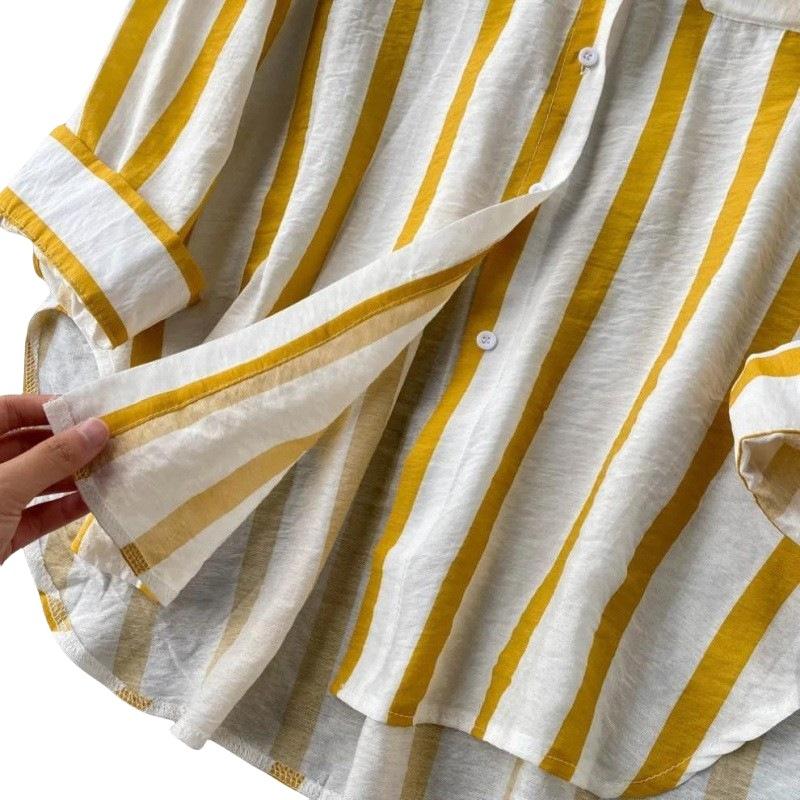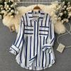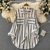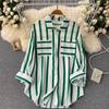 Cárdigan Casual Rayado de Largo Medio con Bolsillo y Botonadura Simple para Mujer, Tops Casuales Japoneses y Coreanos Seleccionados al Mayoreo