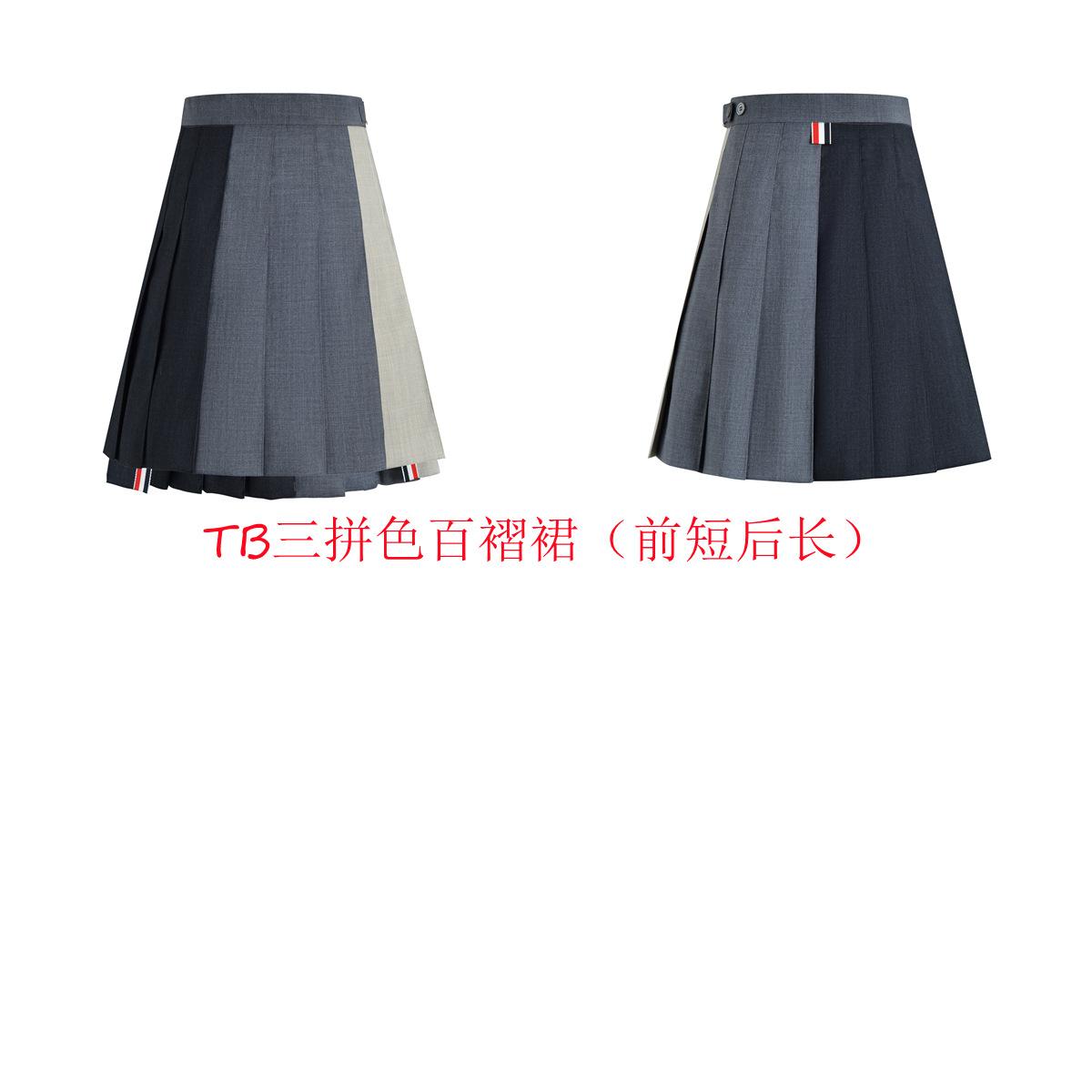 Falda Plisada Adelgazante Tricolor para Mujer Tb Estilo Verano Estilo Preppy Empalme Color Puro Falda Corta Casual y Versátil