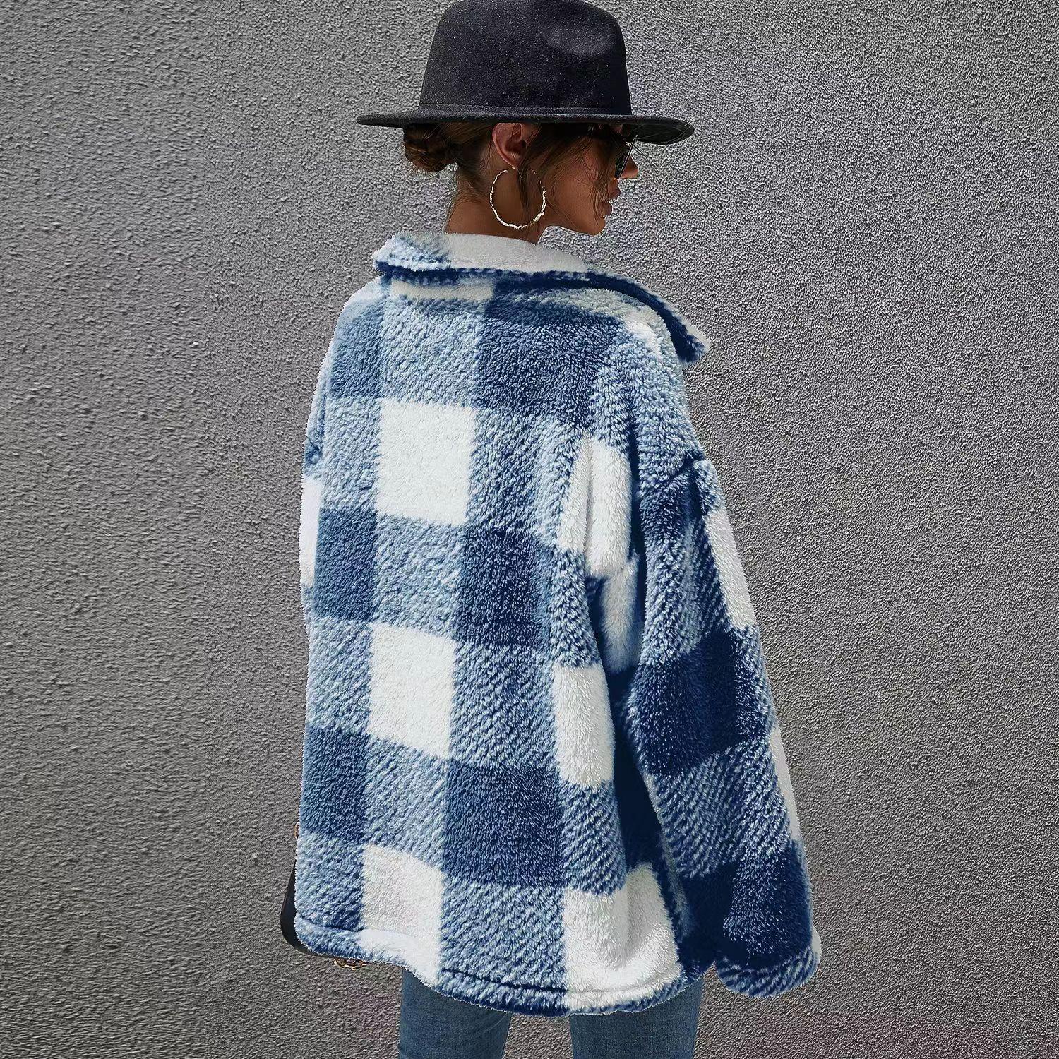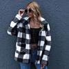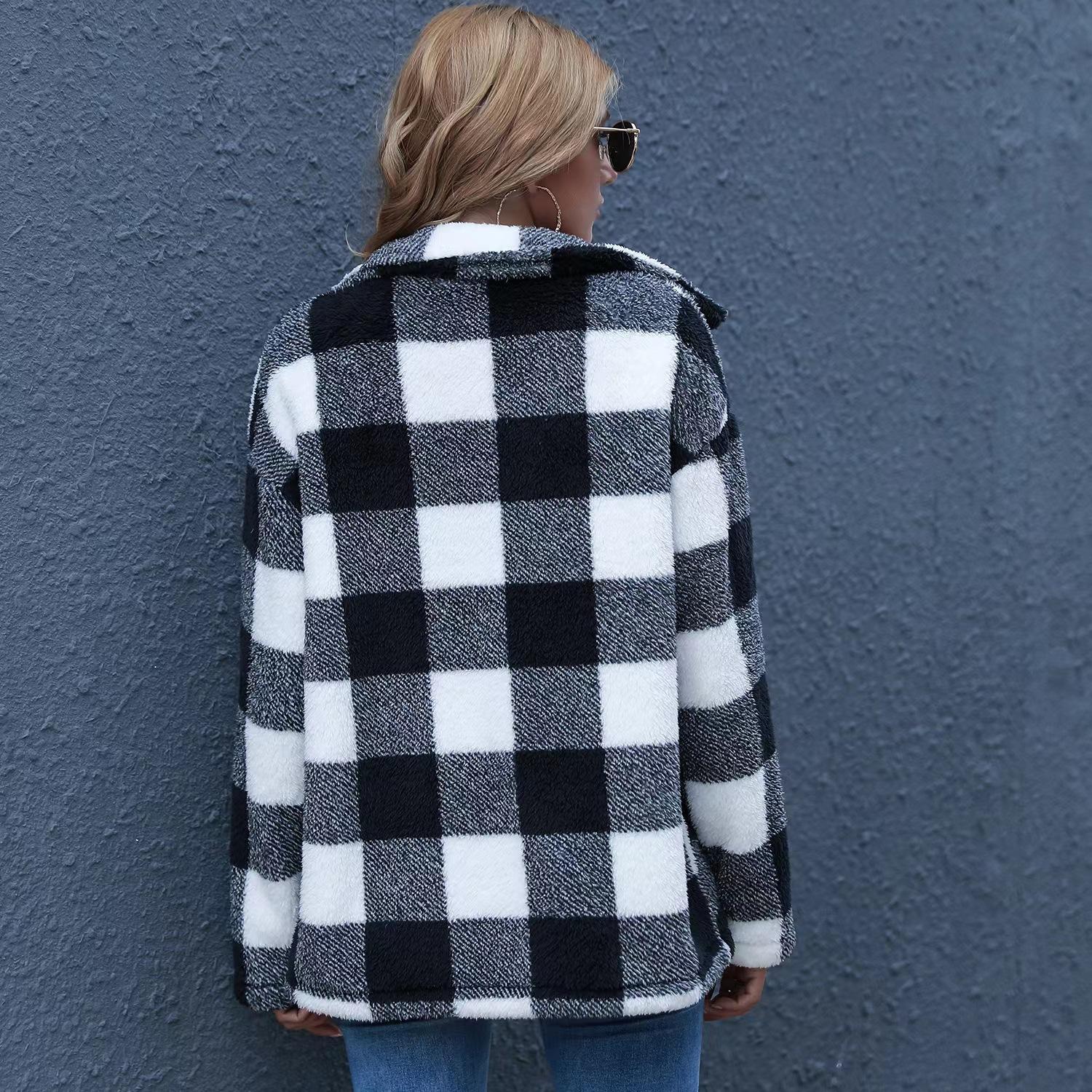 Chaqueta de Felpa Transfronteriza 2022 Otoño e Invierno Amazon Aliexpress Cuadros Manga Larga Solapa Terciopelo Coral Ropa de Mujer