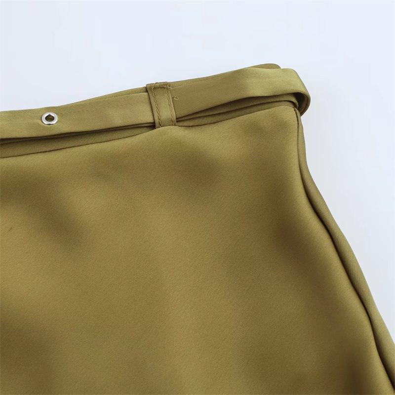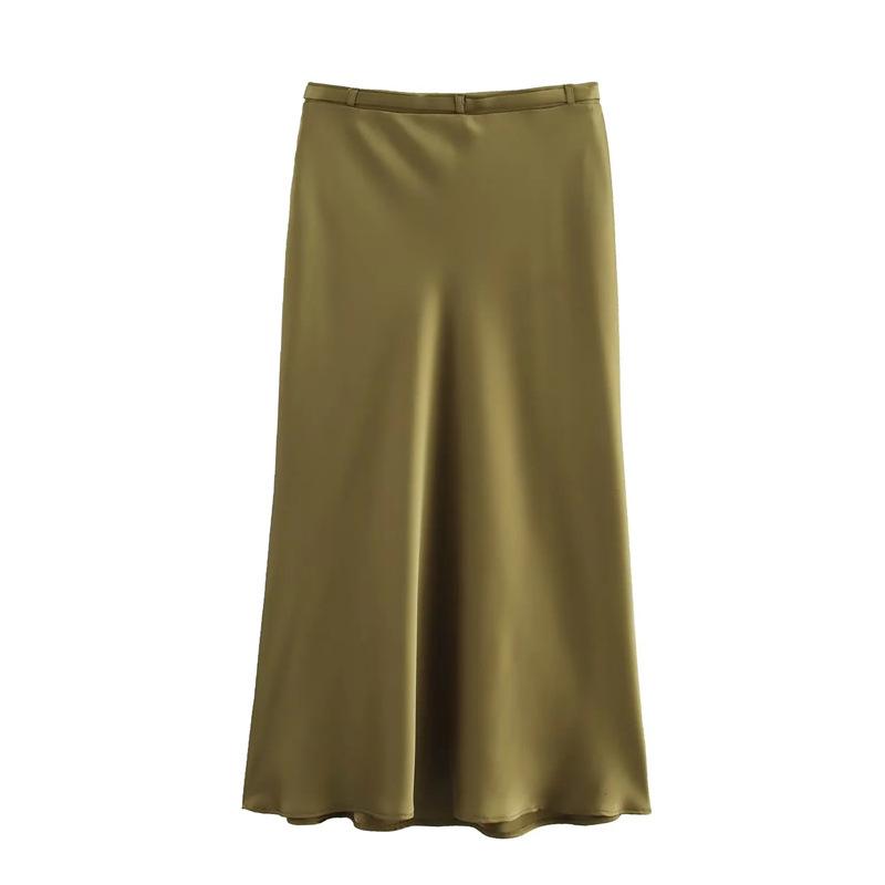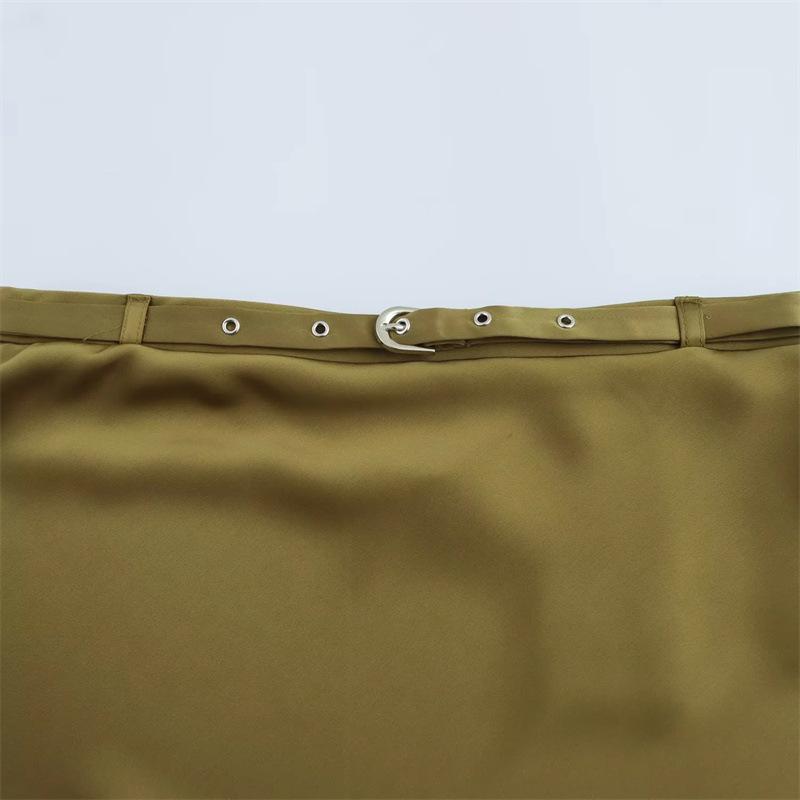 Falda de satén de seda estilo europeo y americano con cinturón primavera y verano nueva moda versátil cintura alta adelgazante falda larga mujer