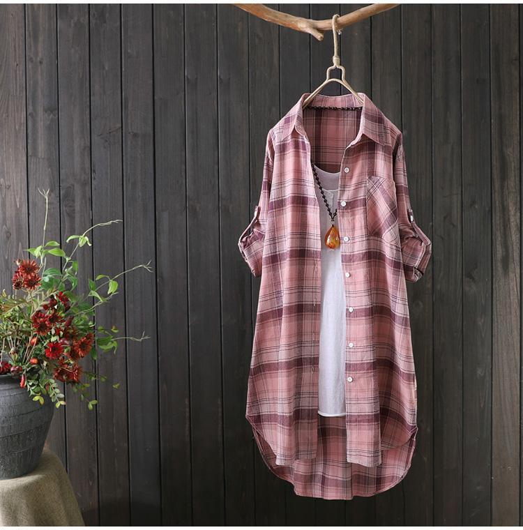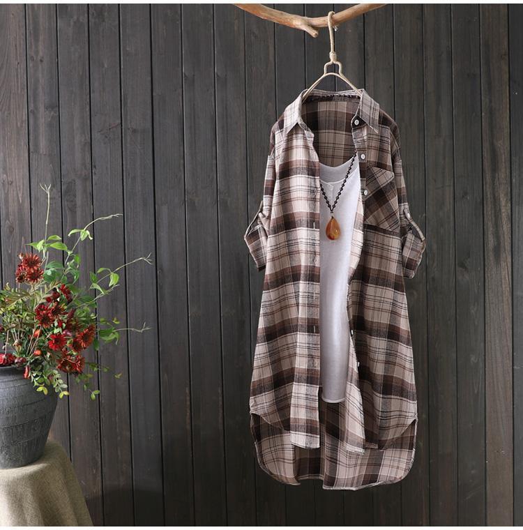 Camisa a cuadros de primavera para mujer, camisa de longitud media, cárdigan holgado de manga larga que combina con todo, top de botonadura sencilla