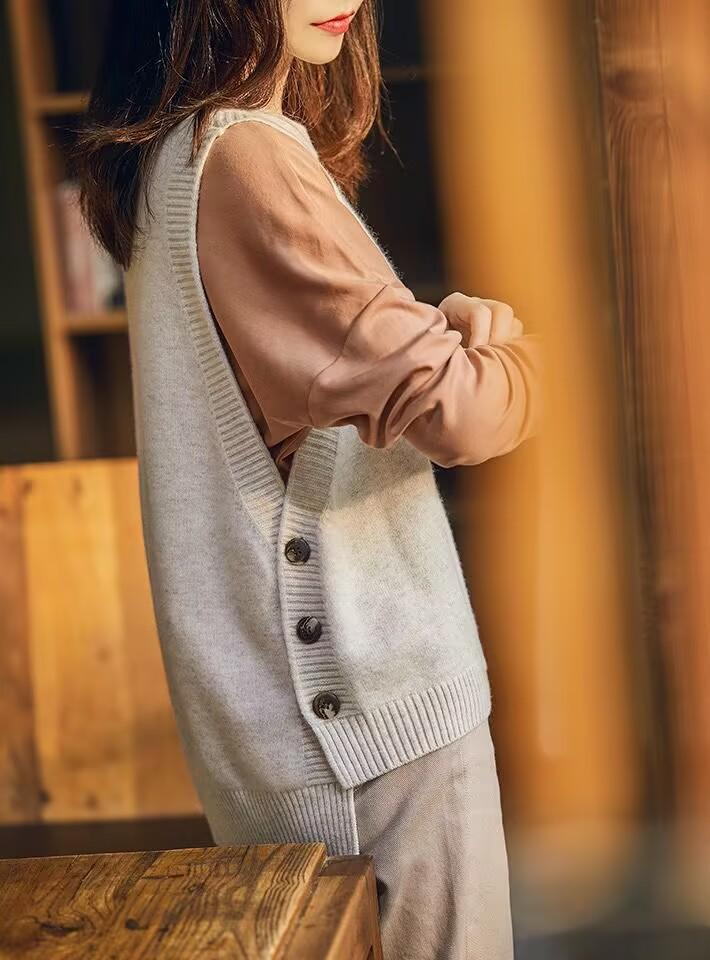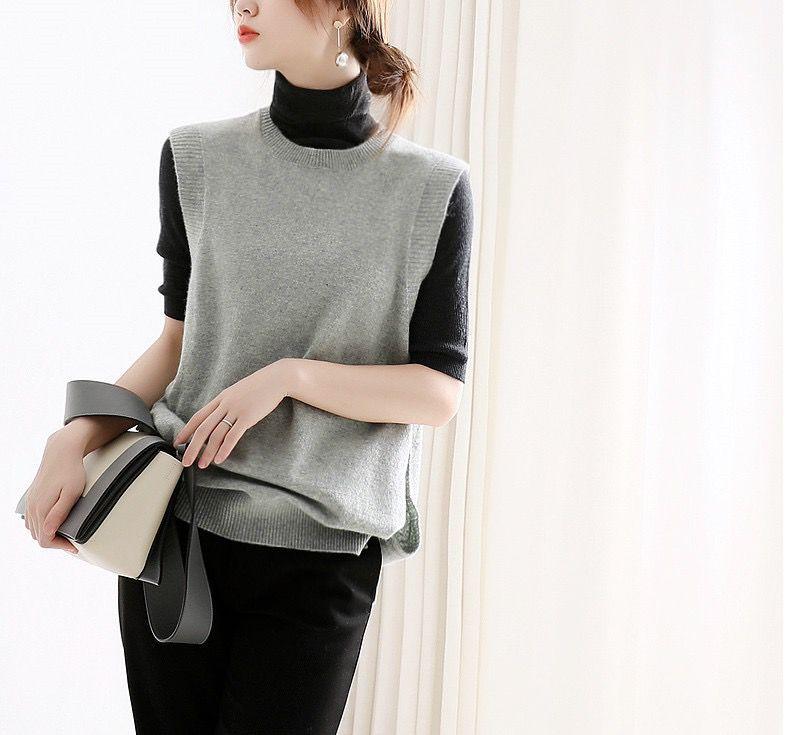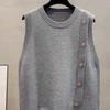 Chaleco de punto sin mangas de primavera, suéter holgado de cuello redondo, estilo coreano, para uso exterior, combina con todo, moderno para mujer.