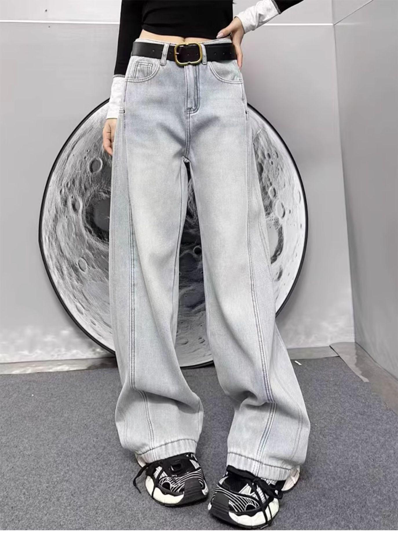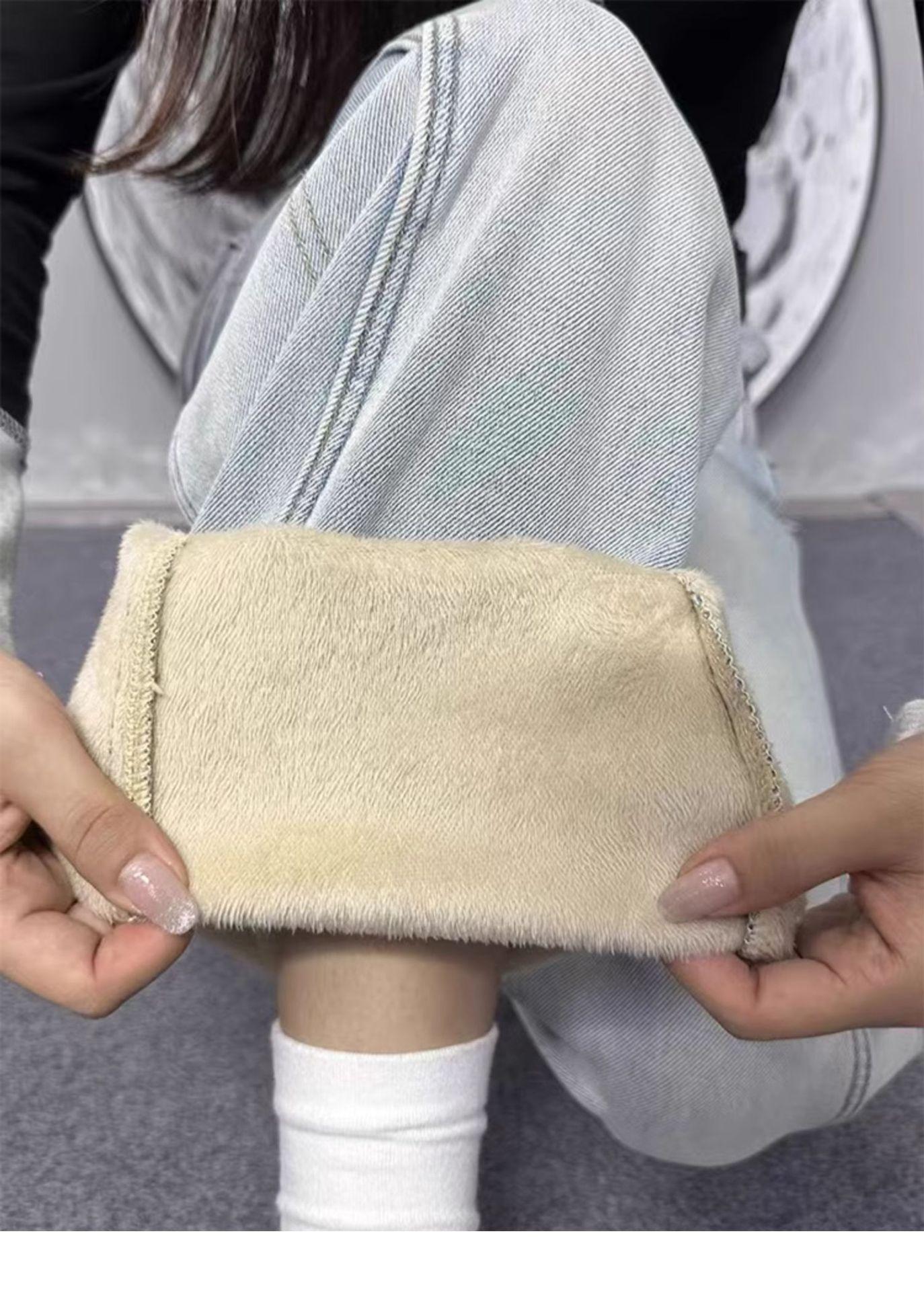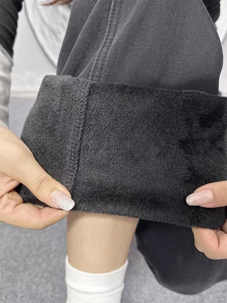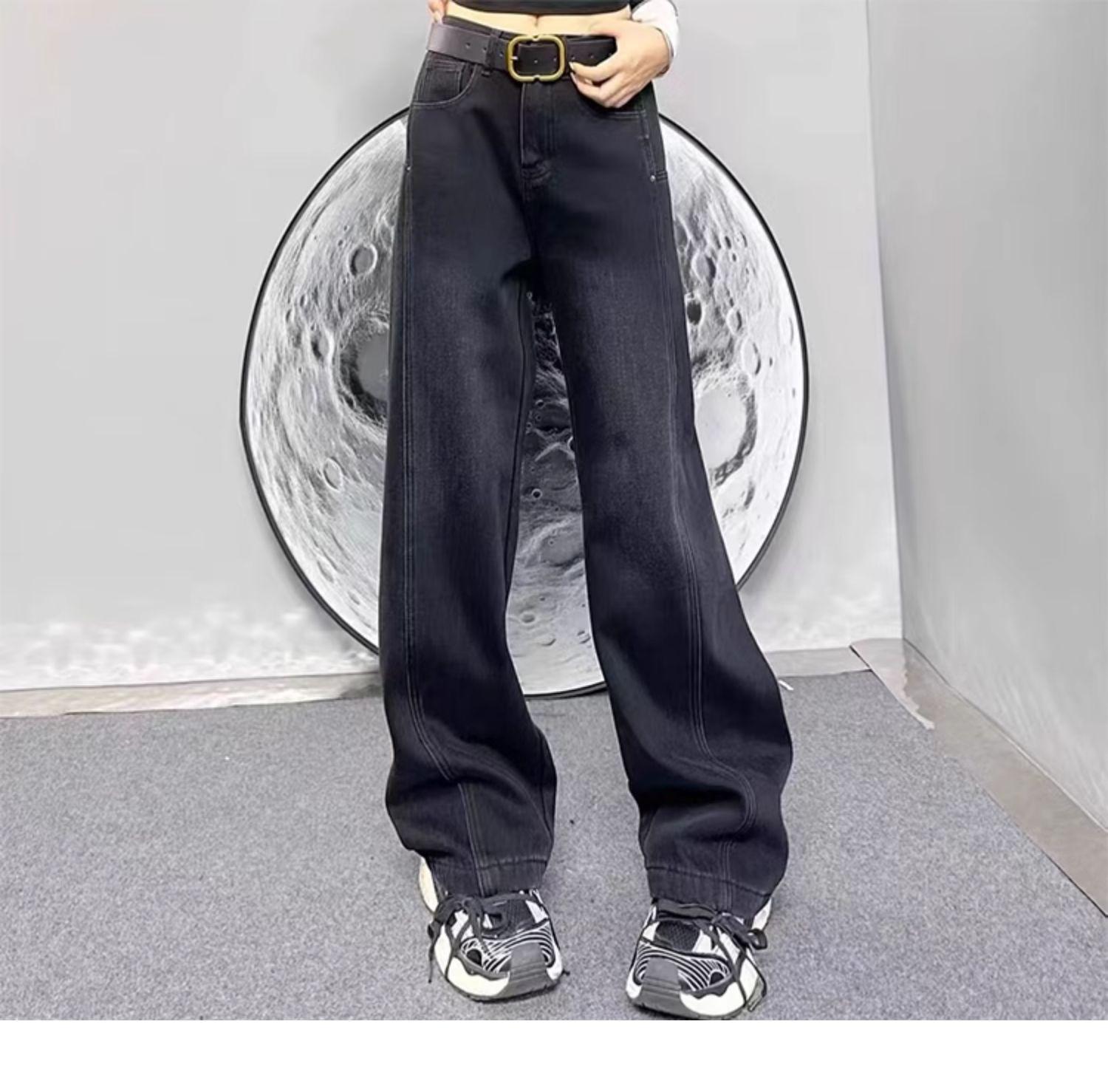 Jeans Rectos de Terciopelo de Talla Grande para Mujer Otoño e Invierno 2025 mm Gorditos Figura de Pera Sueltos Cintura Alta Adelgazantes Pantalones de Pierna Ancha