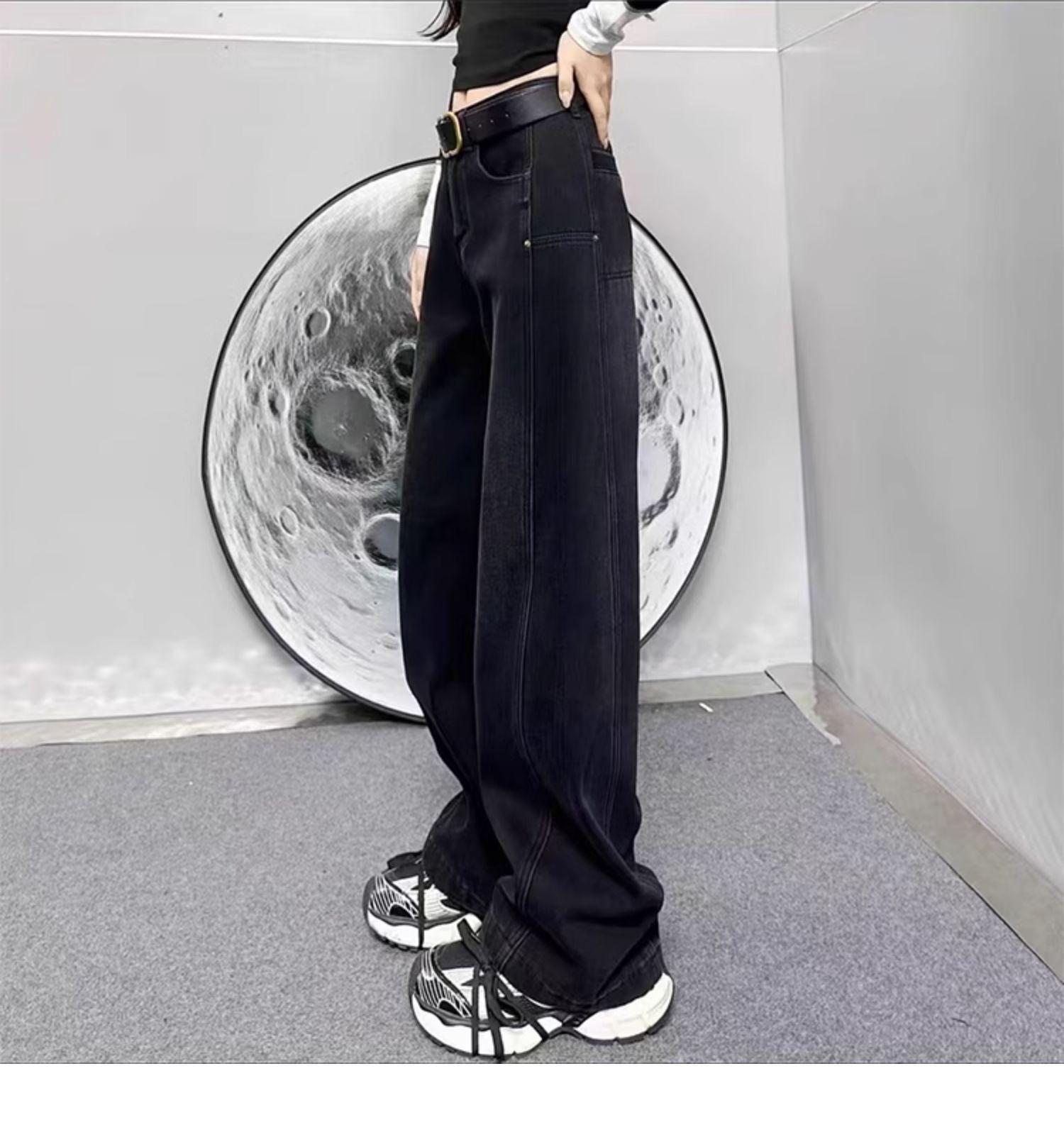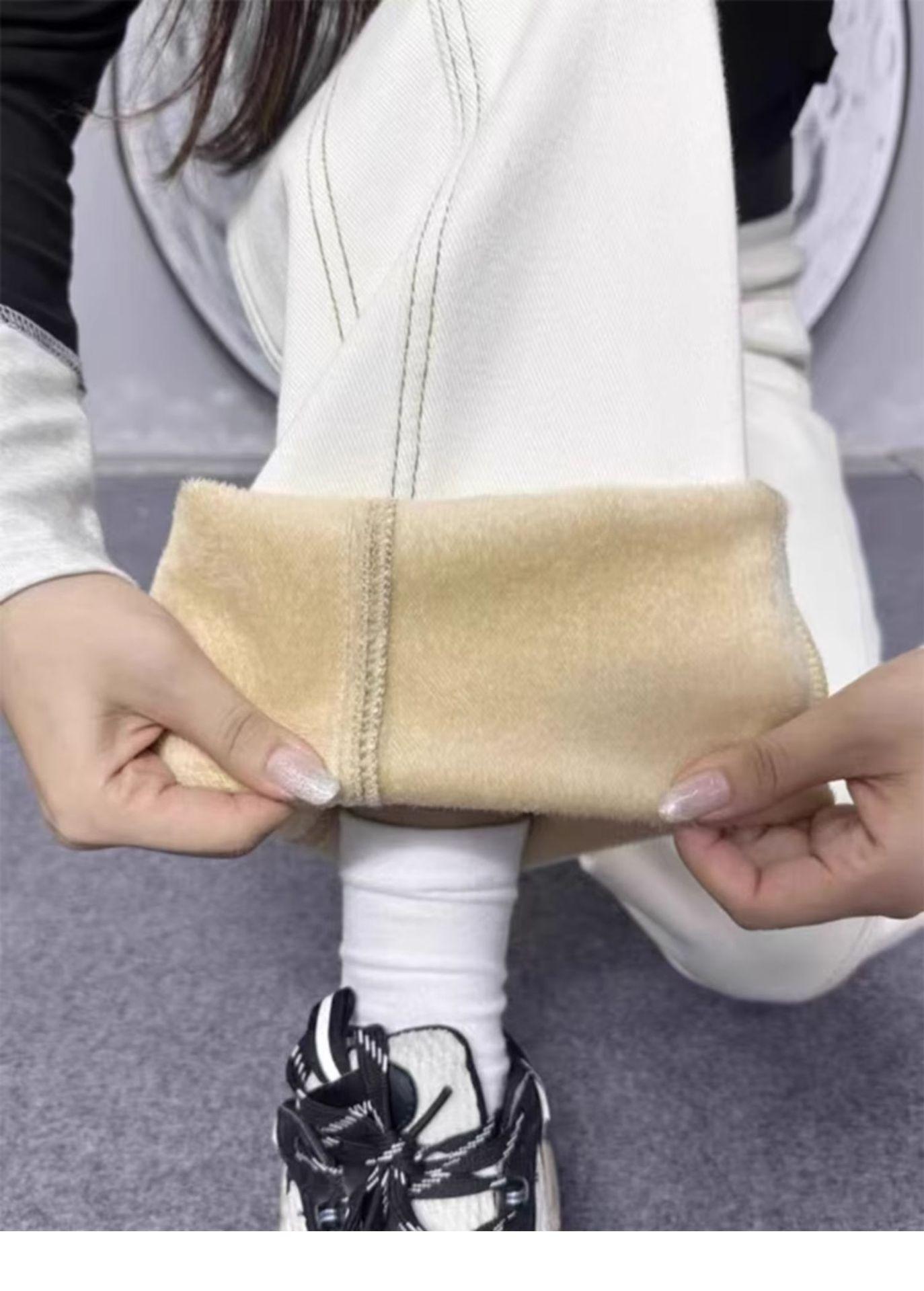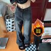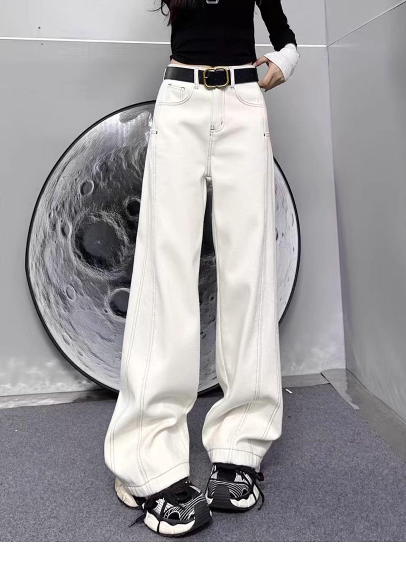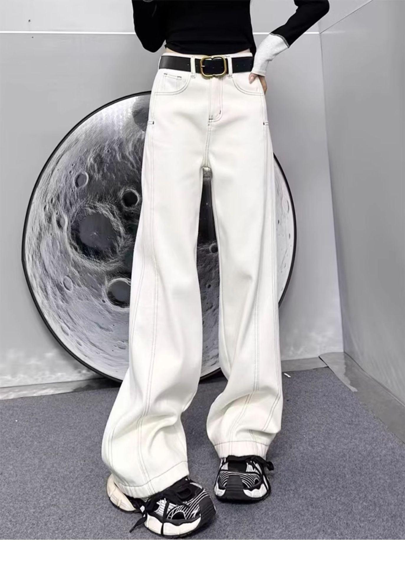 Jeans Rectos de Terciopelo de Talla Grande para Mujer Otoño e Invierno 2025 mm Gorditos Figura de Pera Sueltos Cintura Alta Adelgazantes Pantalones de Pierna Ancha